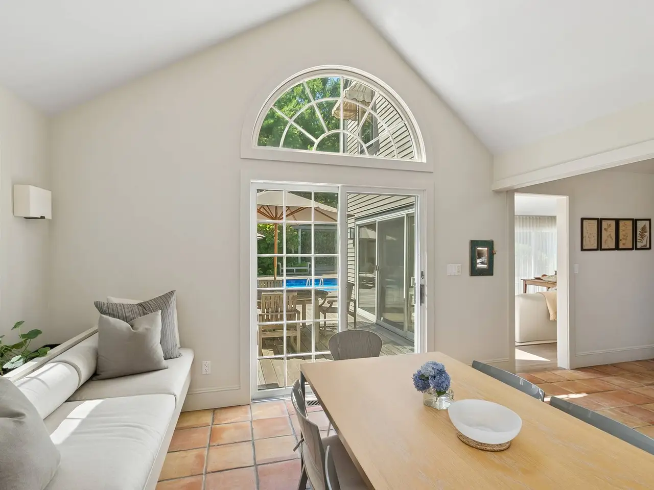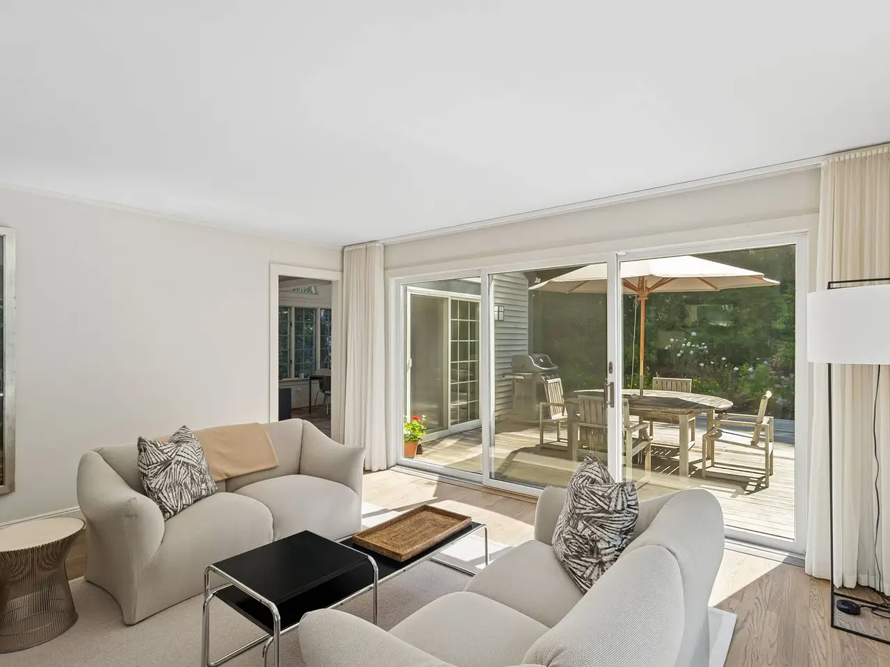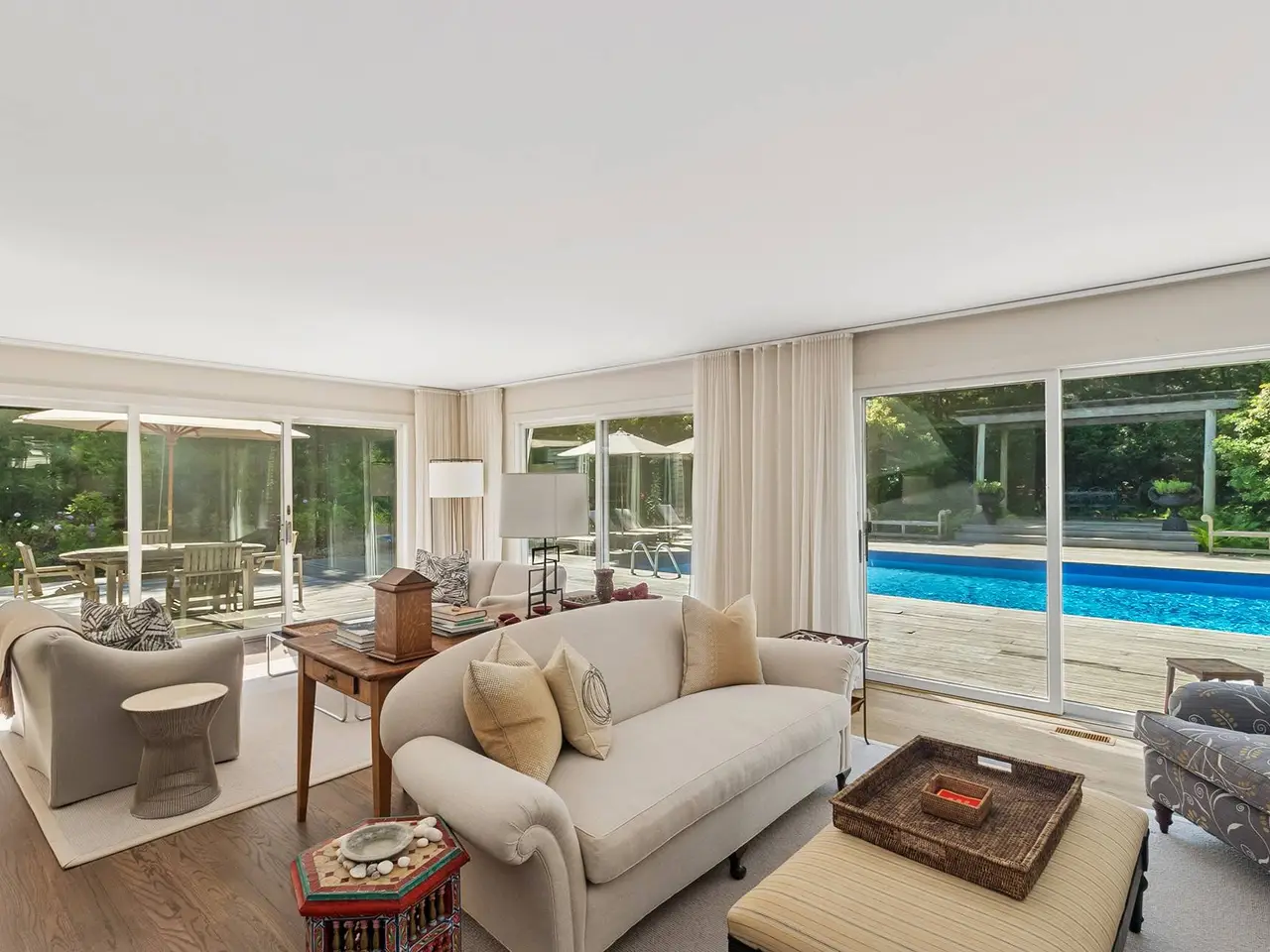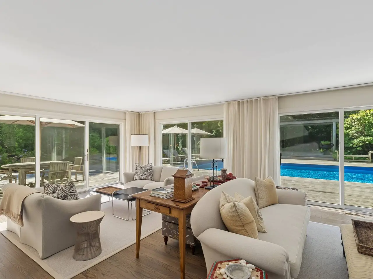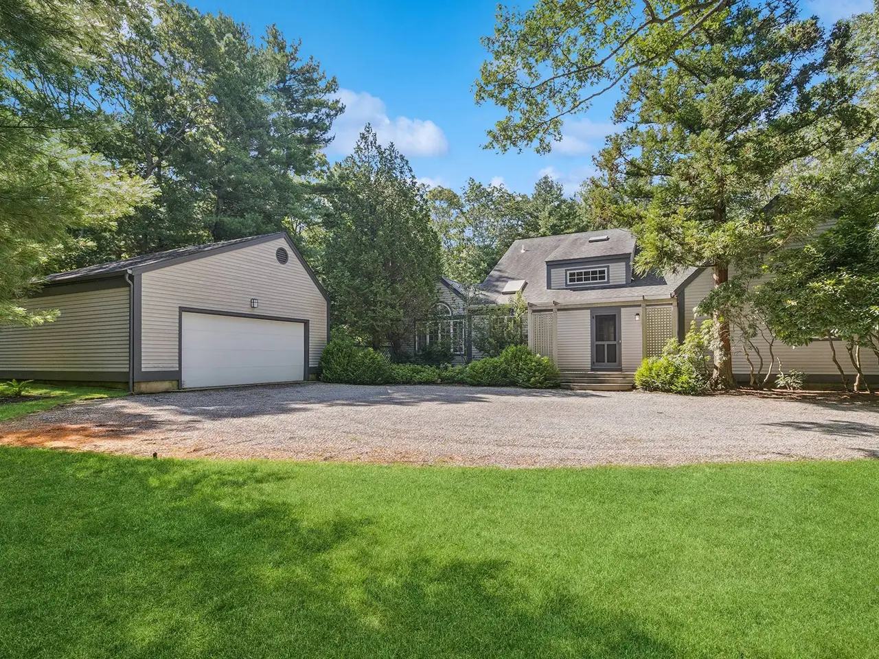 Set on 2.26+- private acres close to both East Hampton and Sag Harbor Villages, this three-bedroom traditional offers the perfect blend of comfort, style, and indoor-outdoor living across 2,100+- sf of living space. Thoughtfully designed for entertaining and relaxation, the home features a spacious living room with two sitting areas and a wood-burning fireplace. Multiple sets of glass sliders flood the space with natural light and lead to an expansive deck, where lounge and dining areas surround the pool, creating a true outdoor oasis. The kitchen is equipped with integrated refrigeration and modern updates, making it as functional as it is attractive. With three bedrooms and two and a half bathrooms currently, there's potential to expand the existing 1st and 2nd levels to 7,000 sf in addition to finishing the lower level. A detached two-car garage offers additional convenience, while the peaceful setting ensures privacy without sacrificing proximity to the best of the Hamptons.