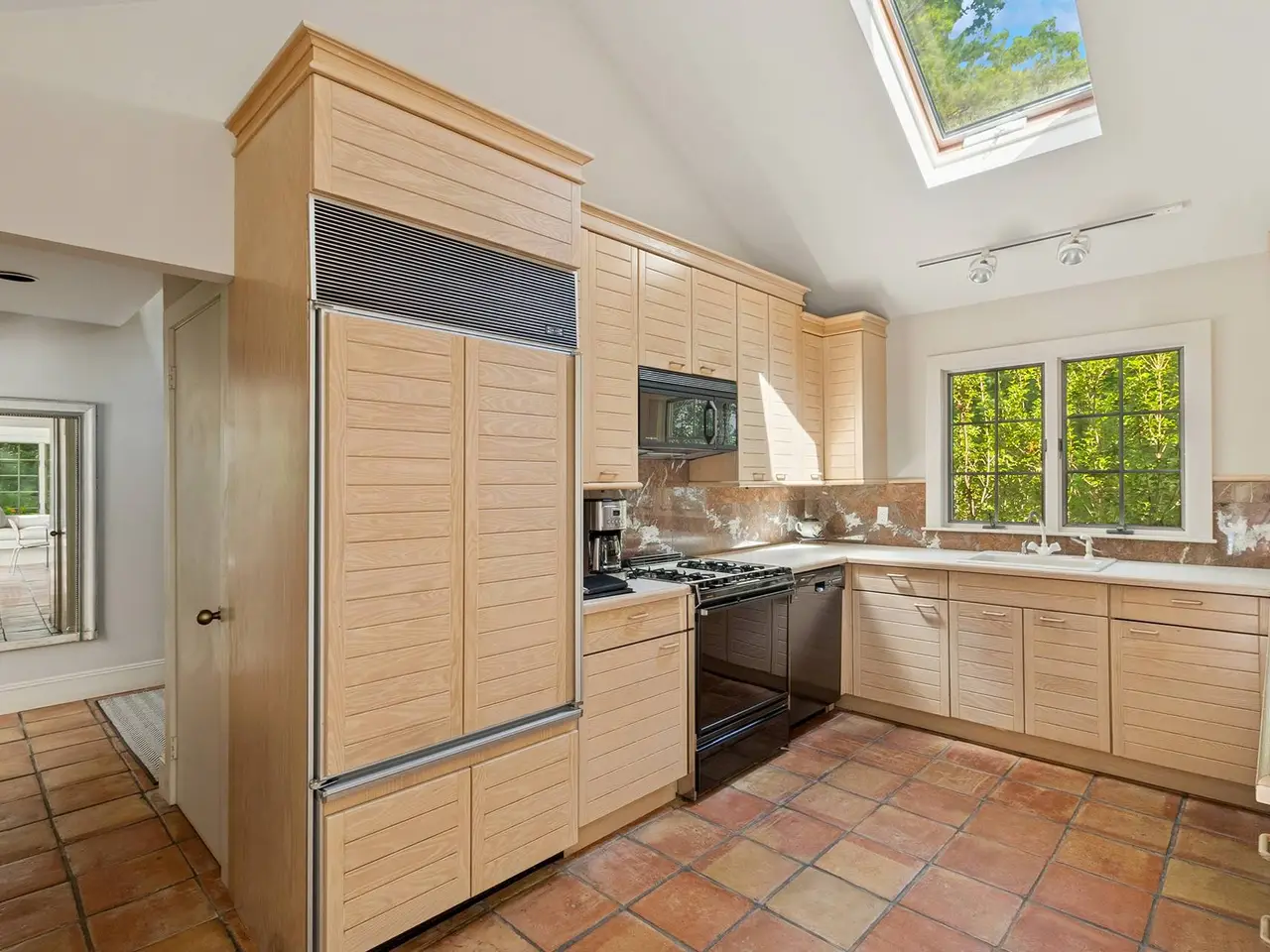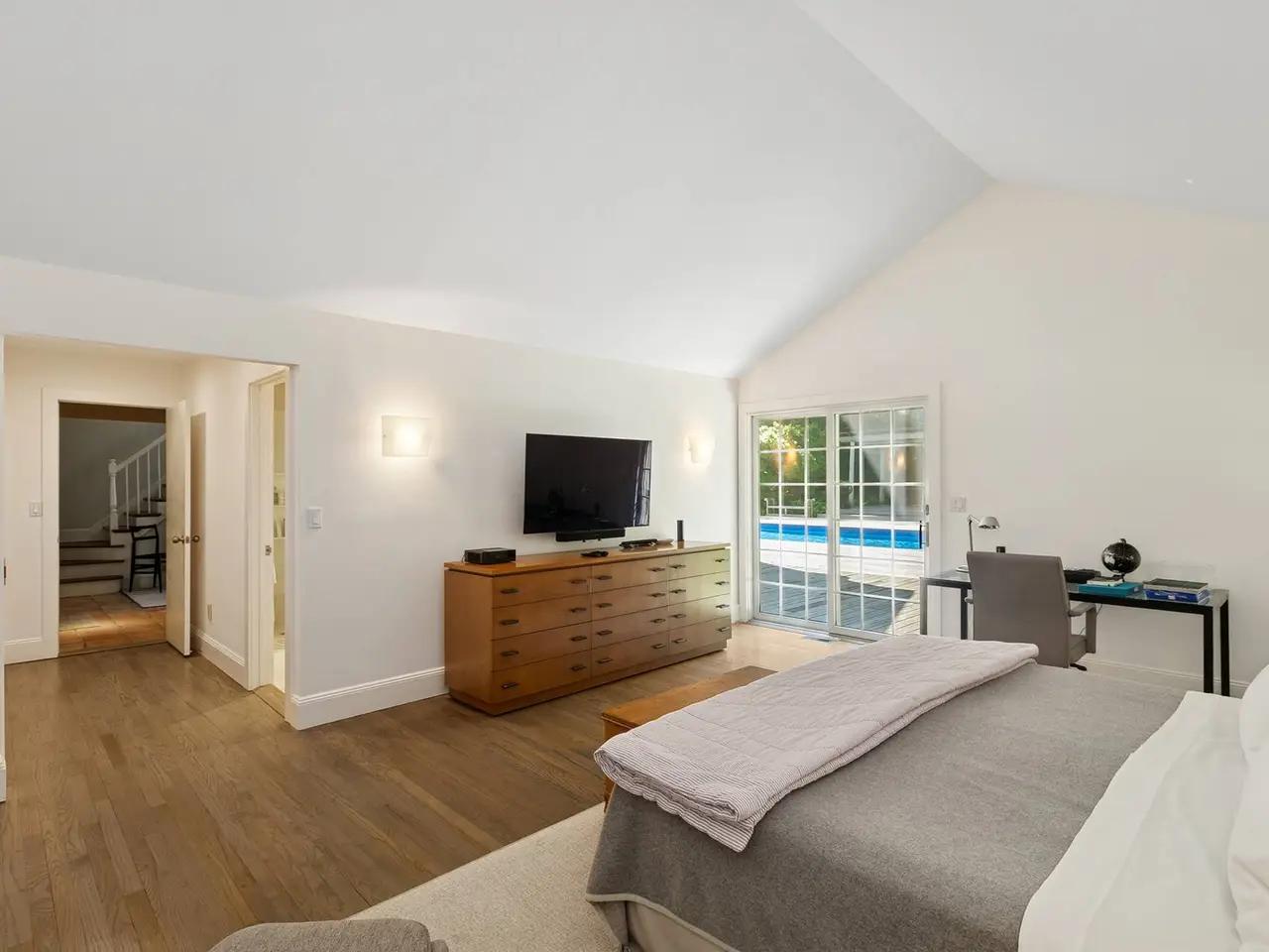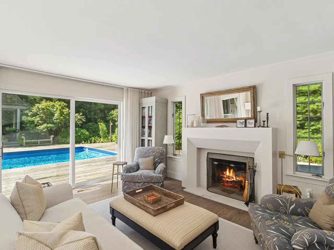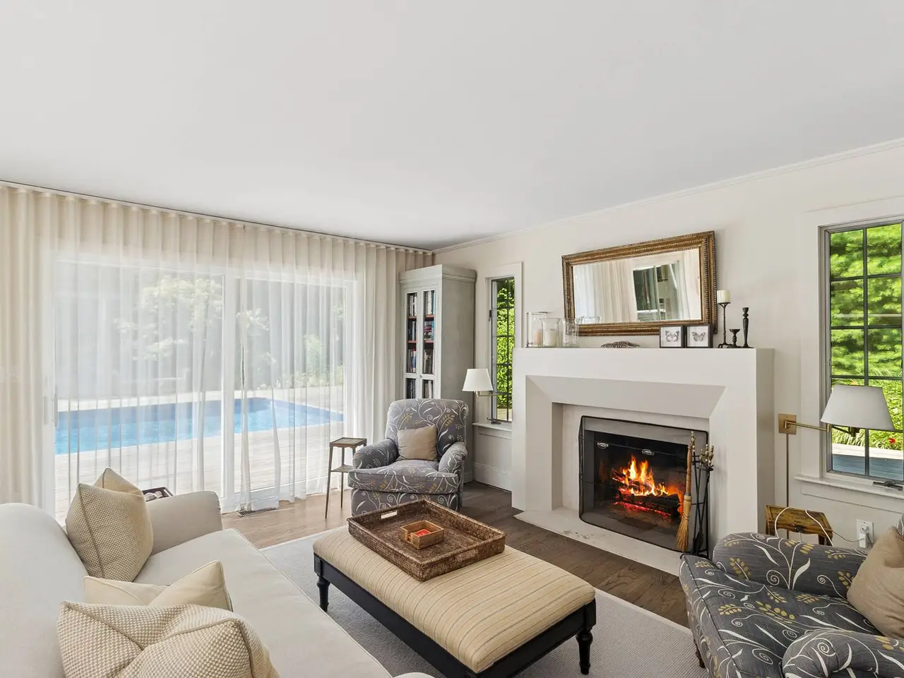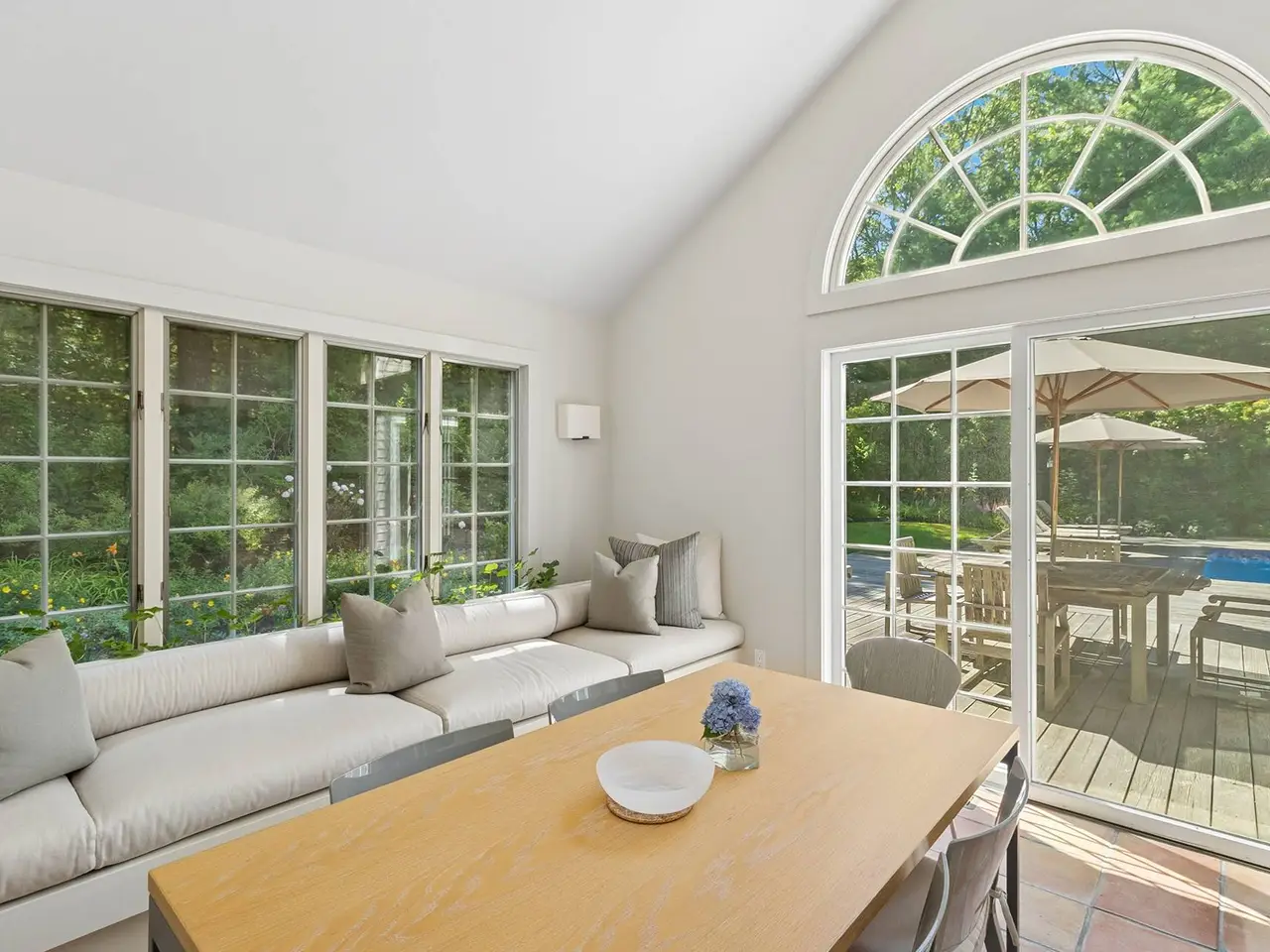 Set on 2.26+- private acres close to both East Hampton and Sag Harbor Villages, this three-bedroom traditional offers the perfect blend of comfort, style, and indoor-outdoor living across 2,100+- sf of living space. Thoughtfully designed for entertaining and relaxation, the home features a spacious living room with two sitting areas and a wood-burning fireplace. Multiple sets of glass sliders flood the space with natural light and lead to an expansive deck, where lounge and dining areas surround the pool, creating a true outdoor oasis. The kitchen is equipped with integrated refrigeration and modern updates, making it as functional as it is attractive. With three bedrooms and two and a half bathrooms currently, there's potential to expand the existing 1st and 2nd levels to 7,000 sf in addition to finishing the lower level. A detached two-car garage offers additional convenience, while the peaceful setting ensures privacy without sacrificing proximity to the best of the Hamptons.