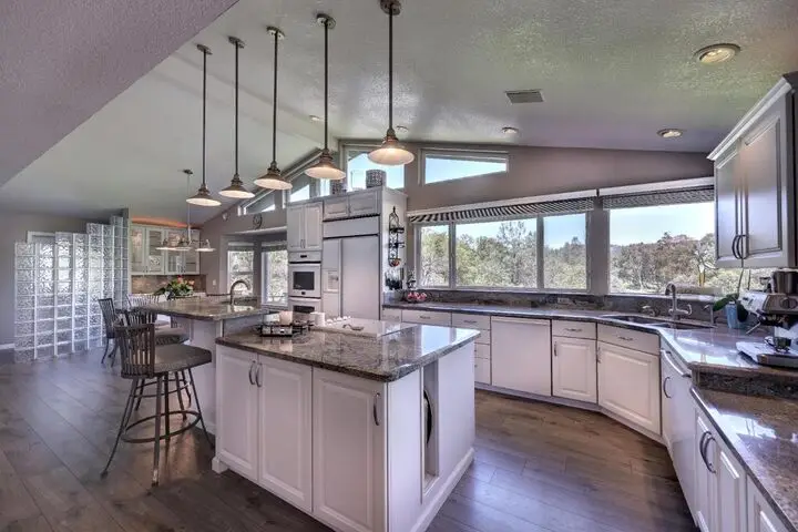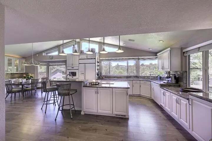 This home truly has it all! Perfect blend of elegance and comfort for a growing family, entertaining, or multi-generational living. The heart of this home is the gourmet kitchen that offers generous granite counter space, two dishwashers, double oven, built-in refrigerator, walk-in pantry, and ample cabinets. Add a formal dining room for those special gatherings! The living room invites comfort and light with generous window views. Step onto the spacious deck to enjoy nature's serenity. A downstairs bedroom/bath may be a home office. Upstairs, three bedrooms and two full baths. The primary suite flows into the spa like bathroom that features heated tile floors, Jacuzzi tub with built-in water heater, and a walk-in shower with LED decorative lighting. The lower level has a large family room and a bedroom/bath perfect for in-laws or guests. The backyard acreage has a solar heated pool, irrigated garden and orchard, propane firepit area, a dog run and pen with surrounding invisible fencing. Add the pool house with full bedroom/bath, living room and kitchenette! In the event of power loss there is a propane powered generator for your convenience. Attention to detail throughout the property will surely impress - come see this treasure!