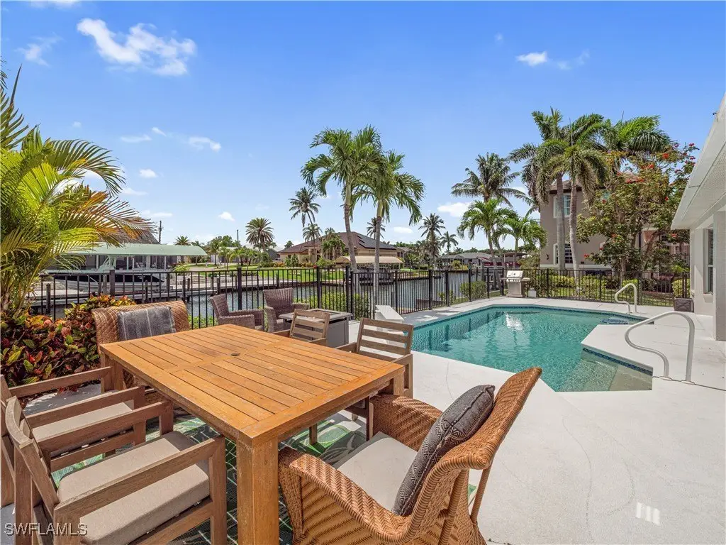 Here's your chance to own a piece of paradise in one of Cape Coral's top waterfront neighborhoods. This home is in a very residential area but at the same time, close to everything Cape Coral has to offer. This 4-bedroom, 3-bath home has just over 2,000 square feet of space and a layout that feels open, bright, and easy to live in. As you walk in, you'll notice the high ceilings and all the natural light pouring in. The kitchen has been fully updated with a big island and quartz countertops-perfect for cooking, entertaining, or just hanging out. Step out back and you've got your own private retreat. The pool was recently refinished and is ready for sunny days and relaxing evenings. If you love boating, you'll appreciate the direct Gulf access - no bridges, no hassle. The roof was replaced in 2021 and the home has been really well taken care of. You're close to everything! Tarpon Point Marina, TOP SWFL restaurants, and local shopping....but still tucked away in a quiet, waterfront setting. If you've been waiting for the right place that checks all the boxes, this might be it. Schedule your tour today.