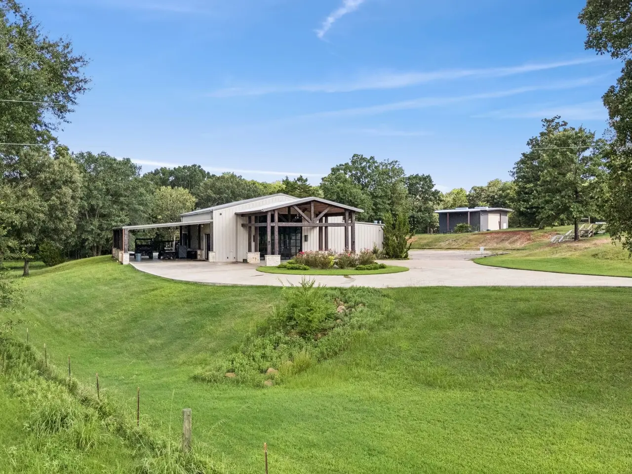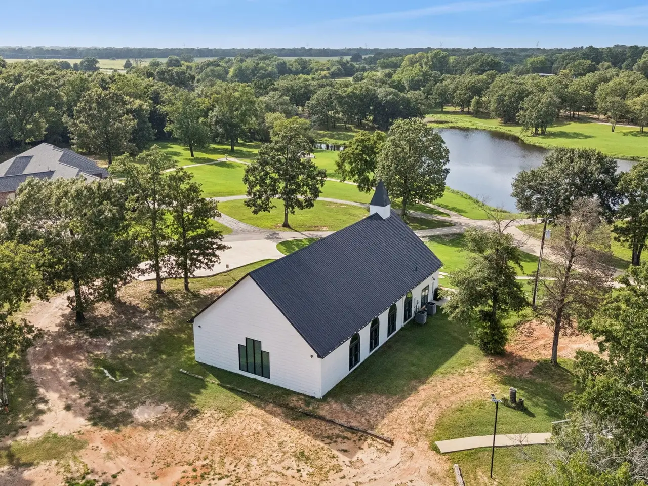 Profitable East Texas Estate Near Cedar Creek Lake This 39+ acre property in Malakoff, Texas, is located minutes from Cedar Creek Lake. The estate includes multiple residences suitable for extended families, private retreats, or multi-generational living arrangements. The land features open fields and wooded areas, suitable for outdoor recreation, gardening, or enjoying the natural environment with a scenic 2-acre pond perfect for fishing or observing wildlife. The main residence measures 3,524 square feet and includes 3 bedrooms, 3.5 baths, a private guest suite, formal dining room, office space, and a swimming pool with sun terrace for relaxing or entertaining. There are two additional buildings on the property. Once of approximately 3,284 square feet with a grand main room with vinyl wood laminate flooring and a cathedral design ceiling with LED lighting. The building includes a partitioned kitchen, two restrooms and a mechanical room. Two sets of sliding doors lead to an outdoor covered area measuring approximately 1,456 square feet. At the back of the building is an open concrete area measuring approximately 1,967 square feet. The main room has a projector and screen. Speakers are installed inside the main room and outside in the covered entertainment area. The third largest building measures approximately 3,220 square feet. It has a main room with arched windows, canned lighting, chandeliers, and a polished concrete floor. There are two rooms that could serve as potential bedrooms, each with a restroom. There is also a powder room located in the vestibule. This building is currently used as a sanctuary. Additionally, there are two agricultural shop measuring 1080 square feet and a barn of 476 square feet. This property offers adequate space for developing a private family estate or multiple residences for country living. It is currently used as a profitable wedding and events venue. Please contact the listing agents for further information.