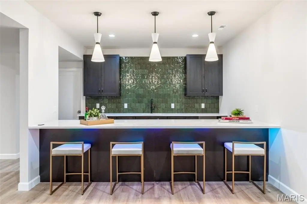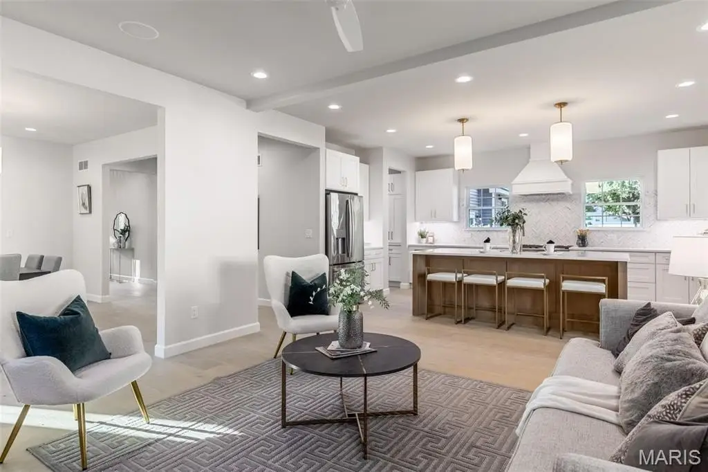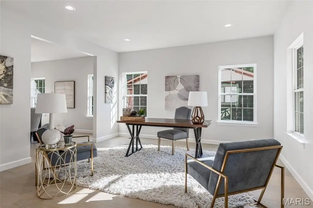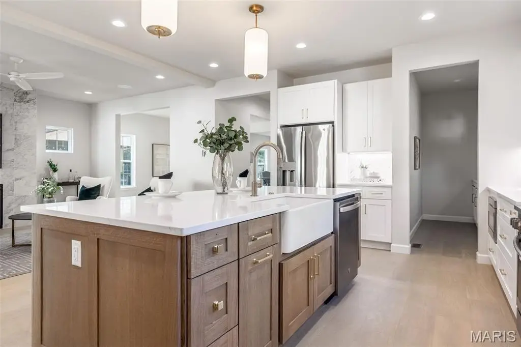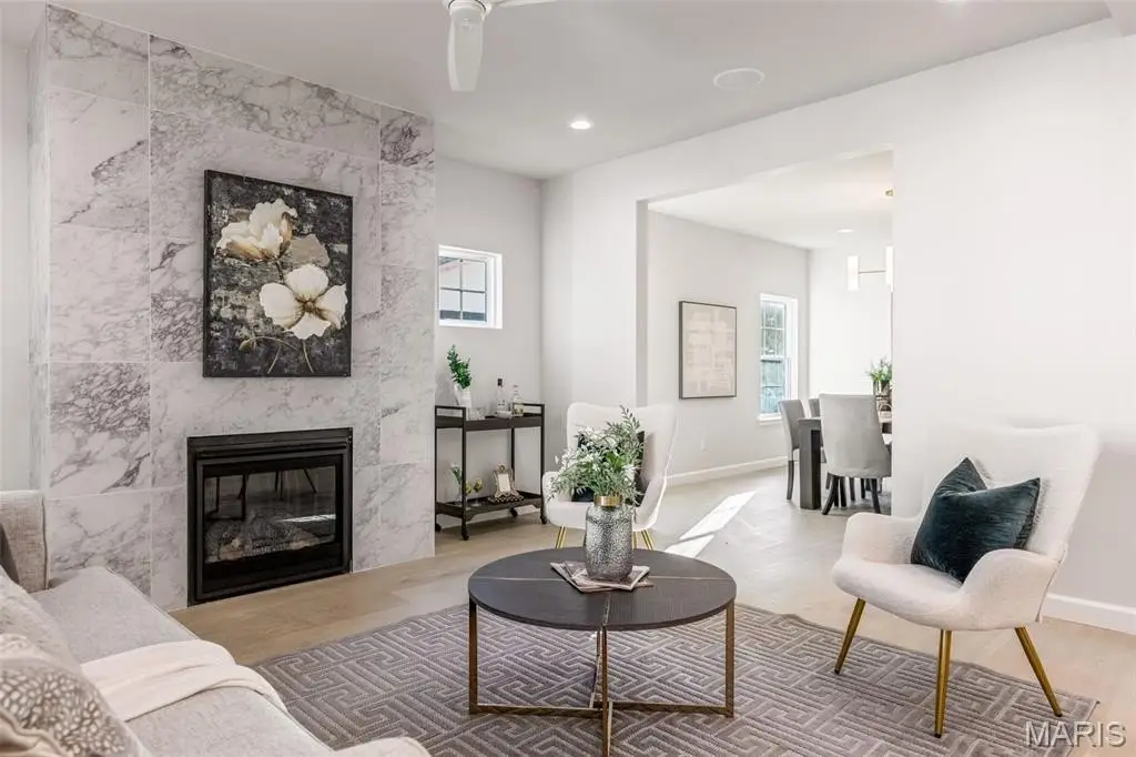 Beautifully nestled in desirable Kirkwood, this stunning five-bedroom, five-bath new built home showcases exquisite craftsmanship, light-toned wood flooring, and designer finishes. What truly sets this home apart is its perfect balance of defined living spaces and open-concept flow. The main level features an office/living space, a separate dining room, and a spacious family room with a gas fireplace. The chef's kitchen impresses with a large center island, quartz countertops, a porcelain farm sink, custom cabinetry, a six-burner gas range with a wood hood, and an expansive walk-in pantry with additional storage. A convenient mudroom sits off the back of the home, and laundry rooms are located on both the main and second floors. Upstairs, each bedroom offers a walk-in closet and direct access to a bathroom. The luxurious primary suite features a private toilet room, a soaking tub framed by dual custom vanities, and a walk in shower. Bedrooms two and three share an impressive dual-entry Jack-and-Jill bath, while bedroom four includes a private en suite. The finished lower level adds even more living space (1055 sq ft) with luxury vinyl flooring, a full bedroom and bath, and a showstopping bar area perfect for entertaining. Additional highlights include a detached two-car garage and zoned HVAC. Enjoy all the amenities and charm that living in Kirkwood has to offer.