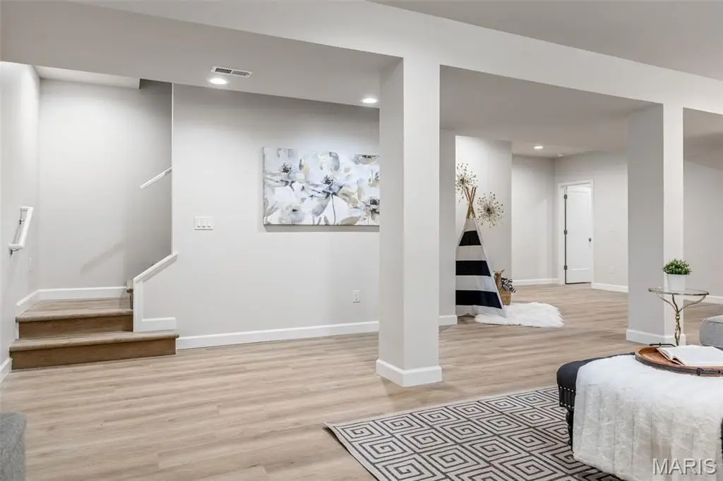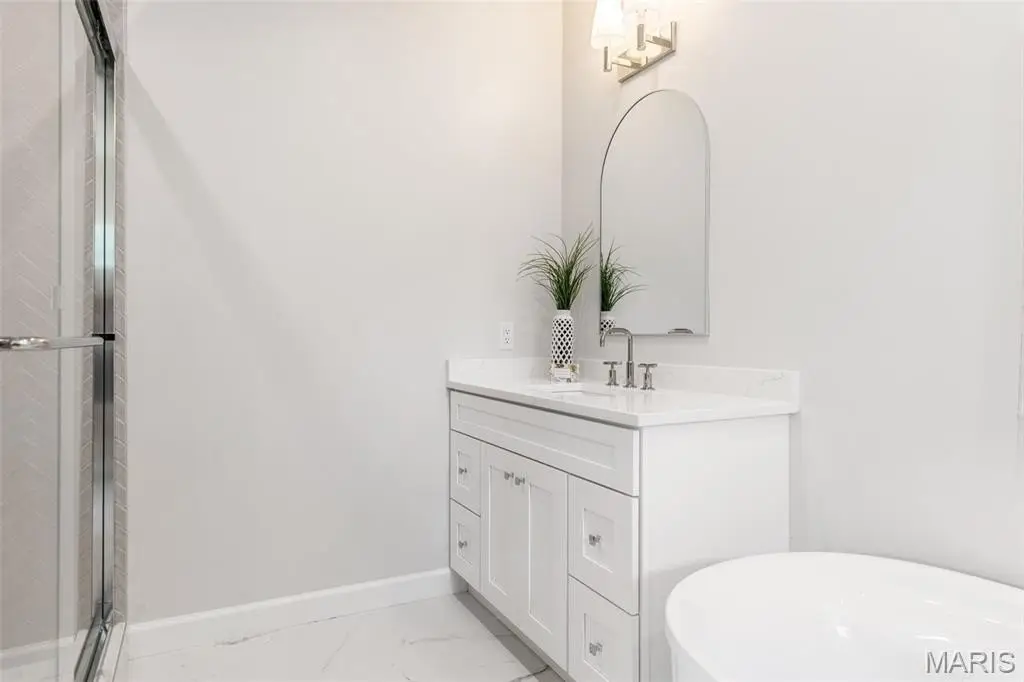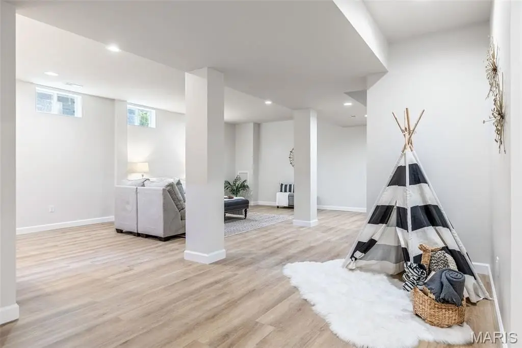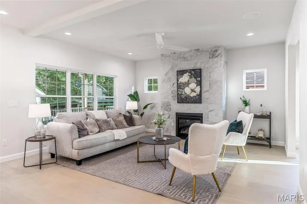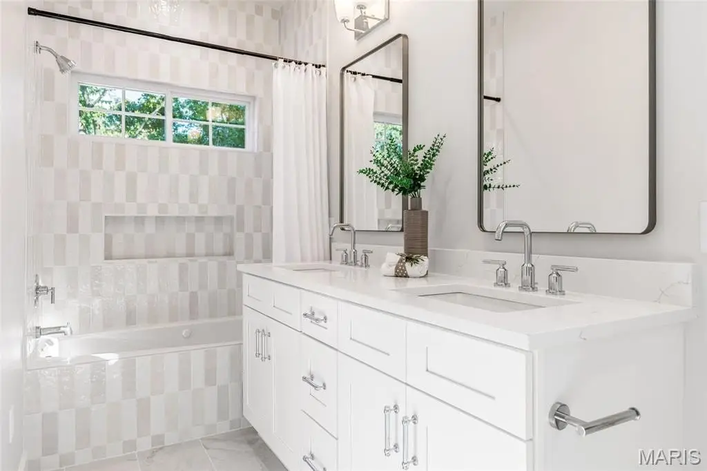Beautifully nestled in desirable Kirkwood, this stunning five-bedroom, five-bath new built home showcases exquisite craftsmanship, light-toned wood flooring, and designer finishes. What truly sets this home apart is its perfect balance of defined living spaces and open-concept flow. The main level features an office/living space, a separate dining room, and a spacious family room with a gas fireplace. The chef's kitchen impresses with a large center island, quartz countertops, a porcelain farm sink, custom cabinetry, a six-burner gas range with a wood hood, and an expansive walk-in pantry with additional storage. A convenient mudroom sits off the back of the home, and laundry rooms are located on both the main and second floors. Upstairs, each bedroom offers a walk-in closet and direct access to a bathroom. The luxurious primary suite features a private toilet room, a soaking tub framed by dual custom vanities, and a walk in shower. Bedrooms two and three share an impressive dual-entry Jack-and-Jill bath, while bedroom four includes a private en suite. The finished lower level adds even more living space (1055 sq ft) with luxury vinyl flooring, a full bedroom and bath, and a showstopping bar area perfect for entertaining. Additional highlights include a detached two-car garage and zoned HVAC. Enjoy all the amenities and charm that living in Kirkwood has to offer.