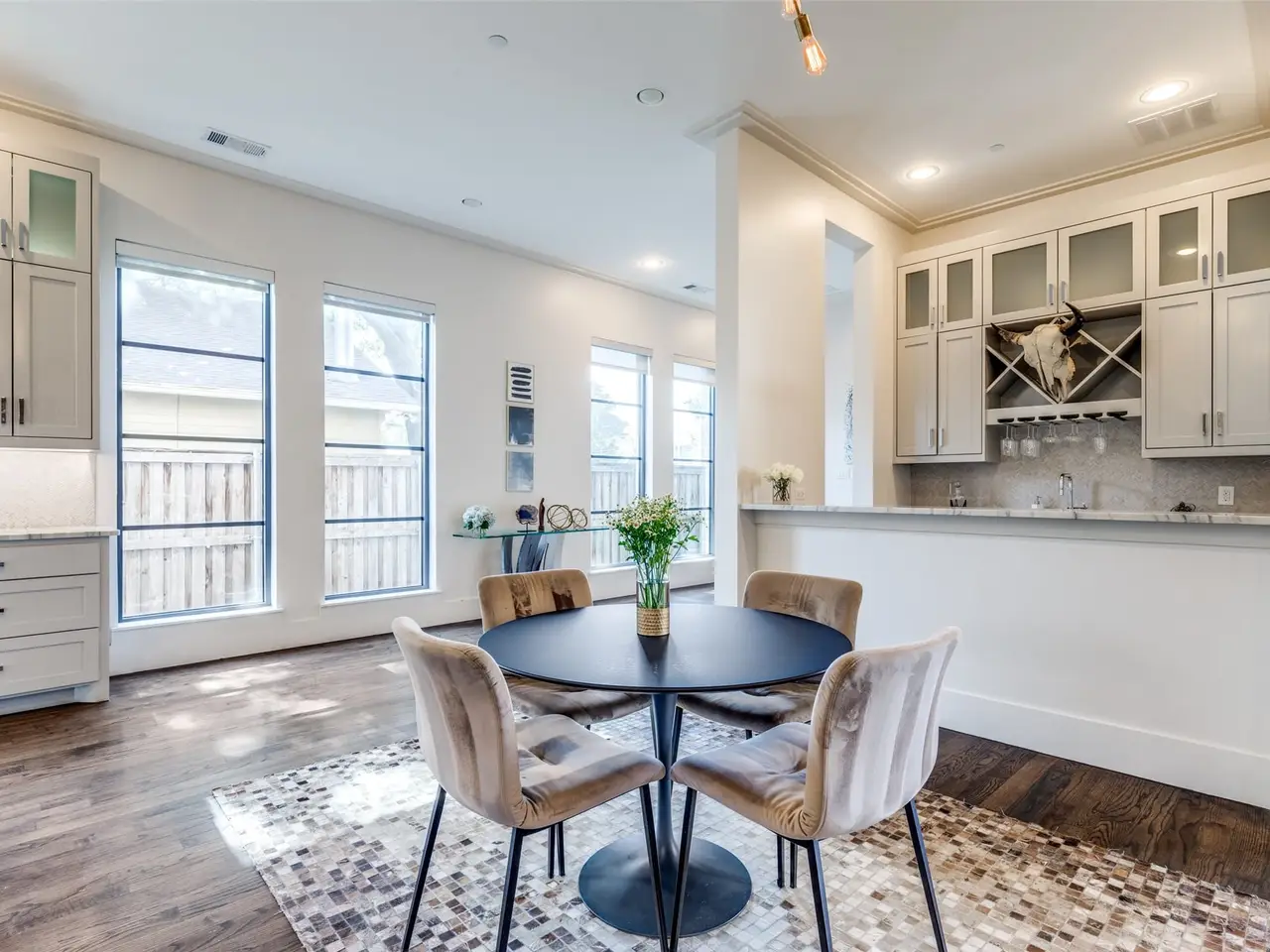 Introducing a stunning modern residence ideally situated just blocks from Dallas Country Club, HP Village, Snider Plaza, and the highly regarded schools including Armstrong Elementary, Highland Park Intermediate and Middle Schools. From the moment you step inside, the expansive living and entertaining spaces speak to a refined yet welcoming lifestyle, with large windows that frame views of the pool, sauna and a Venetian plaster accent wall surrounding the fireplace in the living area. The heart of the home is centered around the chef's kitchen, outfitted with a professional Wolf range, a 48-inch Sub-Zero refrigerator, two Sub-Zero refrigerated drawers, and an approximately 150-bottle Sub-Zero wine cooler - an ensemble that balances performance and sophistication. The home flows gracefully to an elegant office, where soaring 16-foot coffered ceilings and a dramatic 14-foot-high wall of windows bathe the space in natural light. Beyond, an open loft overlooks the first floor, offering both visual connection and a sense of spaciousness. A wet bar, complete with a Scotsman ice maker and Sub-Zero refrigerator, rounds out the living and entertaining experience in style. A first-floor bedroom with en-suite bath offers convenience and privacy, while upstairs, three additional large bedrooms each feature their own luxurious baths. The expansive primary suite is a sanctuary unto itself, boasting a luxury bath and a sprawling 20x19-foot walk-in closet. A wet bar, complete with a Scotsman ice maker and Sub-Zero refrigerator, rounds out the living and entertaining experience in style. Home is also equipped with a whole home Generac Generator.