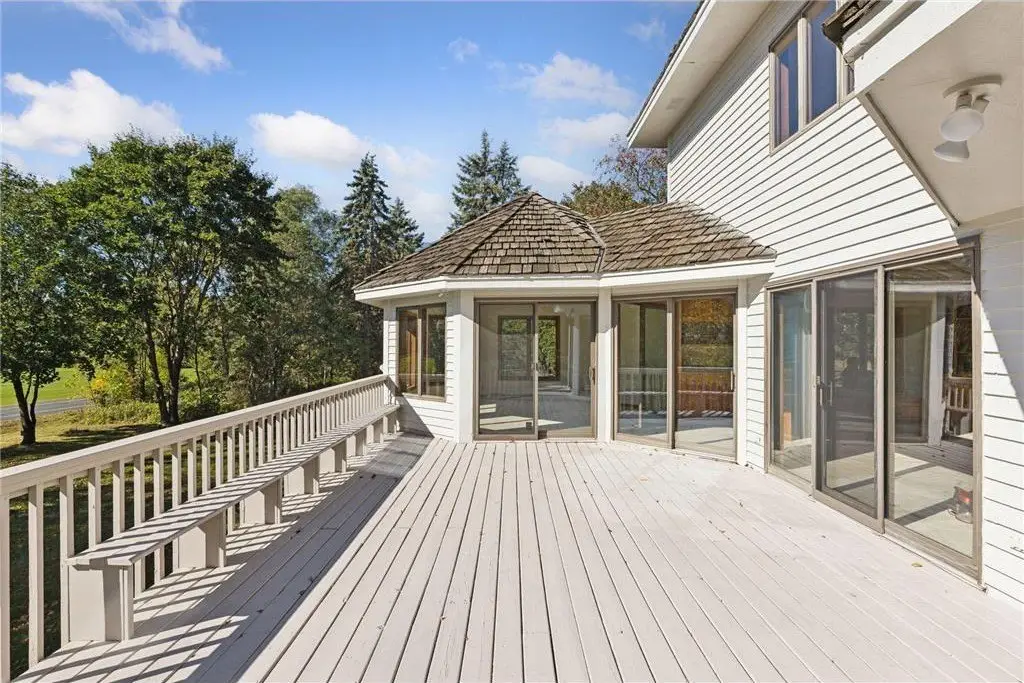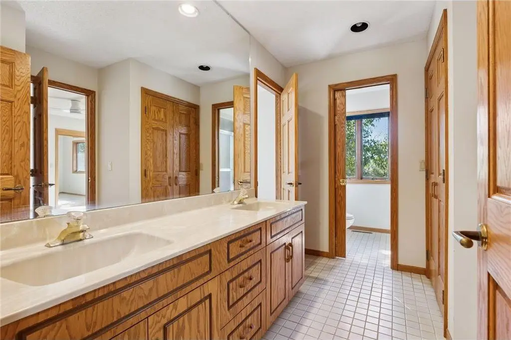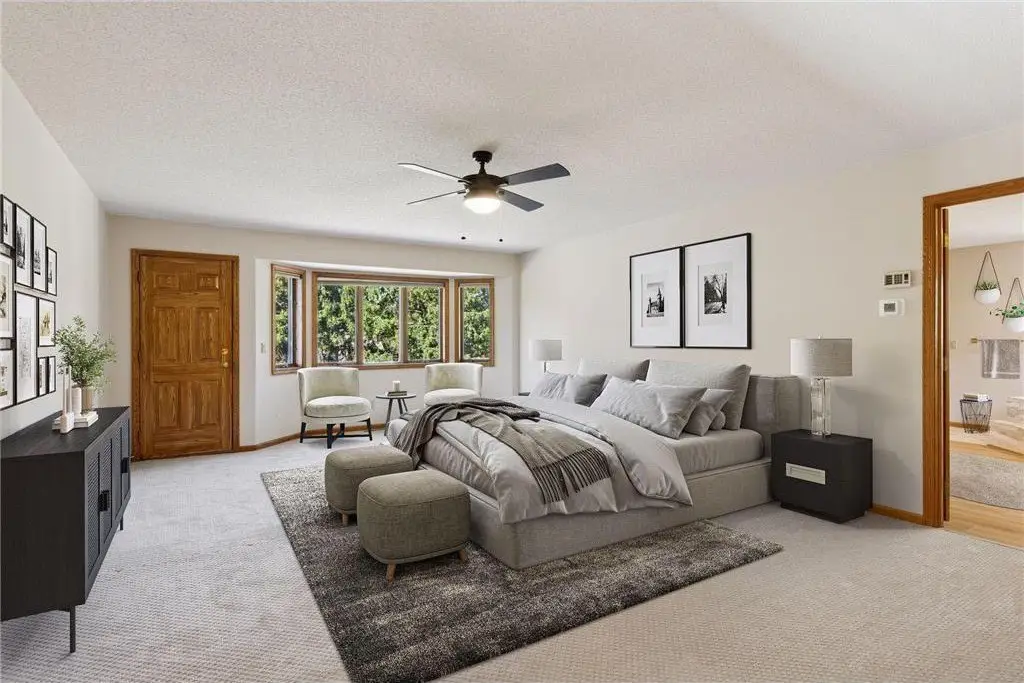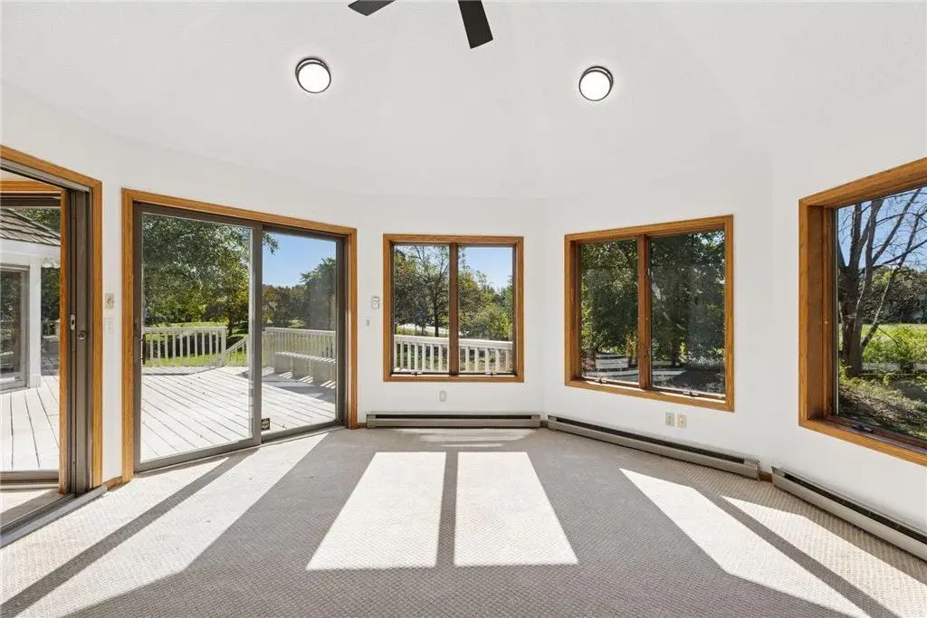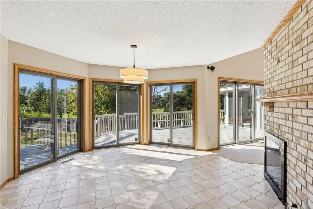 Beautifully set on a 1.07-acre lot in the heart of North Oaks, this spacious home offers a versatile floor plan and an exceptional location near Pleasant Lake, the West Rec Center, trails, ball fields, and the historic barn. Enjoy easy walkability to shops, restaurants, and coffee, all within the award-winning Mounds View School District. A classic brick front, concrete circle drive, and mature trees create timeless curb appeal. Inside, generous living spaces showcase high ceilings, abundant natural light, fresh paint, updated lighting, new carpet, and an inviting flow throughout. The main level features a sunny eat-in kitchen, formal and informal dining, a bright living room, sunroom, and a main-floor office that can serve as a fifth bedroom. A large family room with wet bar and built-ins opens to a spacious deck and flat backyard—perfect for gatherings or quiet evenings. A large mudroom with laundry adds everyday convenience. Upstairs, a graceful spiral staircase leads to four bedrooms, each with en suite baths, including a spacious owner’s suite with private balcony. A loft sitting area with built-in bookcase overlooks the family room below—an inviting spot for reading, lounging, or enjoying the view. The walkout lower level includes a second kitchen, sixth bedroom, and flexible space for guests or recreation. Move-in ready and well cared for, with potential to refresh and bring to today’s style. A wonderful opportunity in a premier North Oaks location—motivated sellers welcome your visit.