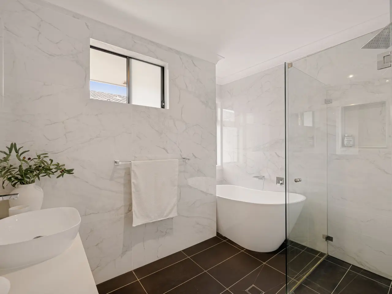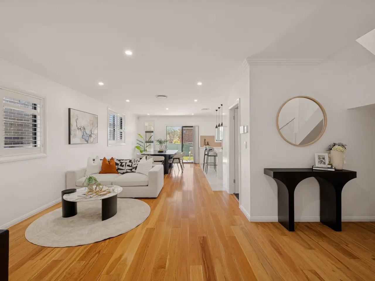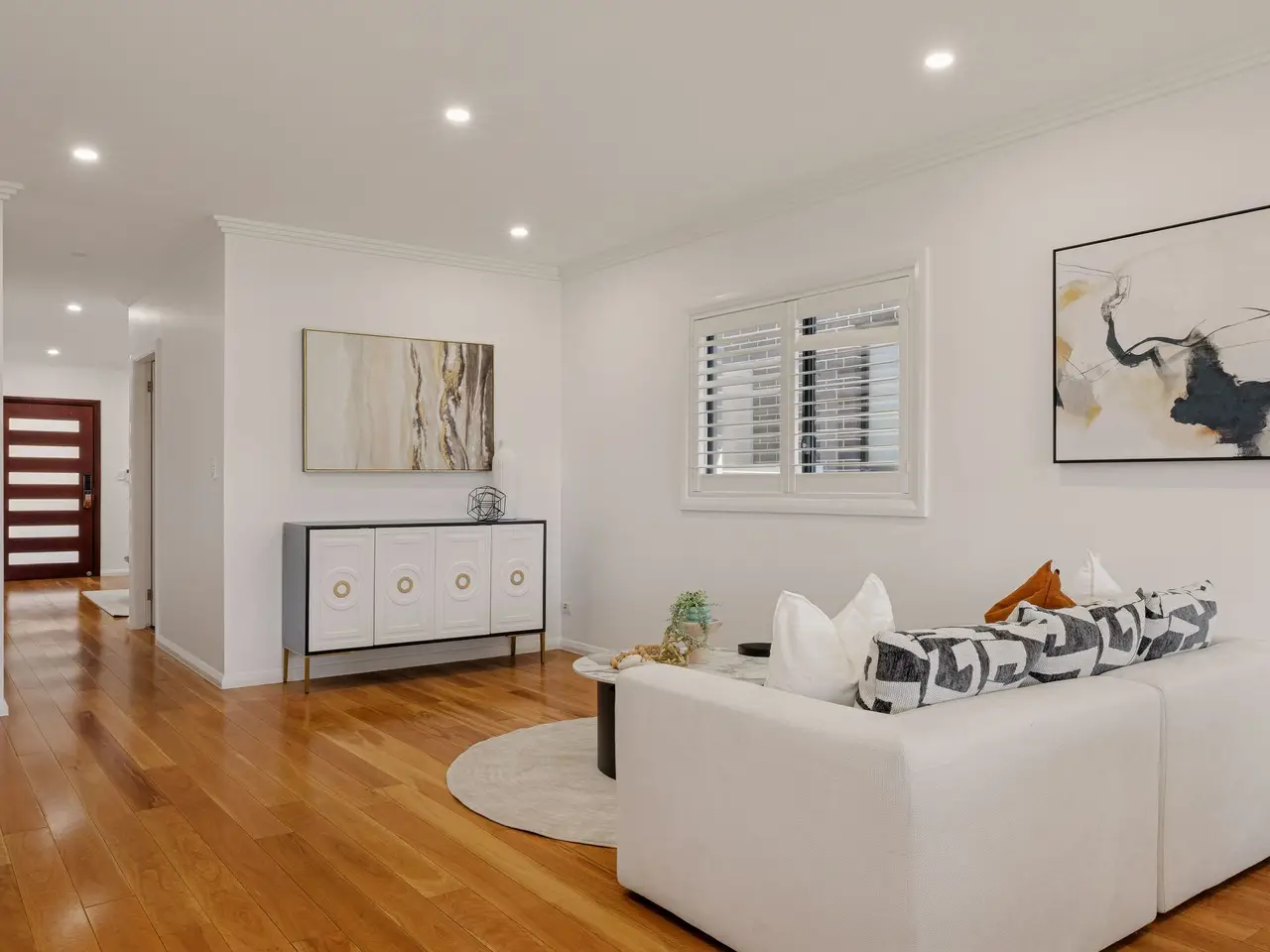 Exuding contemporary elegance and flawless craftsmanship, this refined residence delivers a luxurious environment of comfort, style and functionality. Its light-filled interiors are beautifully appointed with premium finishes and offer a seamless connection to the outdoors, perfect for both relaxed living and entertaining. Thoughtfully designed for the modern family, it provides multiple living zones, a designer kitchen and a landscaped garden. Peacefully positioned in a lifestyle-focused location, it's set within 450m of Concord West Station, quality schools and village shopping. - Spacious living/dining area framed by large windows and effortless outdoor flow - Covered alfresco terrace leads to a manicured lawn, perfect for easy entertaining - Sleek kitchen features stone benchtops, soft-close cabinetry and gas appliances - Four bedrooms fitted with mirrored built-ins, highlight windows with roller blinds - Master includes a walk-in wardrobe, an ensuite bathroom and a private balcony - Main bathroom with floor-to-ceiling tiles, high-end fittings and a freestanding bath - Interiors with ducted air-conditioning, downlights, video intercom and alarm system - Automatic garage with internal access plus additional driveway parking, storage - Premium location within 450m walking distance to Concord West Station/buses - Located within close proximity to elite local schools, shopping and vibrant cafes