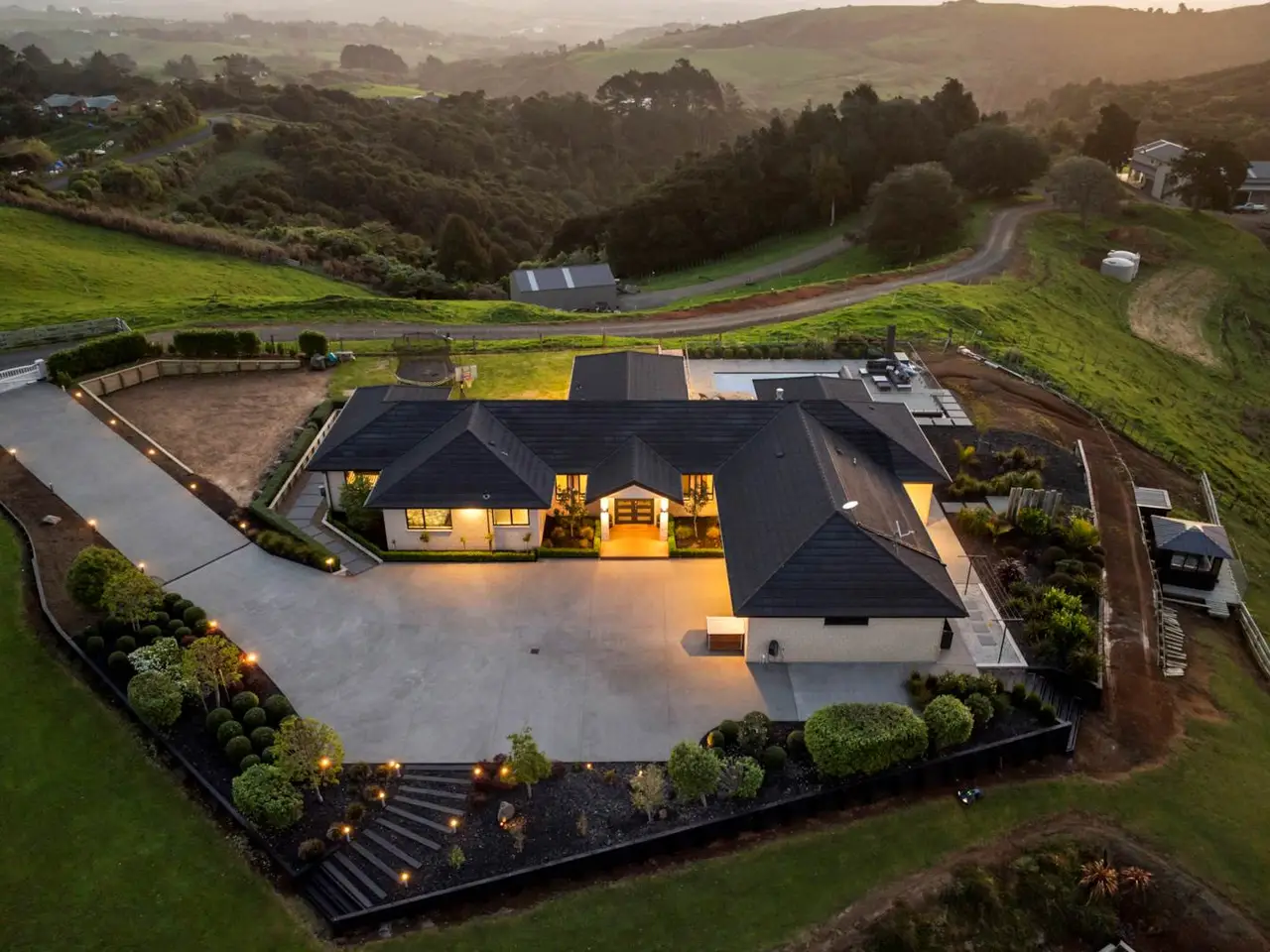 THE PERFECT COMBINATION – PANACHE + PRACTICALITYEnjoying a scenic hilltop position with breathtaking vistas across the countryside, this 381 square metre (approx) brick home with metal tile roof and double glazing, 2.55m ceilings and ducted zoned air conditioning throughout. Built in 2020 by Golden Homes, renowned for their quality constructions, and carries with it the balance of the Goldseal Completion & Defects Warranty. The property resides on 6,377 square meters (1.57 acres) and is zoned Rural Production. Electric gates open to sealed driveway with young plantings and feature lighting leading to expansive extra parking for all manner of vehicles.Double doors open to the foyer and entry to opulent open plan family living with built-in fire and cabinetry, elegant dining with dramatic feature ceiling and lighting and a dream kitchen with waterfall edge stone island bench and breakfast bar with pendant lighting, soft-close drawers, sparkling, plus hot & chilled water, Fisher & Paykel 900mm oven and hob, integrated Miele dishwasher and butler’s pantry. An adjoining breakfast nook opens to a second large living room which, along with family living and the dining area, all spill out to open air and covered entertaining with motorized pull down blinds and outdoor speakers on the long timber deck which runs along the side of this ultra-stylish property. A Titan barbeque with gas hob and Bosch warming drawer plus a bar fridge stand ready to host family and friends while a clear fenced heated salt water pool with roller cover and a covered spa offer hours of fun and relaxation for big and small kids alike. And there’s more! Cleverly positioned at the end of the hallway there’s a home theatre. Yes, this home really does have it all! Three light bright bedrooms – two with built-in study nooks and all with built-in wardrobes are serviced by a family bathroom with storage, bath and glass and tile shower while, privately positioned, the deluxe master bedroom with bay window and built-in seating, walk-in robe, chic ensuite with dual vanity and glass and tile shower with dual heads, spills out to the deck and pool There’s also an office with a built in desk, a powder room and a spacious laundry which opens onto its own drying area, plus a double lock-up garage, excellently equipped with EV charger, built-in storage cupboards and large loft storage with pull down access.Surrounded by lawns, tended by two lawn robots, there a huge 240 square metre (approx) shed with its own separate roadside entry, alarm and cameras and expansive parking for large vehicles, both inside and out. Storage is abundant for farm equipment and all manner of things plus there’s extra accommodation here comprising a hall entry, open plan living, dining and kitchenette/bar with heat pump, two multi-purpose rooms and a bathroom. There’s also a mezzanine floor with space for all manner of pursuits. There is a paddock, 3 x 30,000 L water tanks, filtration system – the list here seems endless. Our vendors are highly motivated so make the call and come and experience this outstanding property for yourself.• 381m2 hilltop home on 6,377 sqm (1.57 acres). Breathtaking vistas• Electric gate entry. Sealed driveway + lighting• Brick + metal tile roof construction. Double glazing• Constructed in 2020. Goldseal Completion & Defects Warranty• Ducted zoned air conditioning. 2.55m high ceilings• Security alarm system + cameras in shed & home• Entry foyer. Expansive sunlit open plan living• Lounge + built-in fire & cabinetry flowing outdoors• Opulent dining + feature ceiling. Outdoor access• Breakfast nook + designer kitchen & butler’s pantry• Adjacent 2nd living room spilling out to al fresco deck• Outstanding outdoor covered & open leisure areas• Titan BBQ & gas hob. Warming drawer & bar fridge• Motorized pull down blinds & outdoor speakers• Clear fenced heated salt water pool• Roller pool cover. Large paved leisure surrounds• Built-in covered outdoor spa with spectacular views• Well positioned home theatre. Home office• 3 bedrooms + built-in wardrobes. Family bathroom• Deluxe master bedroom, walk-in robe, ensuite & patio• Laundry + storage & drying deck. Powder room• Home access, double lock-up Garage. EV charger• Pull down loft storage. Abundant outdoor parking• 240 square metre (approx) shed. Separate entry off roadside • Marine carpet & mezzanine. Huge outdoor parking• Self-contained unit 2 rooms, bathroom & living areas• Vegetable garden. Fruit trees & garden shed • Fenced paddock. 3 x 30,000 L water tanks Filtration system• Established & young landscaping. 2 Lawn robots• In zone for both Rosehill College and Papakura High School• Close to Ararimu School. 17.8km to ACG Strathallan• 6km to to north & south motorway on-ramp• 33.9km to Auckland Airport & 46kms to Auckland CBD Auction: 177 King Street, Pukekohe (Branch Office) on Thursday 4 December 2025 at 2:00PM (unless sold prior)