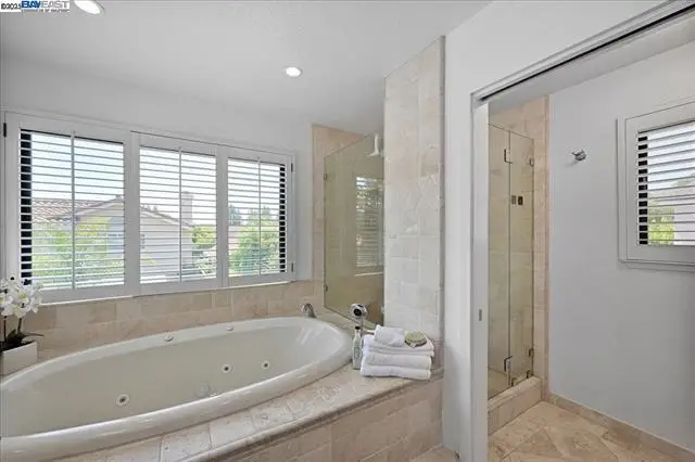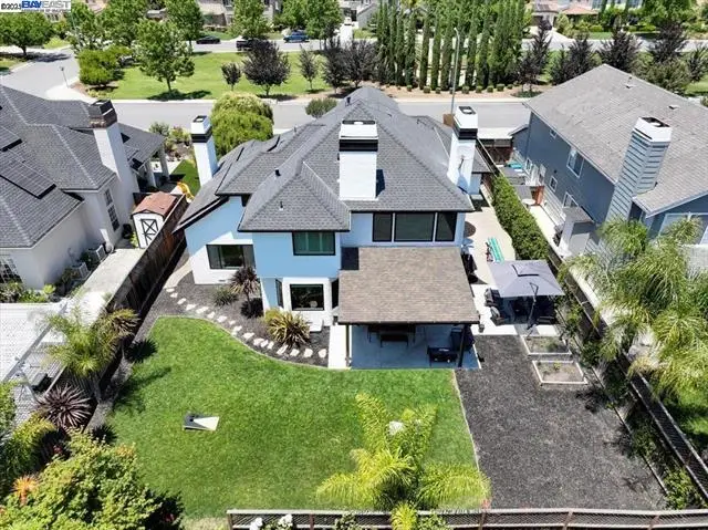 Nestled in a cul-de-sac within the NW quadrant of Morgan Hill. This updated home offers luxury, comfort, and style. Step inside to soaring ceilings and a custom glass staircase that sets the tone for this contemporary showpiece. The open floor plan features, a beautifully remodeled fireplace in the formal living room, with an adjacent formal dining area. Family room and kitchen are a true standout, equipped with Sub-Zero and Wolf appliances, porcelain countertops, full backsplash, and modern shaker cabinetry. Family room views of yard through sleek stacking doors that seamlessly blend indoor and outdoor living. 1 bedroom and a full bath located downstairs, the layout is ideal for guests or multi-generational living. Upstairs, you'll find three spacious bedrooms and two full baths. The primary suite includes a fireplace, walk-in closet, and a spa-inspired bath with a jetted tub surrounded by windows—ideal for relaxation. Enjoy year-round outdoor living in the beautifully landscaped backyard featuring a large covered patio, expansive lawn, custom planter boxes for gardening, and ample space for entertaining. Newer roof, New windows, water softener, Owned Solar System for energy efficiency. Just minutes to charming Downtown Morgan Hill, parks, and award-wining schools.