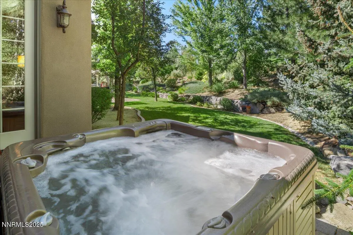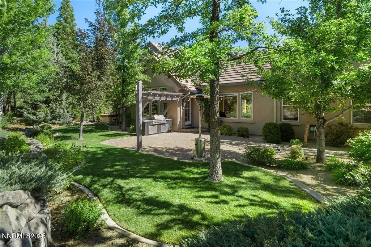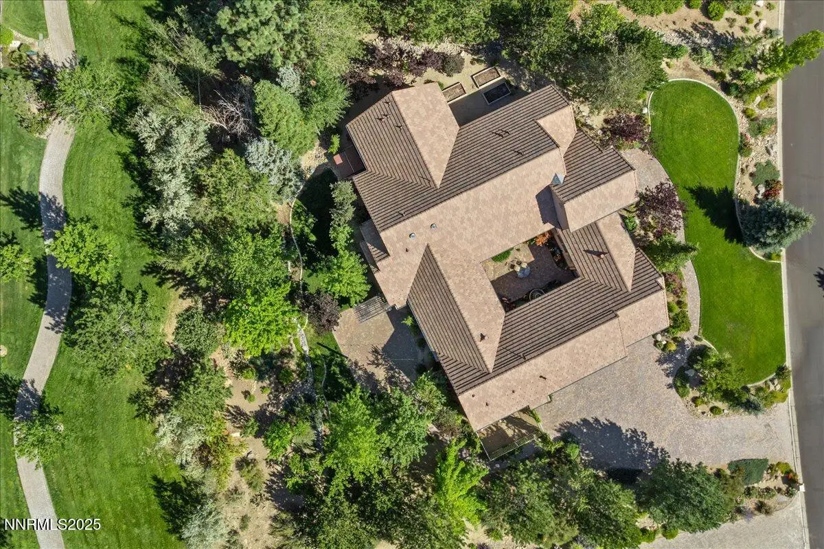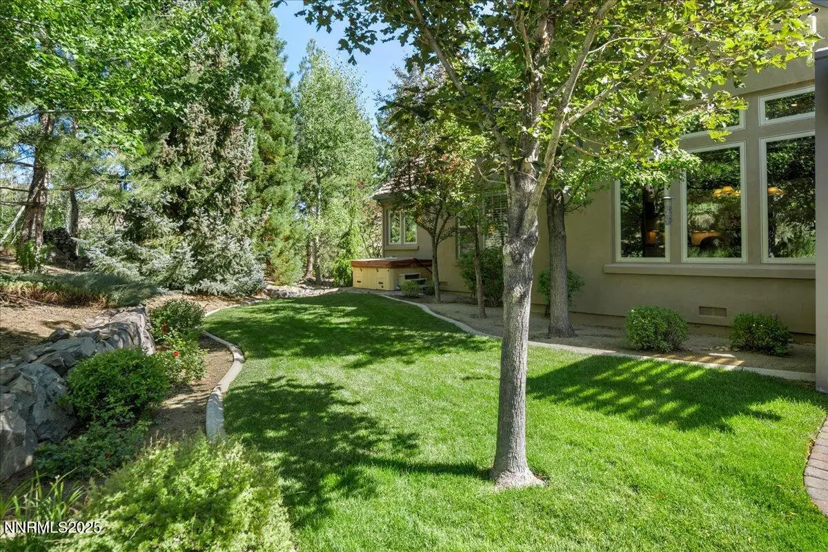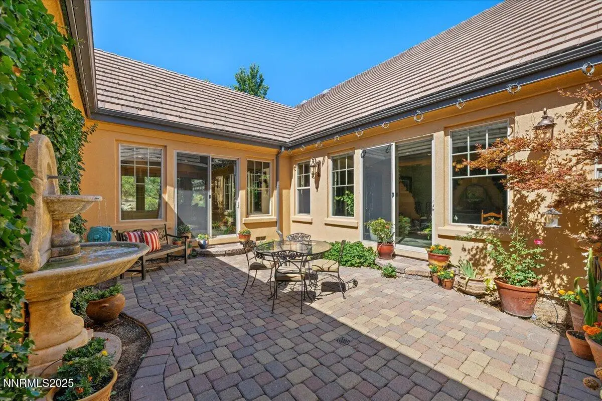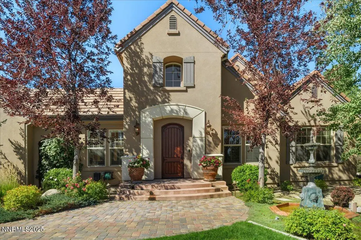 Mountain Views in Montreux! This luxurious single-level presents outstanding curb appeal, private lush landscaping, and extensive upgrades. The interior courtyard is an open-air oasis, providing luminous natural sunlight. Recent improvements include Thermador double oven, new interior paint, Primary Bath bidet, new LED lights, new attic ladder access, and approximately 50 new foliage plantings. Ease right into the Country Club lifestyle - Montreux Sports Membership included. Gourmet Kitchen features Granite countertops, Miele dishwasher, Thermador cooktop, warming drawer, and pull-out cabinet shelves. Kitchen and Laundry were expanded to create extra space and storage. Second Living Room/Bar is impressively equipped with temperature- controlled wine cabinet, ice maker, and refrigerator drawer. Slate tile, hardwood floors, Alder baseboards, and remarkable built-ins throughout. Other recent improvements include new electrical in Kitchen, new interior garage steps, and recently repaired furnace. The home has two almost new water heaters, newer acrylic stucco, roof system, reinforced shear walls, insulated garage doors, and re-sealed and re-installed windows. Surround Sound in Family Room. Peaceful backyard is outfitted with a built-in BBQ, expansive paver patio, hot tub, full mature trees, and 11 rose bushes. Interior Courtyard includes cables that support drop canvas covering. Welcome to Montreux, Northern Nevada's premier private golf course community. This 24/7 security gated luxury community surrounds an 18-hole, Jack Nicklaus Signature Championship Course (Par 72), with world-class Clubhouse amenities. This home on 16956 Rue du Parc is conveniently located near Montreux's main entrance, enjoys easy access to the community's paver walking trail, and is just a short stroll to all the Clubhouse action. In only 20 minutes, you can be skiing at Mt. Rose Ski Resort or jetting off from the Reno-Tahoe International Airport. Beautiful Lake Tahoe is a just a 30-minute leisurely drive away.