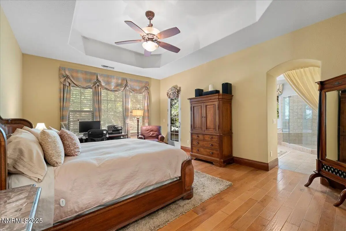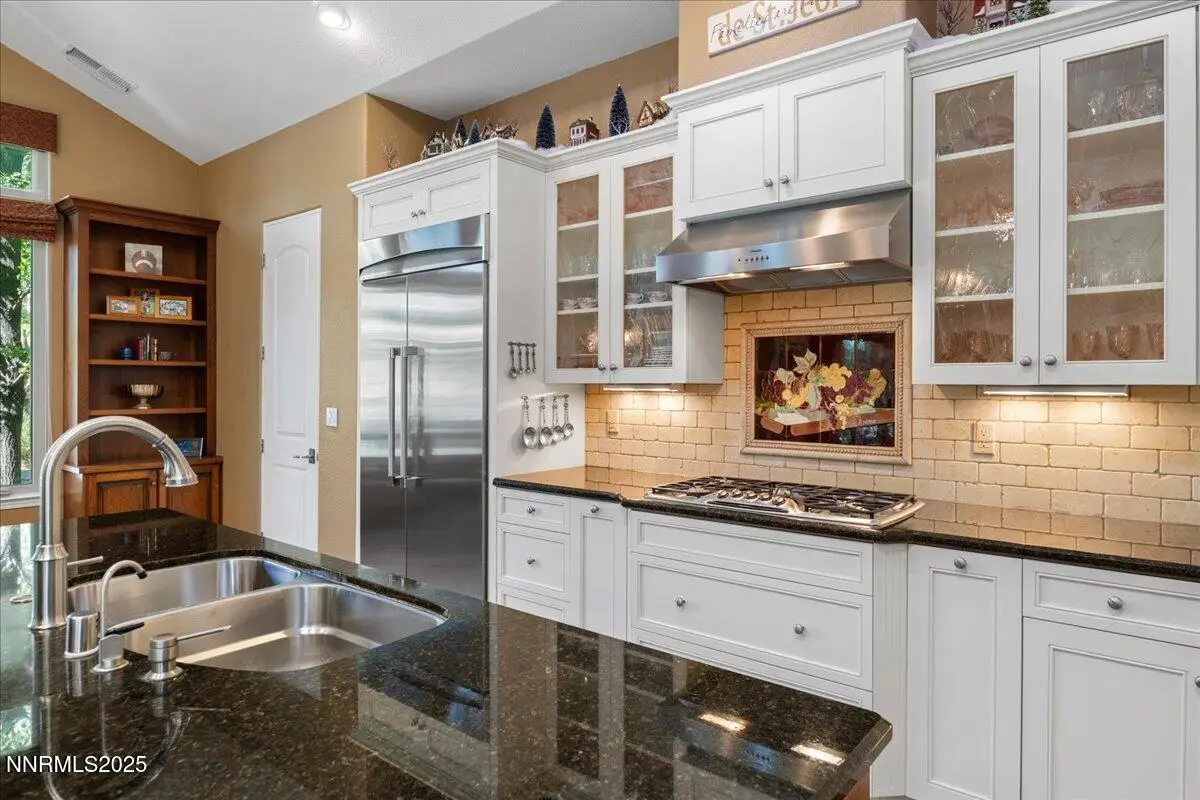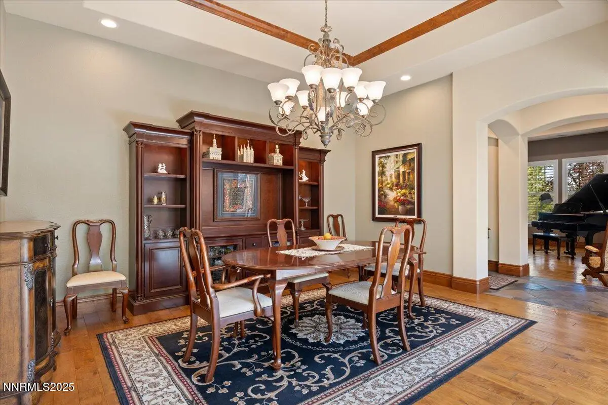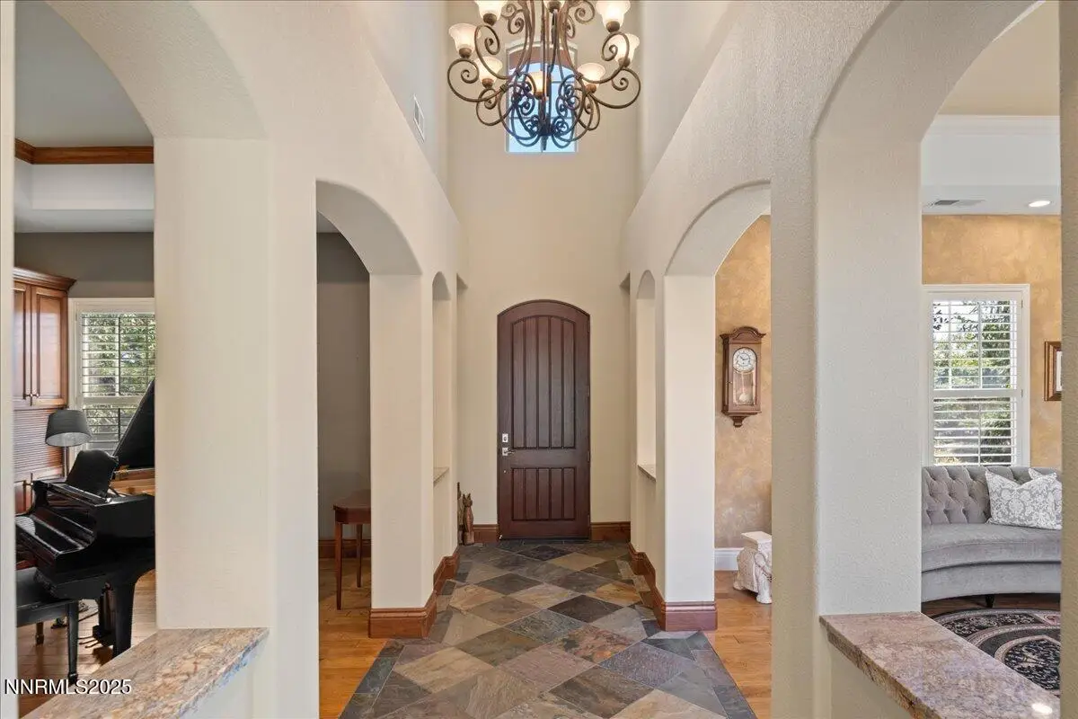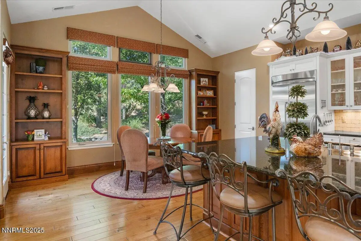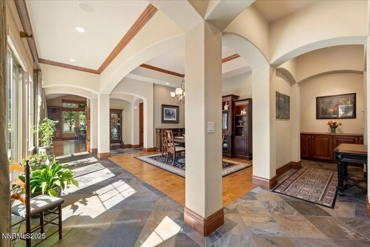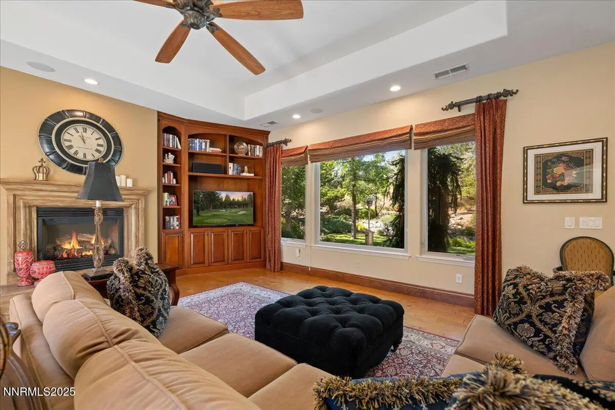 Mountain Views in Montreux! This luxurious single-level presents outstanding curb appeal, private lush landscaping, and extensive upgrades. The interior courtyard is an open-air oasis, providing luminous natural sunlight. Recent improvements include Thermador double oven, new interior paint, Primary Bath bidet, new LED lights, new attic ladder access, and approximately 50 new foliage plantings. Ease right into the Country Club lifestyle - Montreux Sports Membership included. Gourmet Kitchen features Granite countertops, Miele dishwasher, Thermador cooktop, warming drawer, and pull-out cabinet shelves. Kitchen and Laundry were expanded to create extra space and storage. Second Living Room/Bar is impressively equipped with temperature- controlled wine cabinet, ice maker, and refrigerator drawer. Slate tile, hardwood floors, Alder baseboards, and remarkable built-ins throughout. Other recent improvements include new electrical in Kitchen, new interior garage steps, and recently repaired furnace. The home has two almost new water heaters, newer acrylic stucco, roof system, reinforced shear walls, insulated garage doors, and re-sealed and re-installed windows. Surround Sound in Family Room. Peaceful backyard is outfitted with a built-in BBQ, expansive paver patio, hot tub, full mature trees, and 11 rose bushes. Interior Courtyard includes cables that support drop canvas covering. Welcome to Montreux, Northern Nevada's premier private golf course community. This 24/7 security gated luxury community surrounds an 18-hole, Jack Nicklaus Signature Championship Course (Par 72), with world-class Clubhouse amenities. This home on 16956 Rue du Parc is conveniently located near Montreux's main entrance, enjoys easy access to the community's paver walking trail, and is just a short stroll to all the Clubhouse action. In only 20 minutes, you can be skiing at Mt. Rose Ski Resort or jetting off from the Reno-Tahoe International Airport. Beautiful Lake Tahoe is a just a 30-minute leisurely drive away.
