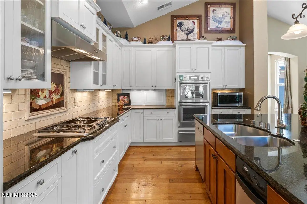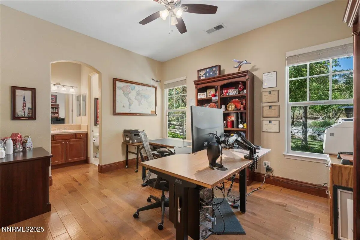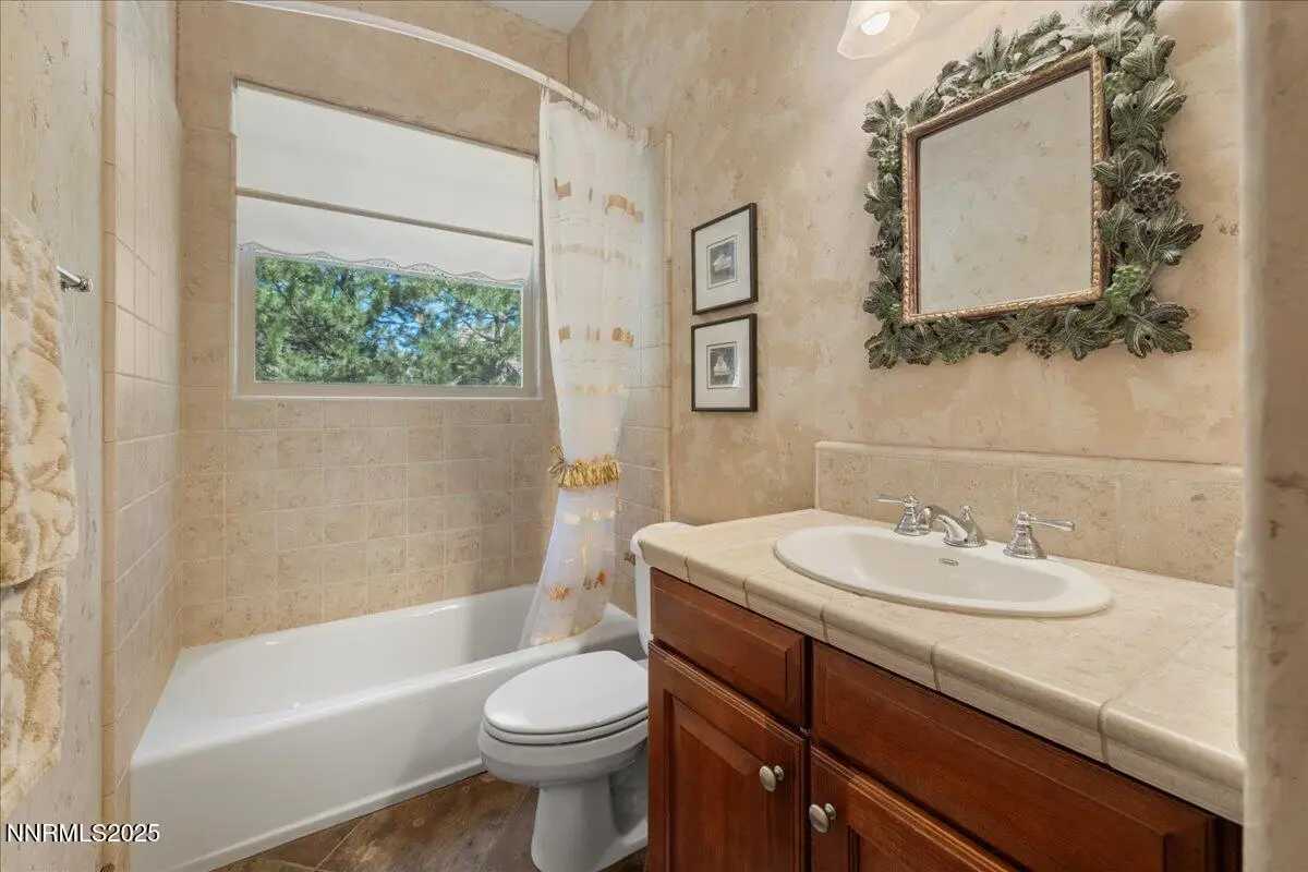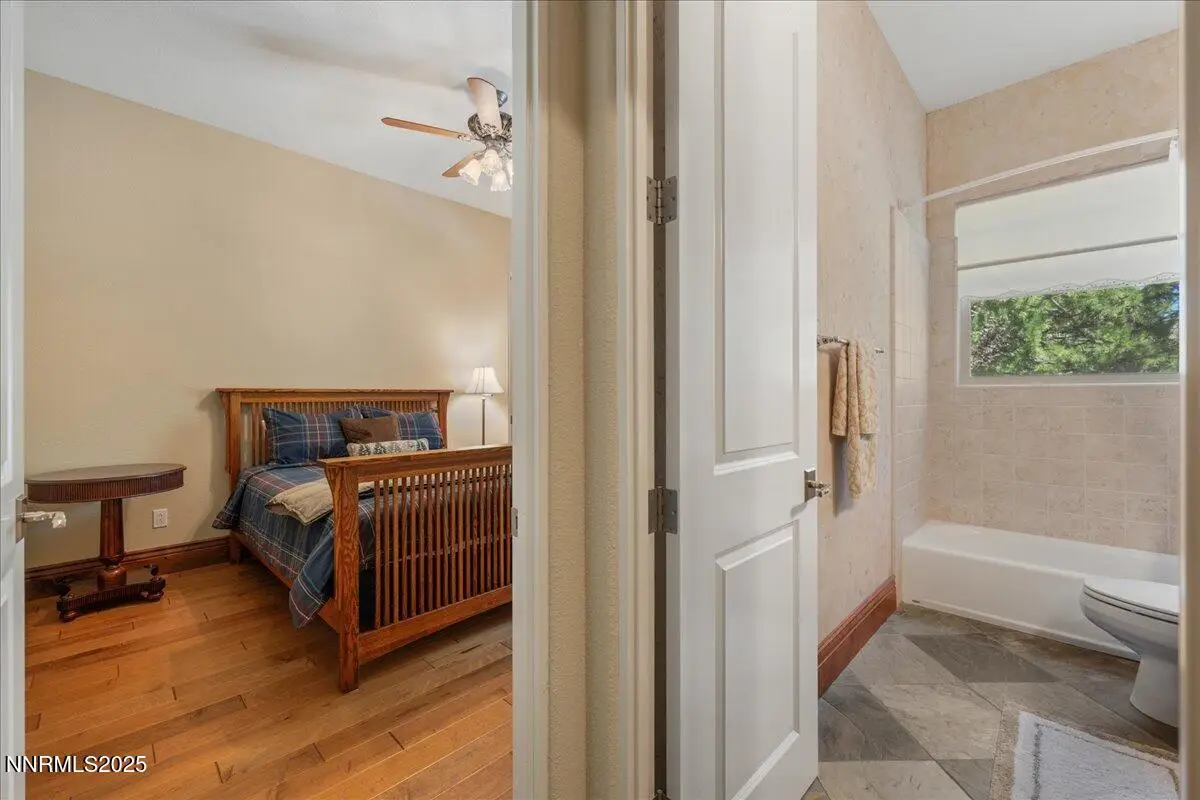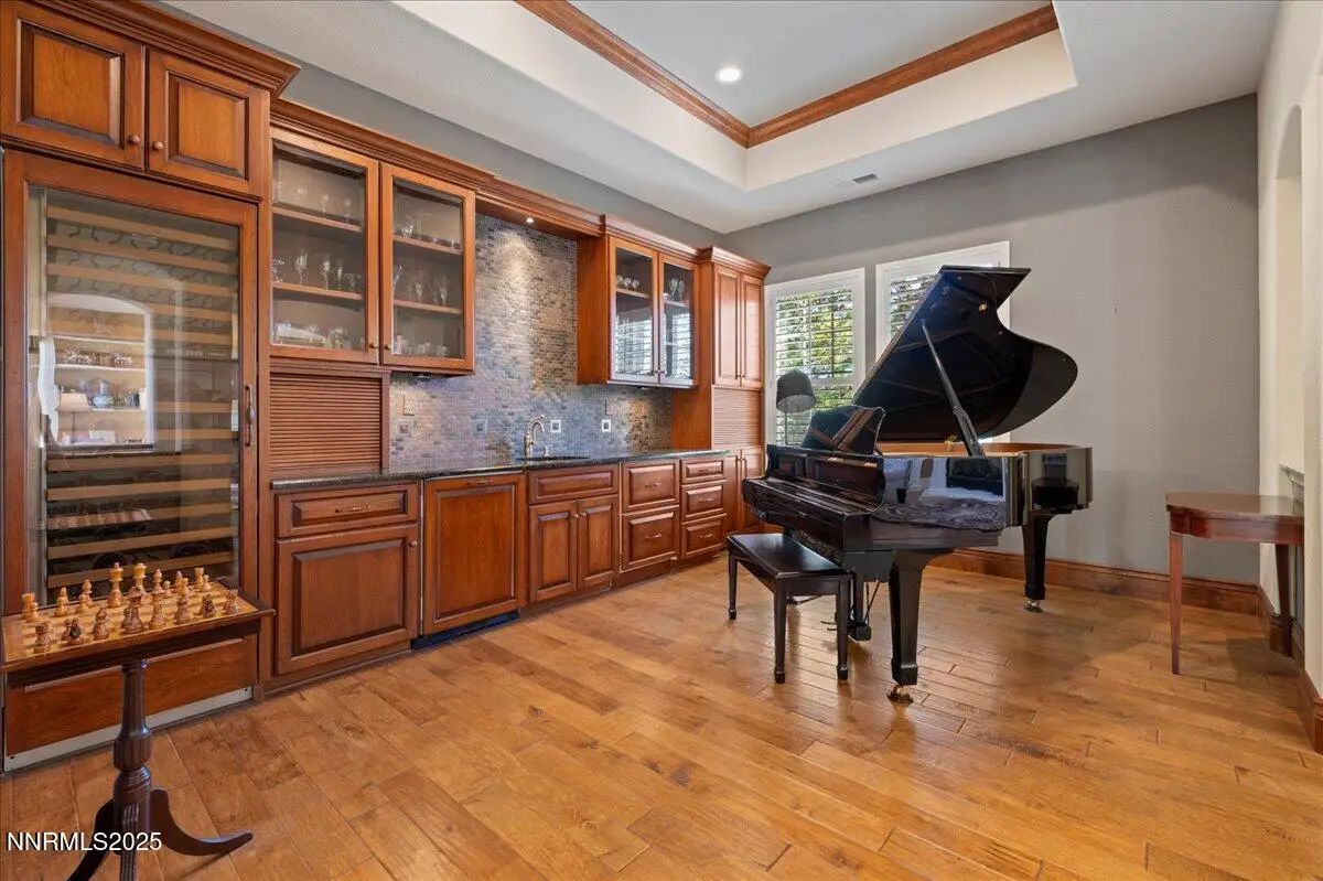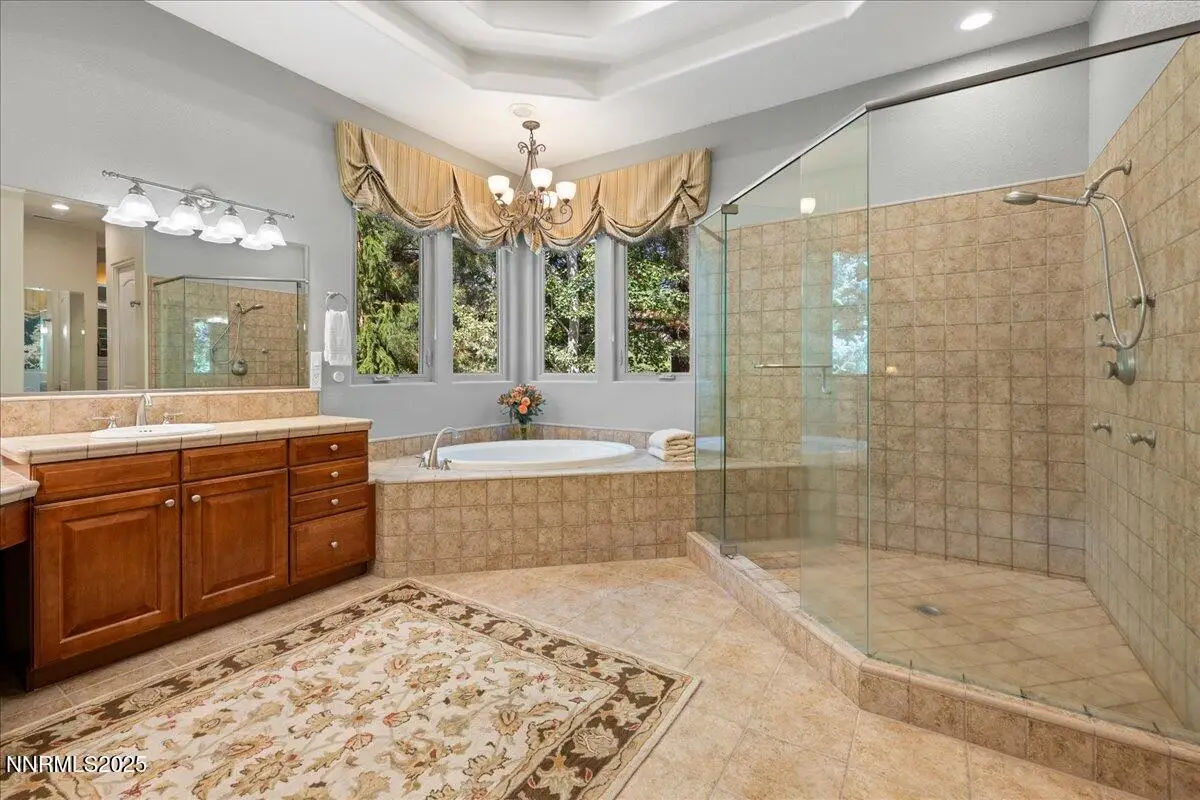 Mountain Views in Montreux! This luxurious single-level presents outstanding curb appeal, private lush landscaping, and extensive upgrades. The interior courtyard is an open-air oasis, providing luminous natural sunlight. Recent improvements include Thermador double oven, new interior paint, Primary Bath bidet, new LED lights, new attic ladder access, and approximately 50 new foliage plantings. Ease right into the Country Club lifestyle - Montreux Sports Membership included. Gourmet Kitchen features Granite countertops, Miele dishwasher, Thermador cooktop, warming drawer, and pull-out cabinet shelves. Kitchen and Laundry were expanded to create extra space and storage. Second Living Room/Bar is impressively equipped with temperature- controlled wine cabinet, ice maker, and refrigerator drawer. Slate tile, hardwood floors, Alder baseboards, and remarkable built-ins throughout. Other recent improvements include new electrical in Kitchen, new interior garage steps, and recently repaired furnace. The home has two almost new water heaters, newer acrylic stucco, roof system, reinforced shear walls, insulated garage doors, and re-sealed and re-installed windows. Surround Sound in Family Room. Peaceful backyard is outfitted with a built-in BBQ, expansive paver patio, hot tub, full mature trees, and 11 rose bushes. Interior Courtyard includes cables that support drop canvas covering. Welcome to Montreux, Northern Nevada's premier private golf course community. This 24/7 security gated luxury community surrounds an 18-hole, Jack Nicklaus Signature Championship Course (Par 72), with world-class Clubhouse amenities. This home on 16956 Rue du Parc is conveniently located near Montreux's main entrance, enjoys easy access to the community's paver walking trail, and is just a short stroll to all the Clubhouse action. In only 20 minutes, you can be skiing at Mt. Rose Ski Resort or jetting off from the Reno-Tahoe International Airport. Beautiful Lake Tahoe is a just a 30-minute leisurely drive away.