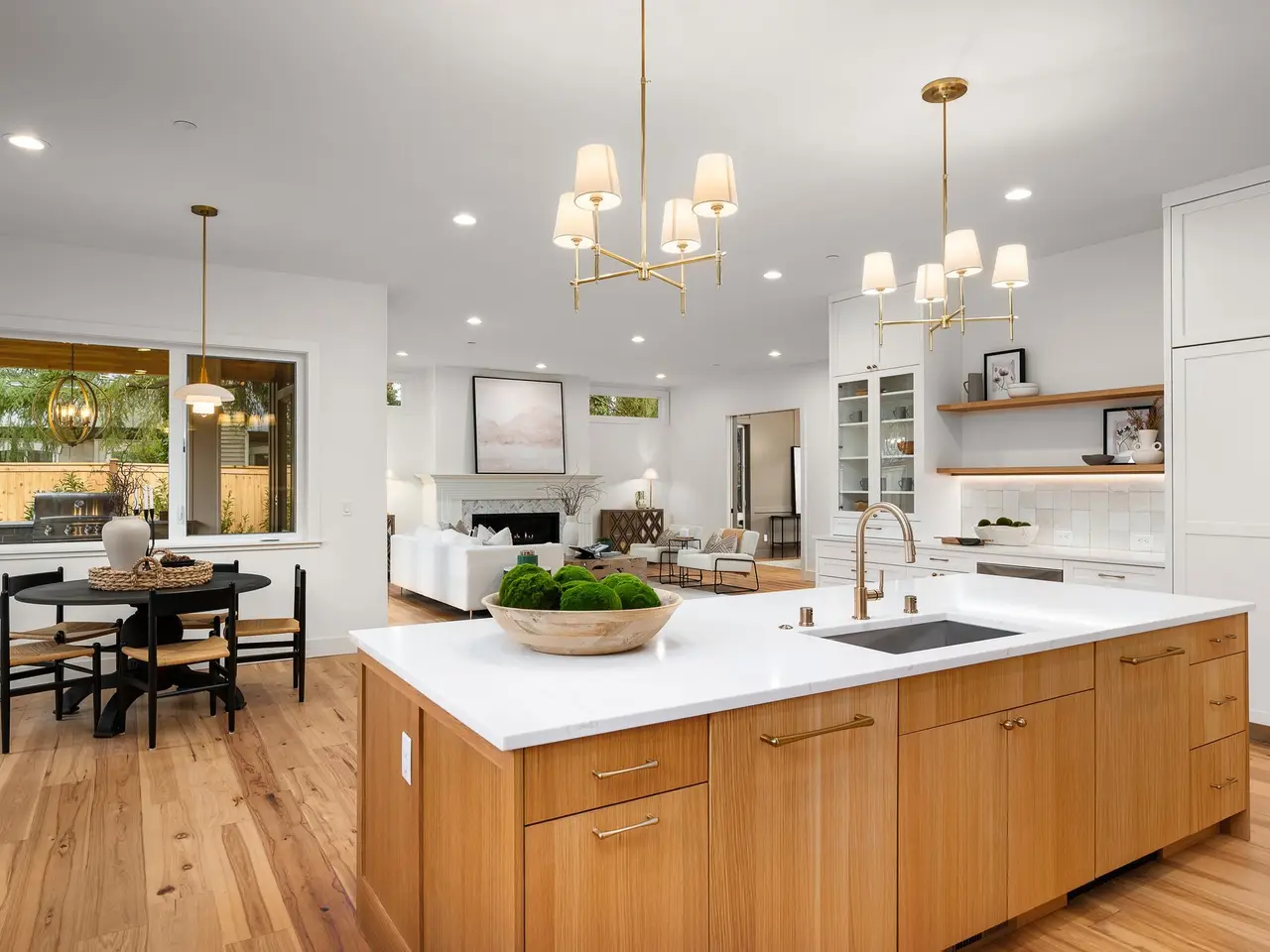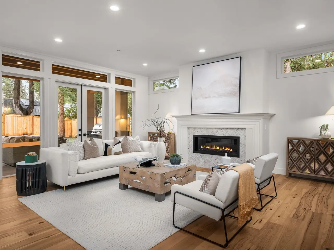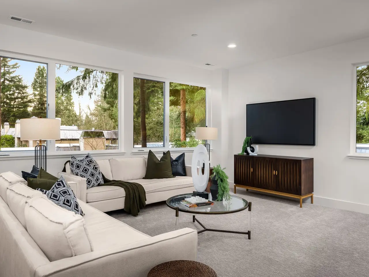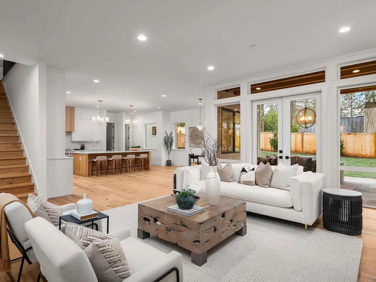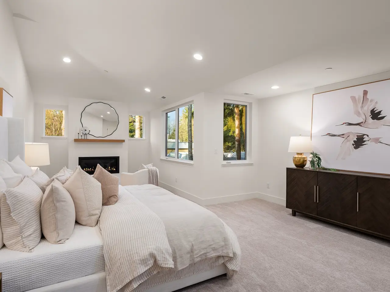 Modern luxury in the heart of West Bellevue! On a quiet lane just minutes from top-rated schools, fine dining and premier shopping, this nearly 5,000 square foot home showcases an exceptional two-floor layout. A stunning chandelier anchors the dining room, setting the tone for entertaining, while the Wolf/Sub-Zero chef's kitchen with easy access to the covered outdoor kitchen, makes this home perfect for both daily living and year-round hosting. An expansive primary suite with vaulted ceilings, cozy seating area with fireplace, spa-inspired bath & walk-in closet. Main floor autonomous multi-generational suite with private entrance adds flexibility to this thoughtful floor plan. Three-car garage, double D/W and W/D, wide-plank hickory floors, Visual Comfort lighting.
