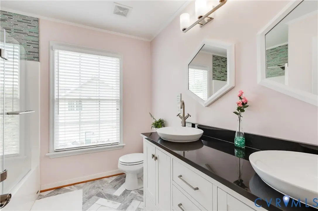 Energy Efficient Luxury in Hunton Estates! This stunning Glen Allen showstopper is packed with upgrades and thoughtful touches at every turn. Step inside the oversized foyer and take in the grand, open turned staircase. The first floor offers a beautiful study/library with built-in bookcases, and a sunroom addition drenched in natural light from walls of windows. The chef's kitchen is an entertainer's dream-granite countertops, stainless appliances, double ovens, built-in wine cooler, butler's pantry, and a custom walk-in pantry-flowing into a charming morning room with built-ins. Formal living and dining rooms plus a state-of-the-art Carrier variable smart system round out the first-floor perfection. Upstairs, all-new hardwood floors lead to a spacious open landing and a luxurious owner's suite with a sitting room, dual walk-in closets, and spa-worthy bath with double vanities and a garden tub. Three additional bedrooms and two hall baths-one with heated floors-offer space and comfort for everyone. The fully finished third floor is your private retreat, complete with a home theater, full bath, and walk-in storage. Outside, enjoy your over half-acre, park-like fenced backyard. The garage offers extensive built-in storage, and eco-friendly living is at your fingertips with paid-for solar panels and an EV charger. This is more than a home-it's a lifestyle. Come experience the beauty, comfort, and efficiency of Hunton Estates living!