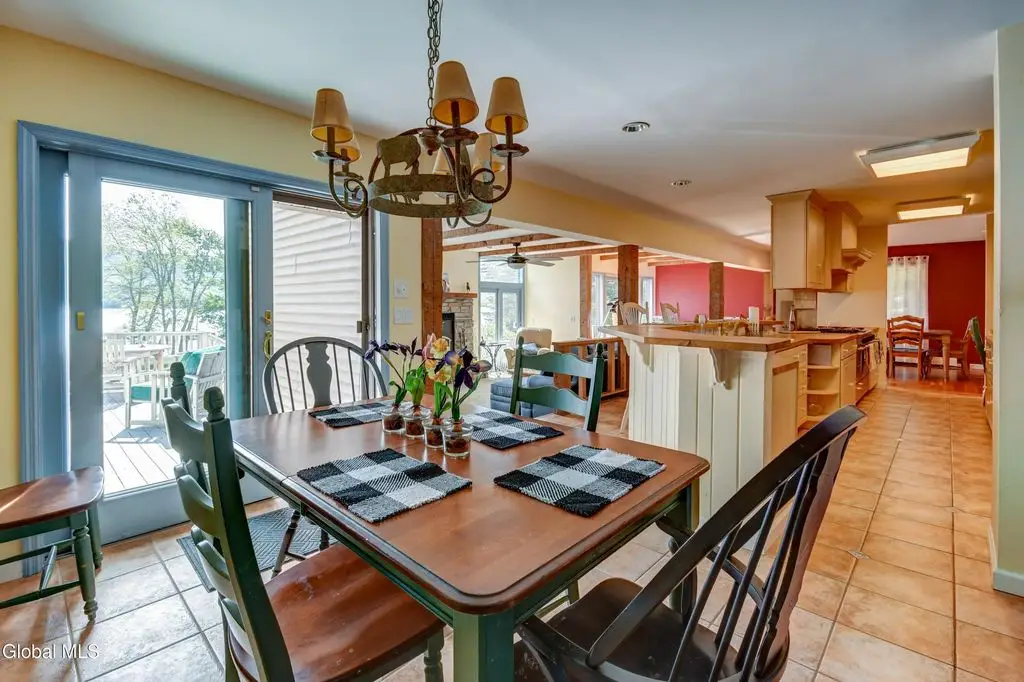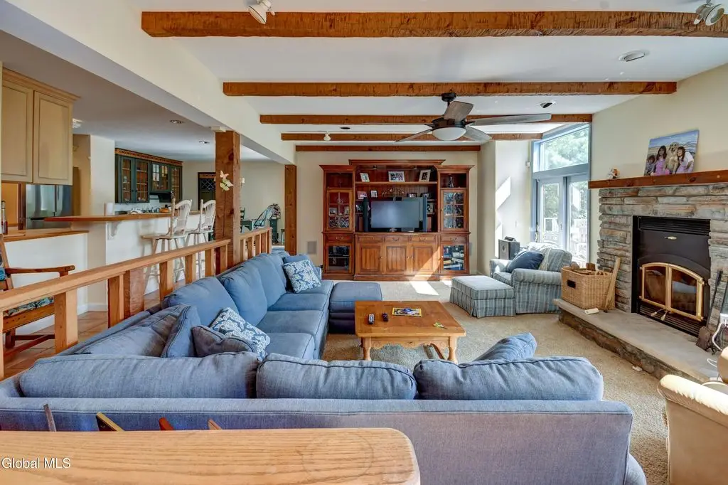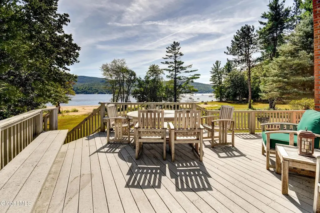 Spacious lakefront home on a level lot with 91' of sandy gently sloping beach on the Great Sacandaga, plus 2nd home for guests, woodshed and large generous barn! This lakefront retreat designed for entertaining offers an open floor plan with a great room at the center, 2-full baths and (3)-1/2 baths. The home boast abundant lake views & a wood burning fireplace. The oversized galley kitchen is fully appointed to meet all of your needs, including butcher block throughout, a huge walk-in pantry, 6-burner dual fuel double oven, gas range, with griddle; warming drawer, double door refrigerator freezer with ice maker, dishwasher, trash compactor & microwave. Most appliances are 5 years old or less. The breakfast nook also includes a wet bar with stand-alone ice maker and second dishwasher. Laundry closet is located in the mudroom off the attached one car garage with direct lake access, 1/2 bath and a wood burning stove. The master suite features lake views, vaulted ceilings with skylights, a large private bath, with jetted tub and steam shower, an oversized walk-in closet and flex room for private office or sitting area complete the space. Full basement with Bilko doors offers two finished rooms plus additional unfinished space for a workshop or general storage. In addition to the primary residence, the property also includes a second 3-bedroom, 2-bath home w/ woodburning fireplace and fully remodeled master bath. Great for guests or in-laws. Also on-site are a large, enclosed barn with carport and a second pole barn with 3 bays, all on a total of 3.7 acres. New roofs on both houses in the last 5 years. New furnace & ductwork in the smaller home. Primary residence is wired for a portable generator. Contents are negotiable.