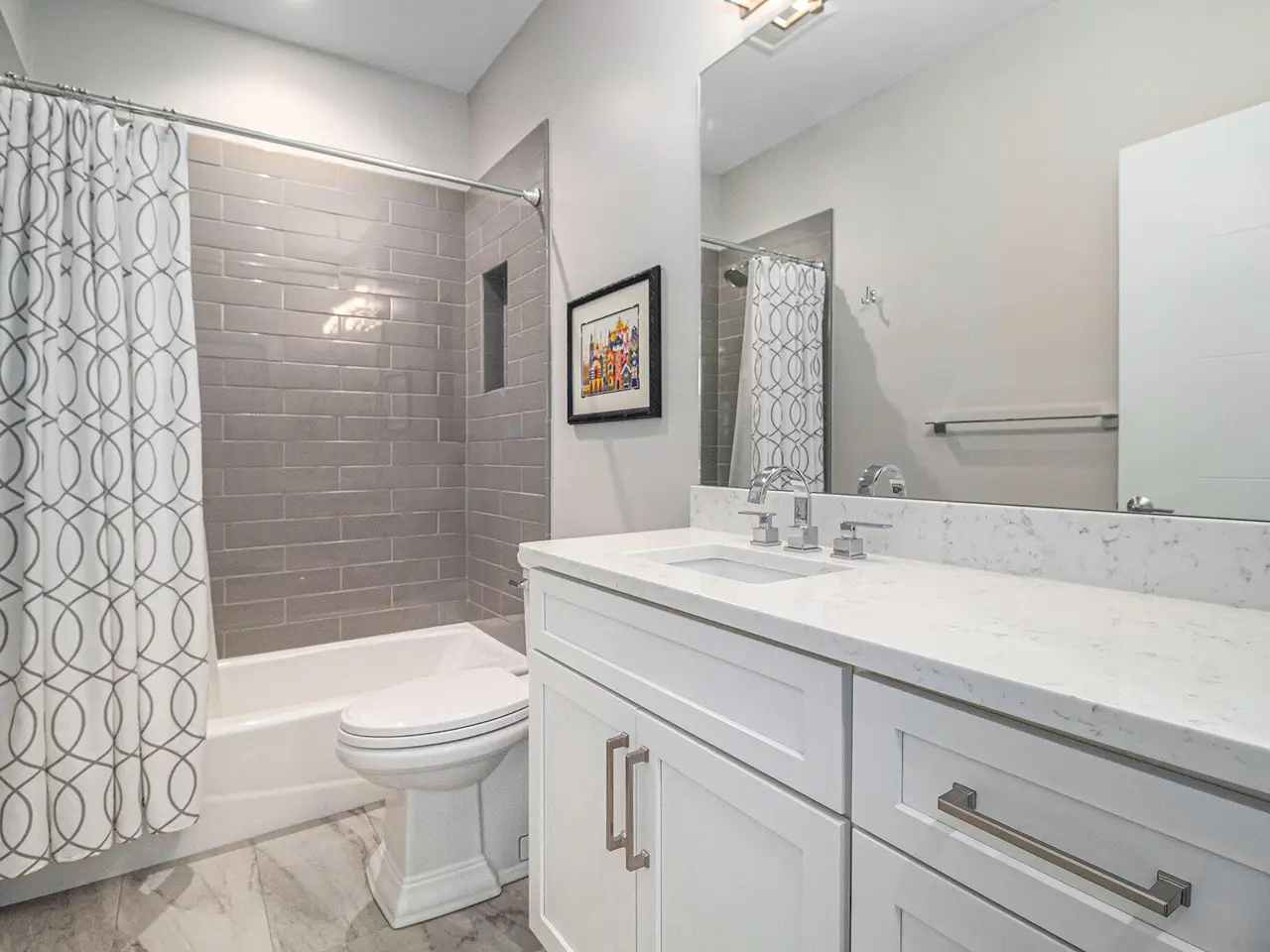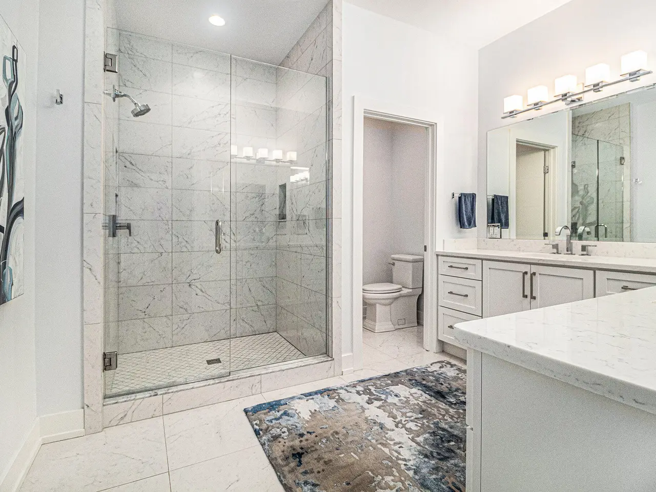Wolf and KitchenAid stainless appliances Vaulted ceiling in primary suite