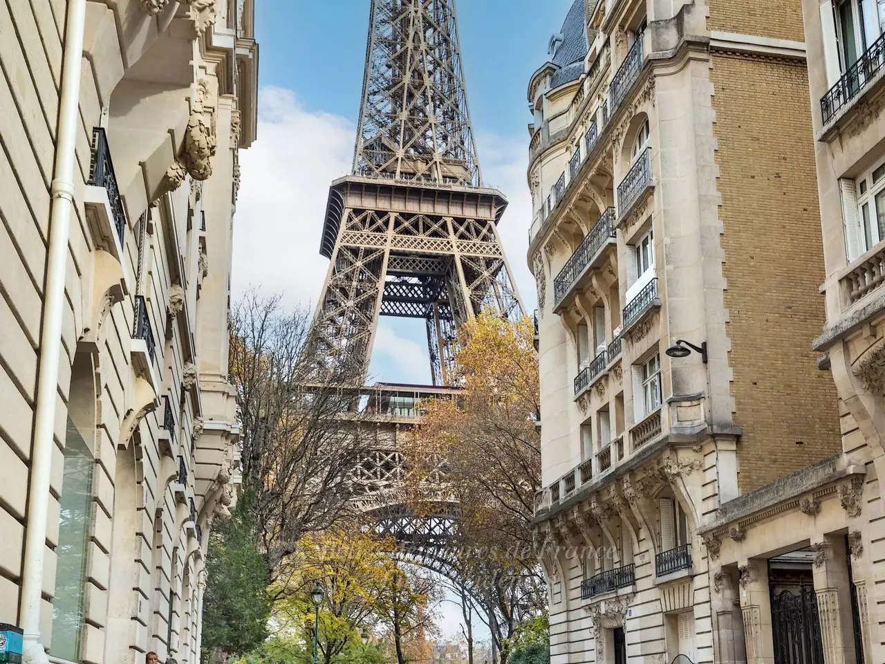 Picture-postcard view of Eiffel Tower