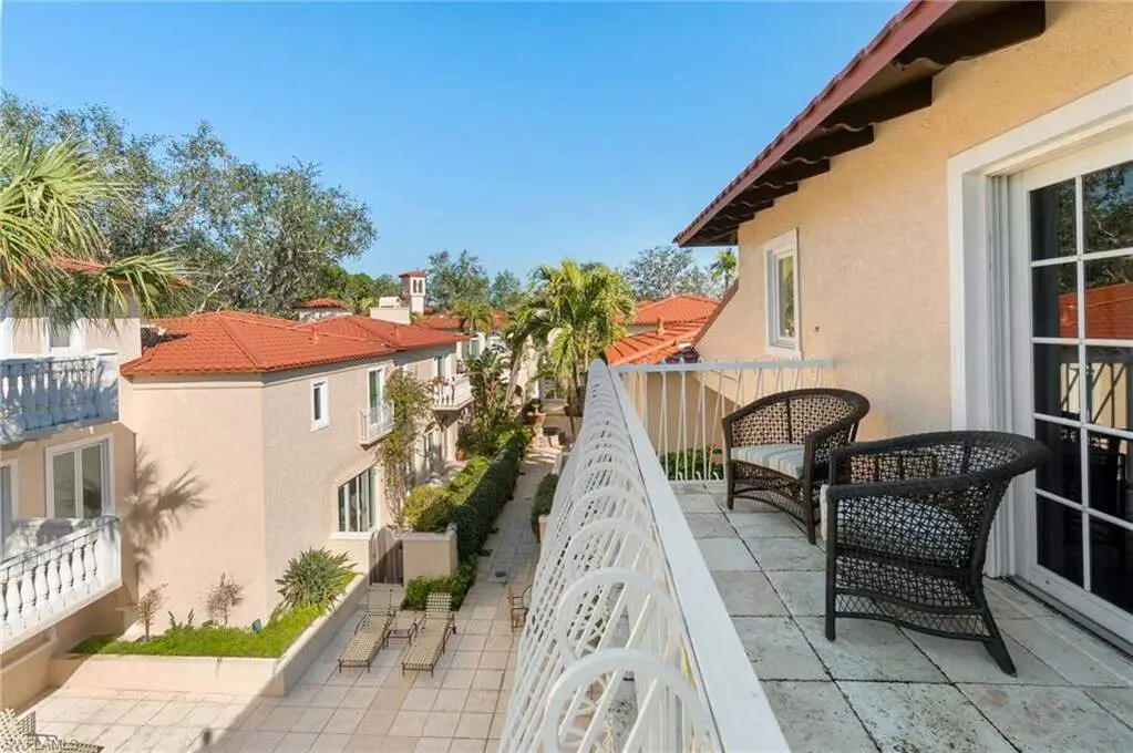 Nestled in one of the most prestigious addresses in the world, Shadowmoss is one of the most admired and sought after buildings in the heart of Old Naples. Perfectly positioned just steps from the white sands of the Gulf and the timeless charm of 5th Avenue South, this enchanting enclave evokes the romance of old-world Europe, where each day begins with a stroll to your favorite cafe and ends with sunset walks along palm-lined streets. Surrounded by world-class dining, boutique shopping, and cultural experiences, this is truly a walk-everywhere lifestyle. With only nine exclusive residences in the complex, Unit #2B is the perfect pied-a-terre. Furnished and move-in ready, this 2-bedroom, 3-bath home is bathed in natural light and brimming with character. Authentic Mexican tiles, arched stained-glass French doors, and a freestanding spiral staircase reflect the home's handcrafted charm and refined craftsmanship. Custom finishes, oversized closets, and four sun-drenched balconies provide comfort and sophistication at every turn. This residence also comes with one garage space along with two dedicated parking spots. Step outside to the courtyard and beautiful pool area, where moss-covered fountains and winding stone pathways whisper of Europe - creating a serene, storybook setting in the vibrant heart of Downtown Naples. Shadowmoss is not just a home - it's a rare blend of historic beauty and modern convenience, designed for those who appreciate the art of living well.