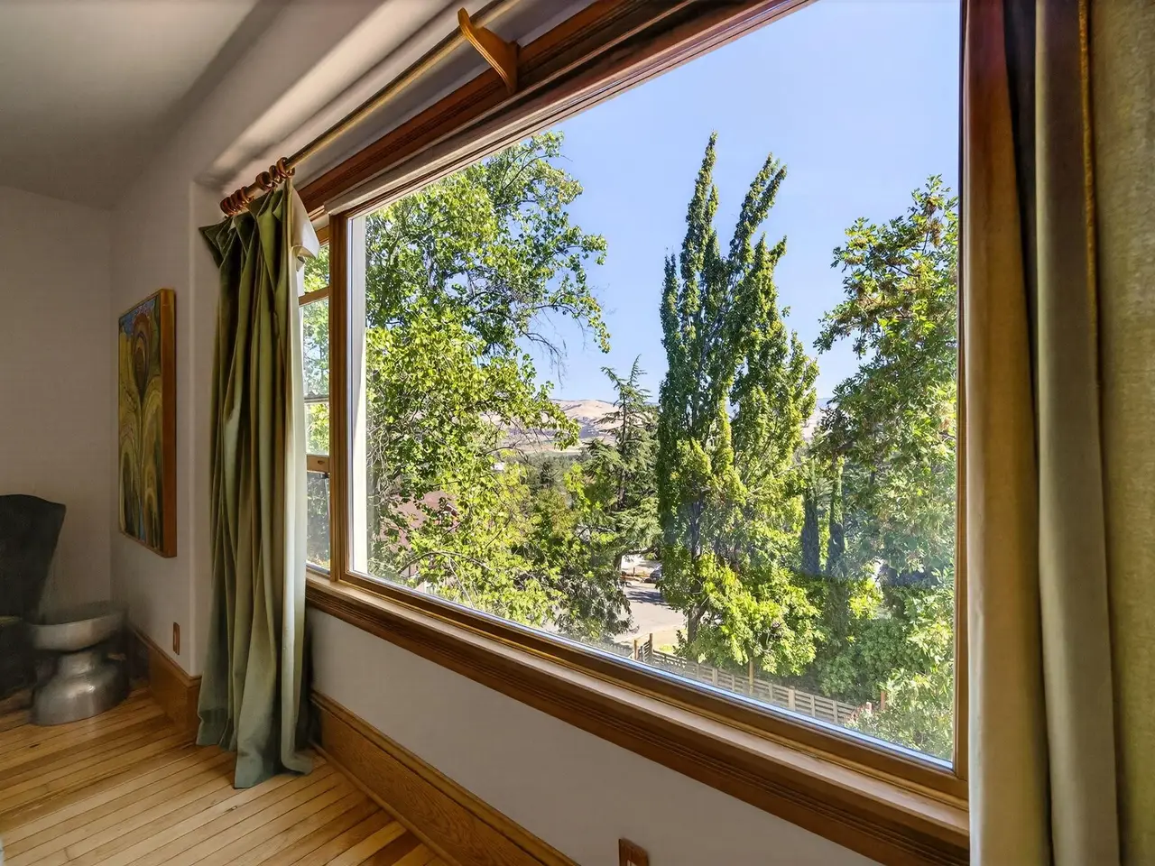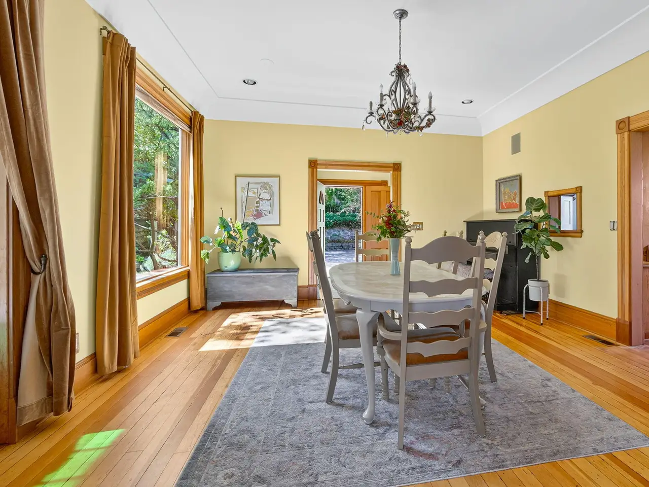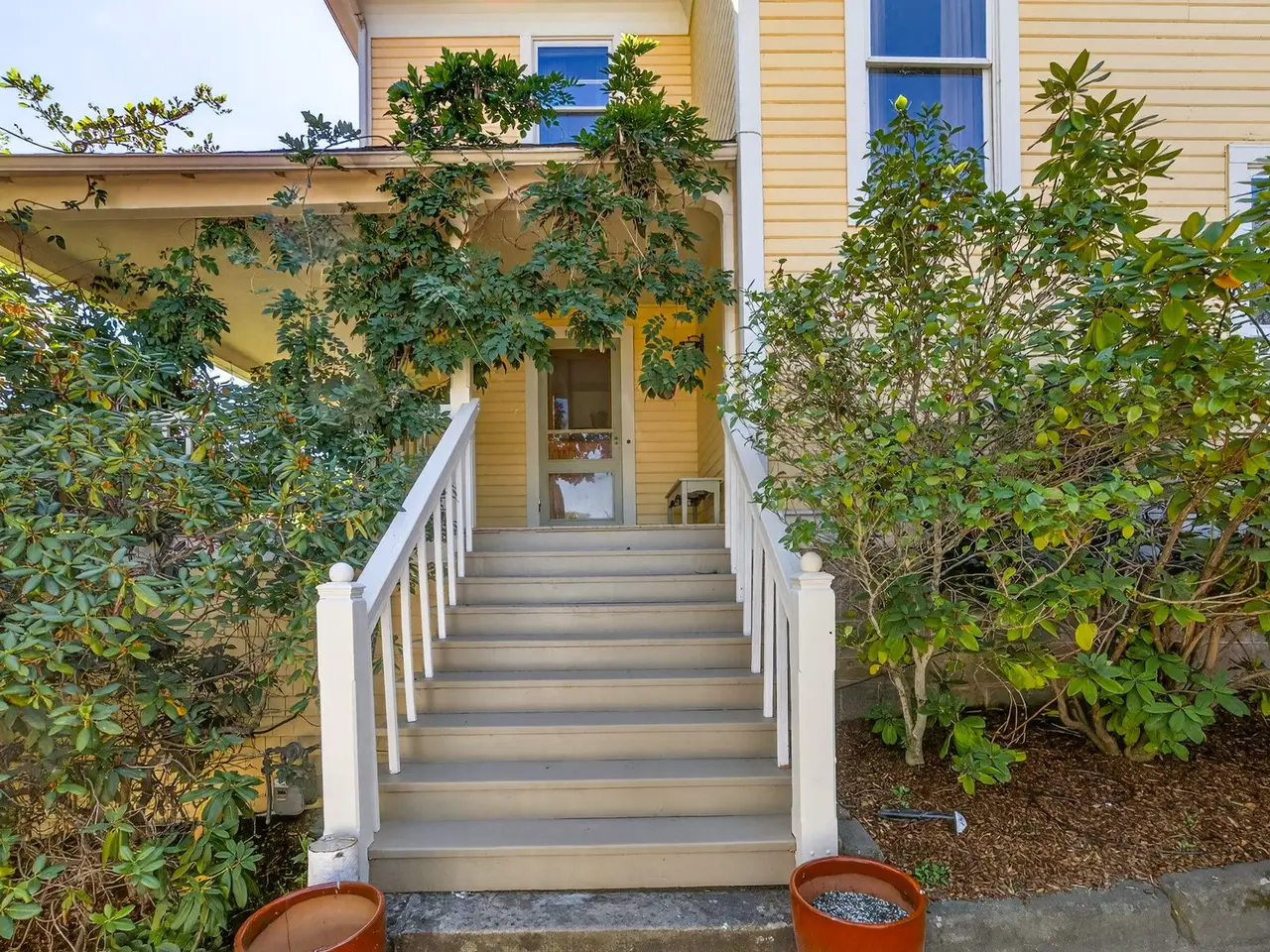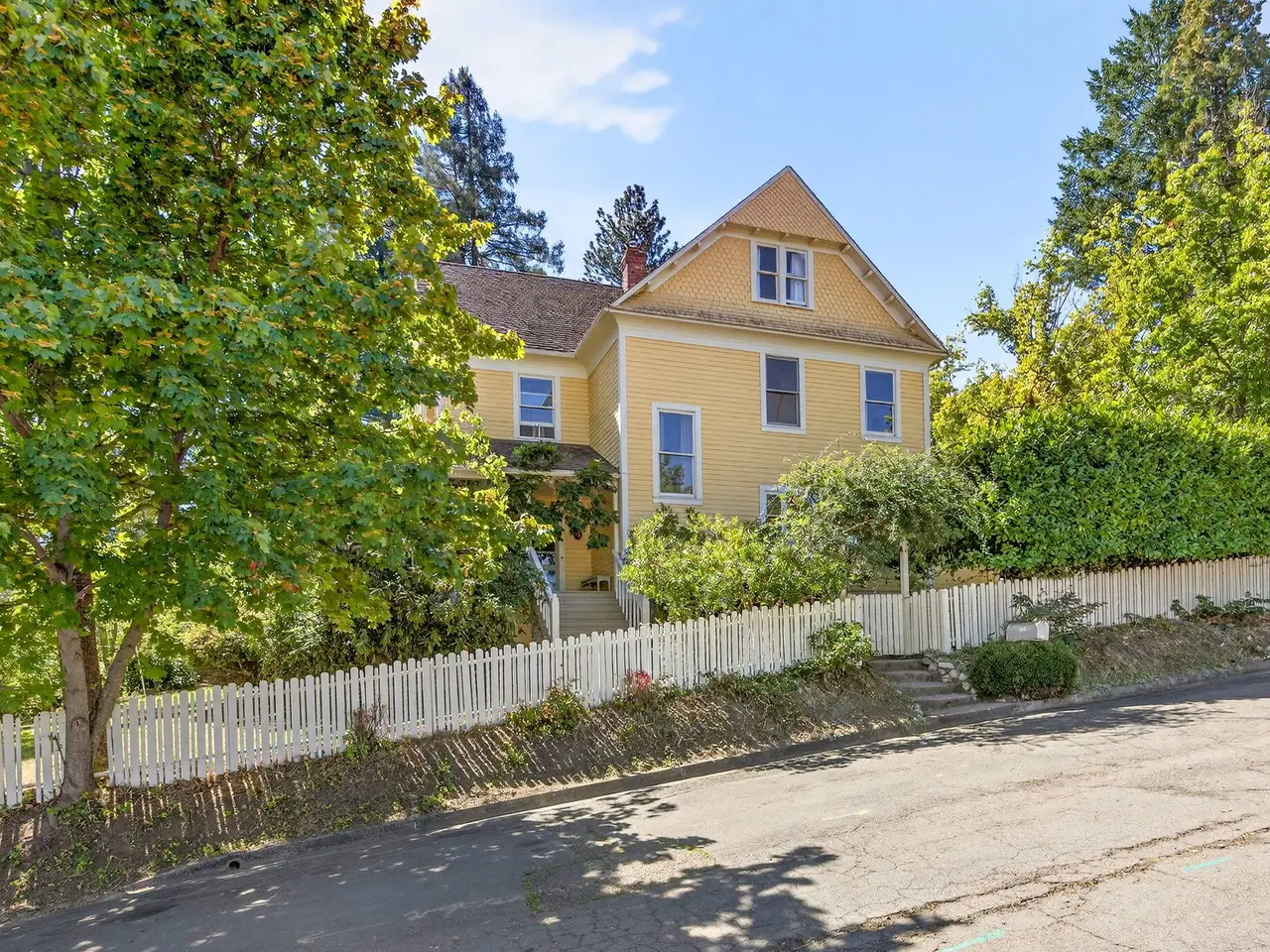 A true expression of Ashland's early days, this iconic 1874 Victorian is the original home from Max Pracht's Peachblow Paradise orchard that helped put Ashland on the map with its world-class peaches. On the market for the first time in 30+ years, it sits on a private .61-acre lot surrounded by old-growth sequoia, wisteria, and cypress trees. Lovingly restored in the 1990s, the home blends modern comforts with details that echo those early days, vaulted ceilings, fir hardwood floors, carved banisters, crown molding, and period fixtures. Double-pane windows fill the home with light. The chef's kitchen features granite counters, luxury appliances, and built-ins, flowing into the spacious living and dining rooms. Special touches include a reading nook, large window seat, hallway library, and finished attic. Outside is a wrap-around porch, pond with waterfall, raised beds, and generous views of Ashland and Grizzly Peak. A rare opportunity for multigenerational living in a prime location!