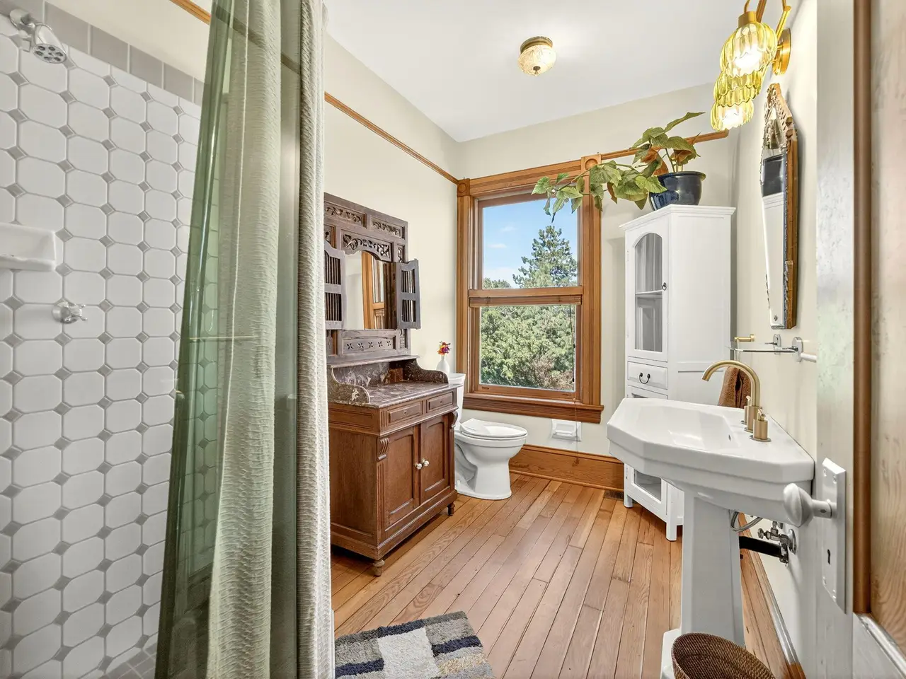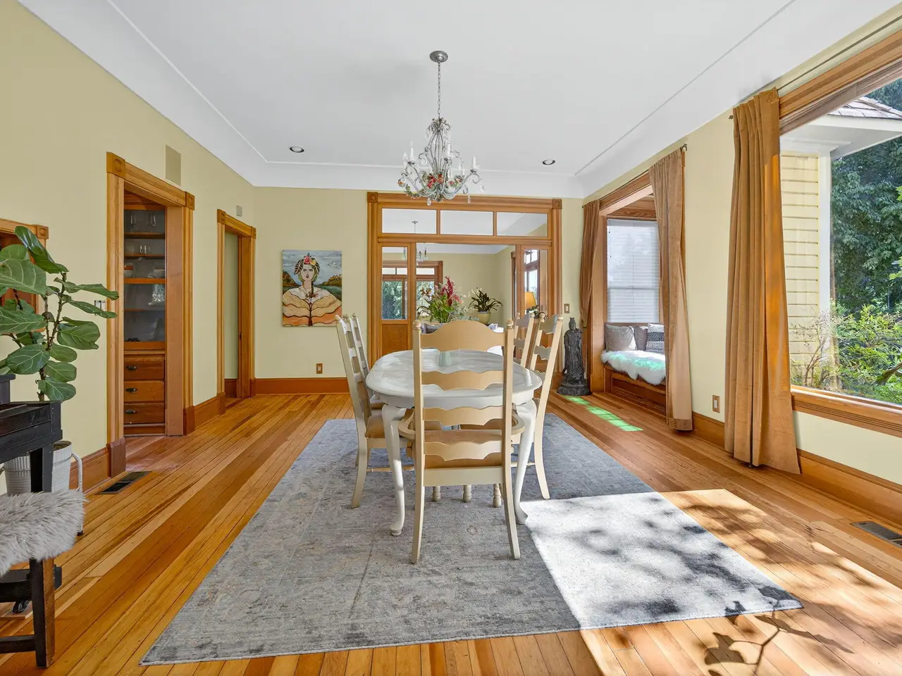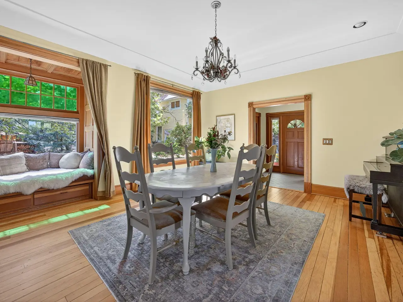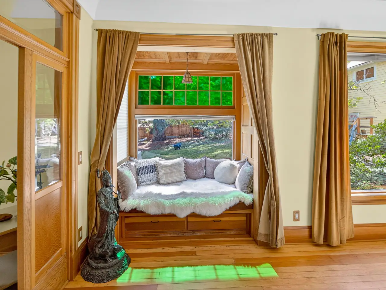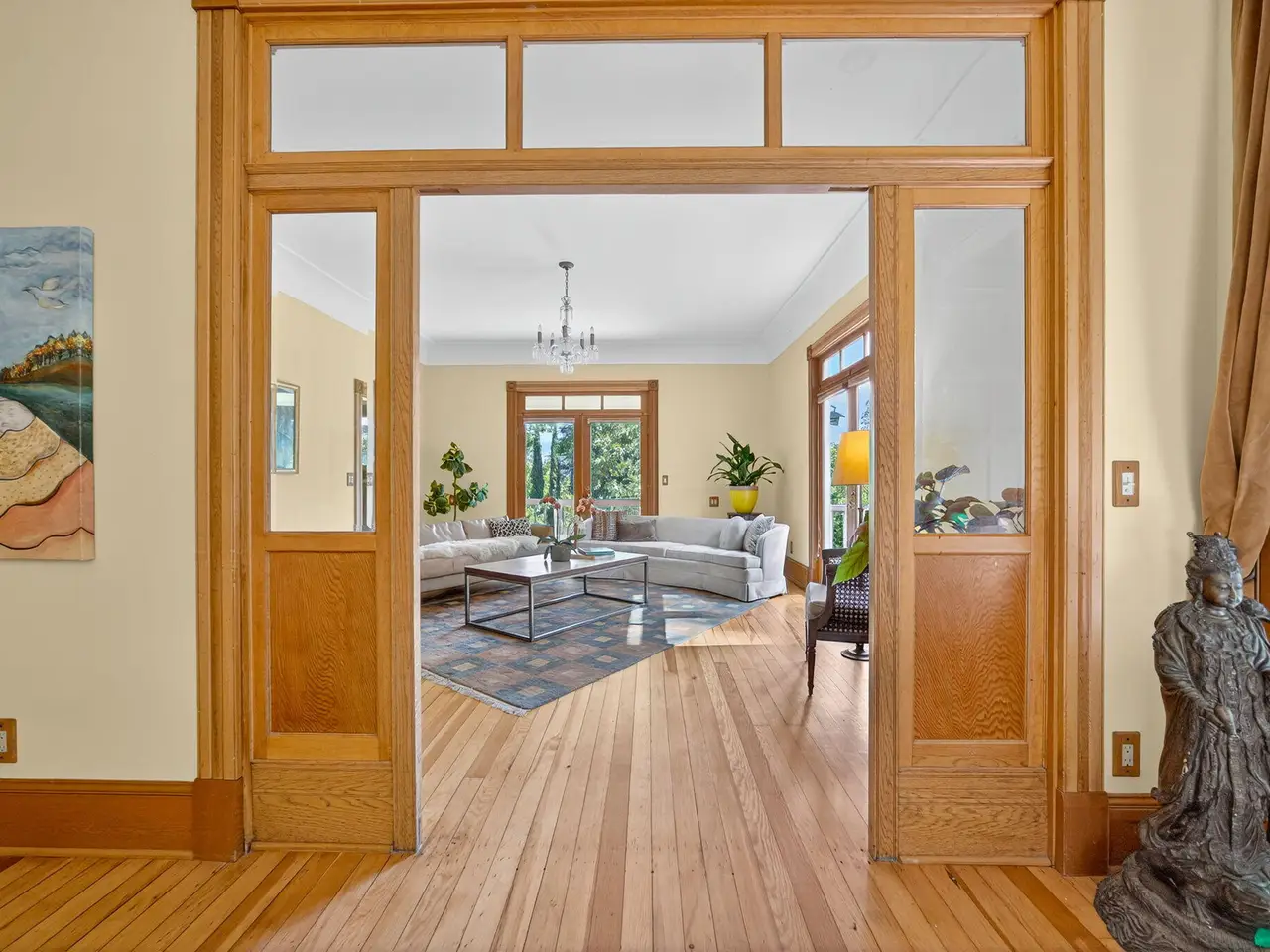 A true expression of Ashland's early days, this iconic 1874 Victorian is the original home from Max Pracht's Peachblow Paradise orchard that helped put Ashland on the map with its world-class peaches. On the market for the first time in 30+ years, it sits on a private .61-acre lot surrounded by old-growth sequoia, wisteria, and cypress trees. Lovingly restored in the 1990s, the home blends modern comforts with details that echo those early days, vaulted ceilings, fir hardwood floors, carved banisters, crown molding, and period fixtures. Double-pane windows fill the home with light. The chef's kitchen features granite counters, luxury appliances, and built-ins, flowing into the spacious living and dining rooms. Special touches include a reading nook, large window seat, hallway library, and finished attic. Outside is a wrap-around porch, pond with waterfall, raised beds, and generous views of Ashland and Grizzly Peak. A rare opportunity for multigenerational living in a prime location!