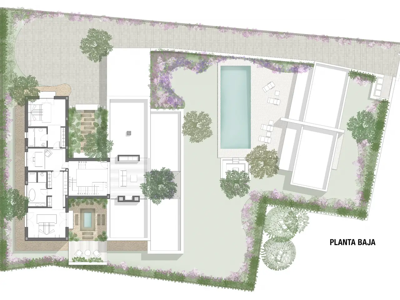 Located in Sotogrande Alto, this impressive villa project offers a perfect balance between luxury and comfort. The property boasts a total built area of 761.58m² on a spacious plot of 1.545 m². This large villa stands out for its natural surroundings and its proximity to important amenities such as beaches, golf courses, the Sotogrande International School, the marina, and various local shops and businesses. The villa features four bedrooms and seven bathrooms, where every detail has been carefully designed to offer maximum comfort. Among the most notable features are an aerothermal system, air conditioning, and central heating. The bathrooms have underfloor heating to ensure a warm and cozy environment. The equipped kitchen and a large central fireplace elegantly divide the living and dining areas, adding a touch of sophistication and warmth to the interior of the home. Outside, you can enjoy a large private garden surrounded by vegetation and a saltwater pool with pre-installation for heating. The villa also has covered and uncovered terraces, ideal for enjoying the natural surroundings and mountain views. An automatic irrigation system ensures the garden is perfectly maintained year-round. Additionally, there is a gym with views of the pool, which can be adapted as a guest apartment since it includes a bathroom. It is worth noting that all rooms have en-suite bathrooms, providing extra comfort and privacy. The property includes a covered parking area with capacity for two vehicles. The home features porcelain floors and large glass doors that allow abundant natural light to enter. This exclusive villa is ideal for those seeking a high-level residence in a quiet environment but close to essential and leisure services. If you would like more information, please do not hesitate to contact us for details and advice on this unique project in Sotogrande.