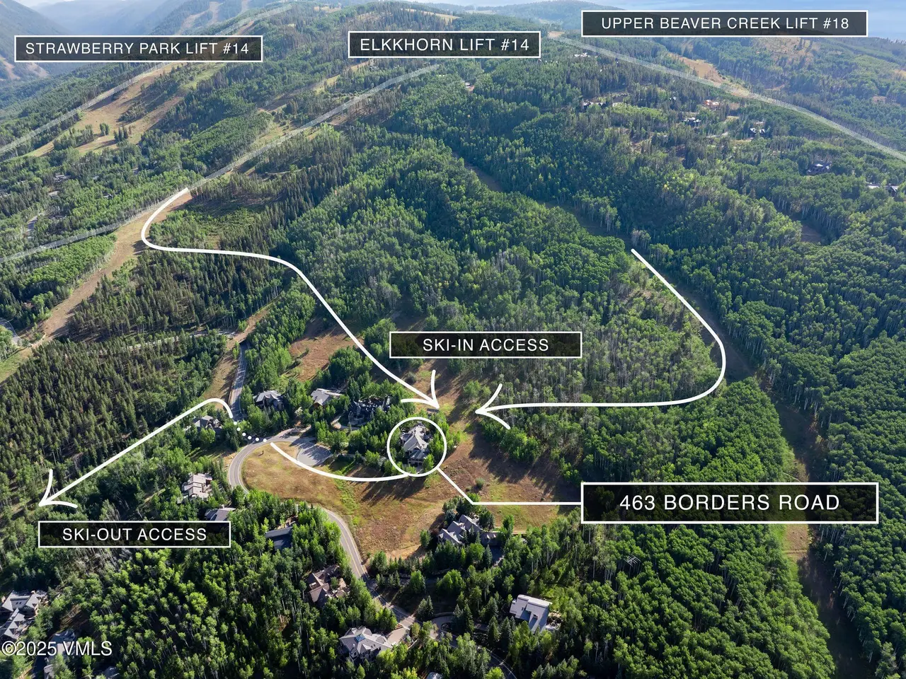 A Beaver Creek Masterpiece, Chateau de la Montagne stands as the pinnacle of elegance, class, and privacy within the gates of Beaver Creek. Reputed to be the largest home with ski access in the resort, 463 Borders is an expansive estate offering seven ensuite bedrooms and fourteen baths across multiple levels accessed by elevator. A grand entry stairway welcomes visitors to an elevated level of comfort not experienced elsewhere in Beaver Creek. This 15,900-square-foot slopeside masterpiece-on a peaceful 1.56-acre parcel at the end of a quiet cul-de-sac-defines alpine luxury and timeless mountain architecture. A commanding driveway, flanked by open space and few neighbors, leads to the Chateau. Guests are greeted by a soaring three-story water feature before entering a great room anchored by a dramatic double-sided fireplace. Walls of glass capture sweeping views of the Centennial ski slopes and surrounding peaks. The primary suite is an indulgent sanctuary, with dual spa-inspired baths, steam showers, fireplace, wet bar, washer and dryer, and a balcony overlooking the waterfall and ski trails. On the main level, a slopeside terrace offers direct ski access, complete with an outdoor fireplace lounge for apres-ski gatherings. Outside the recreation room, a hot tub sits beside the cascading water feature framed by alpine vistas. Other highlights include a chef's kitchen, office, theater, 1,100+ bottle wine room, gym, massage room, steam room, three-car garage with EV hookups, Lutron lighting, advanced security, and nine fireplaces. Air conditioning ensures year-round comfort. Conveying with the most coveted Beaver Creek Club Charter Membership-the highest tier available-this legacy estate bypasses the current 4.5-year waitlist. Chateau de la Montagne is more than a residence-it is a timeless architectural statement redefining Beaver Creek luxury.