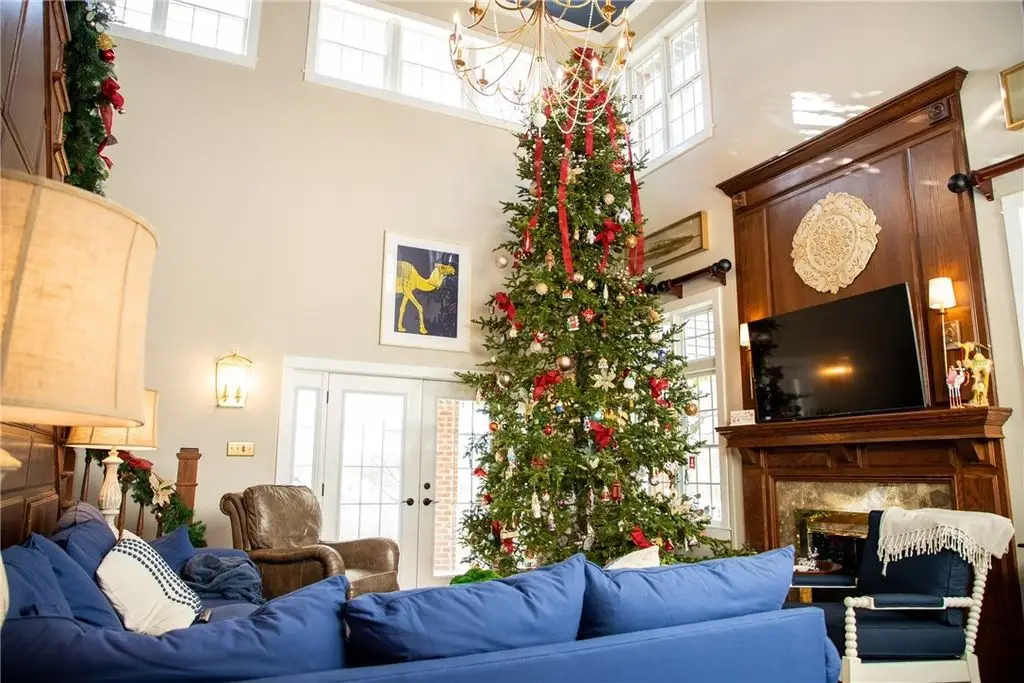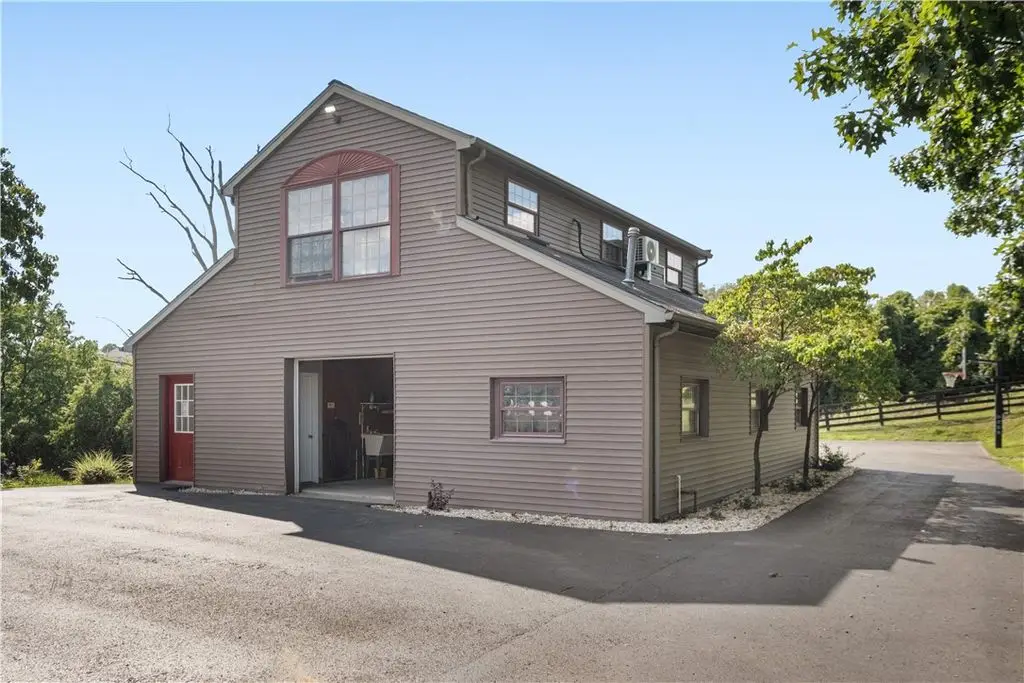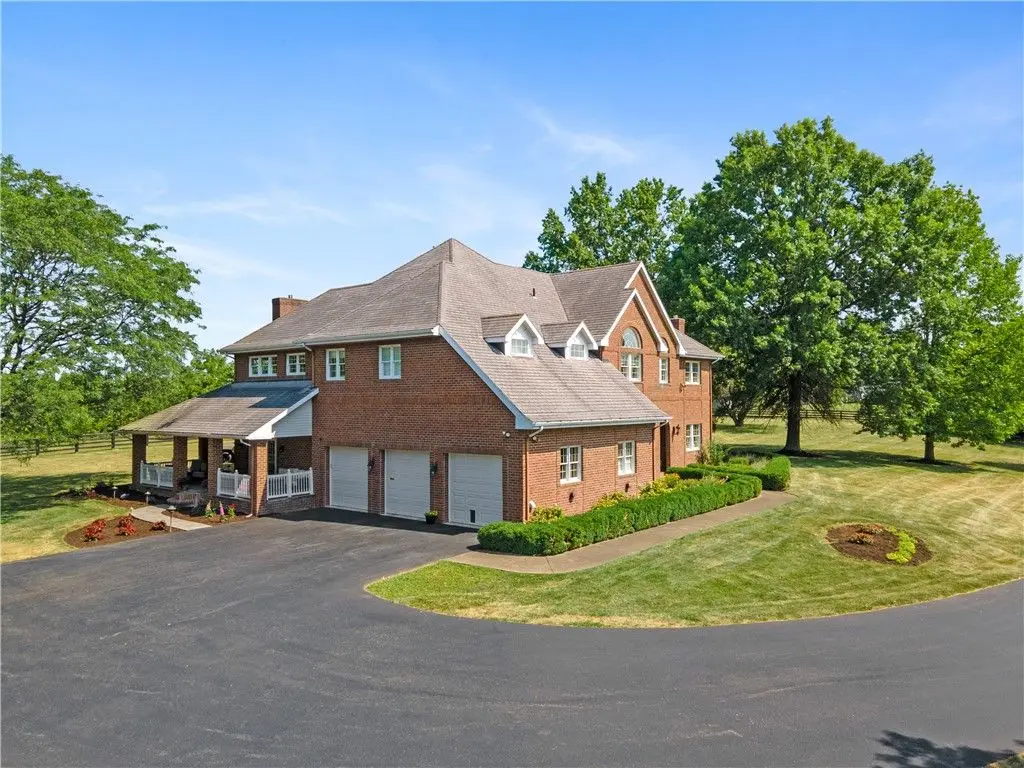 Located on a scenic hill in Rostraver Township, this magnificent 21.1-acre estate boasts panoramic views of lush woodlands and nearby Vinoski Winery. It combines luxury with privacy. A grand two-story foyer leads to an elegantly functional interior, formal living and dining rooms, a spacious Great room with a gourmet kitchen. It features a large island and premium appliances. The estate includes covered and open patios for indoor-outdoor enjoyment. It houses 5 bedrooms, including a beautiful primary suite, +4 full and 2 half baths spread over 5700+ square feet. Additional amenities are a massive basement game room, 6 garage spaces. There's potential for a large pool. Over the hill sits a barn with 4 horse stalls, w an additional bedroom or large office space. The well-maintained grounds provide ample recreation space. Situated in Rostraver Township, part of the Belle Vernon School District, the location offers suburban comforts, parks, golf courses and highway access. A huge entertaining home.