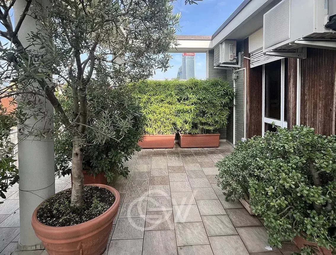 gv1352 - BARE OWNERSHIP Via Mosè Bianchi - A few steps from Citylife BARE OWNERSHIP with panoramoc terraces and large bright spaces. This extraordinary apartment of 300sqm of commercial surface is proposed for sale on BARE OWNERSHIP, is developed onto two levels, the 6th and 7th floor of a stately building in one of the most wanted areas of Milan. The 6th floor of 168sqm is composed of a large entrance that leads immediately to the bright living room overlooking the wide panoramic and angular 124sqm terrace with a pleasant view of Milan, enriched by a bright 20sqm porch. An hallway leads to the habitable kitchen and the studio bedroom. In front of it there is a large windowed bathroom. The night area is located on the other side of the house and has two bedrooms, one of which is really big, both served by a second windowed bathroom. The internal staircase next to the kitchen leads on the 7th attic floor of 85sqm, also with its independent entrance that includes three more rooms illuminated by skylights and a windowed bathroom. Completes the property a cellar on the basement floor. The apartment has centralized heating, double lifts and concierge service. It is possible to buy a single parking spot nearby Via Carcano for € 50.000. Located between Monterosa and Citylife, the location combines elegance, modernity and services. The proximity to Citylife offers access to one of the most innovative neighbourhoods of Milan, full of luxury boutiques, restaurants and green spaces. The Monterosa area, instead, gives tranquillity and a residential environment. The area is perfectly served by public transport. The subway lines M1 (Amendola and Lotto) and M5 (Lotto and San Siro Stadium) ensure rapid links to the city center and other strategic areas, besides of different buses and trams nearby, making the apartment perfect for those who desire to move without the car. Class G – ipe 246,72. € 1.650.000 - € 14.000,00 annual condo fees. The choice of this property contributes to support the mission of Theodora onlus. Photos, texts, floor plans, etc., are purely for illustrative purposes and do not constitute documents with contractual value and presupposition. Giorgio Viganò Real Estate - 027636151 - www.giorgiovigano.com