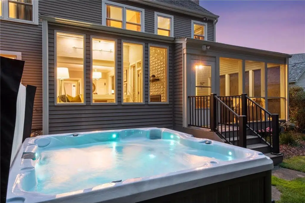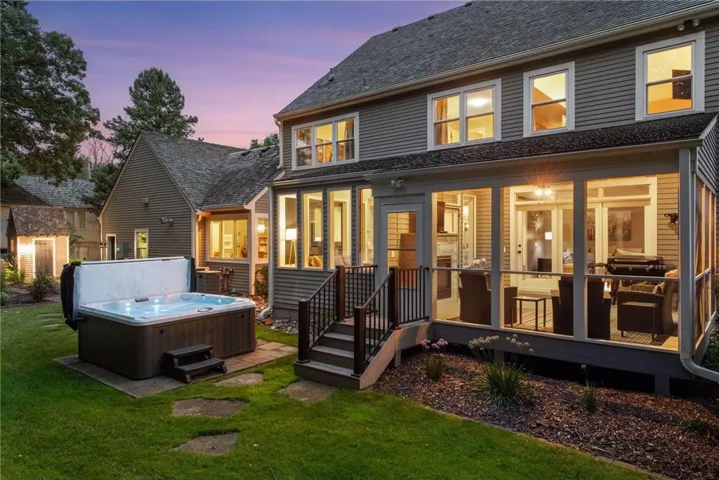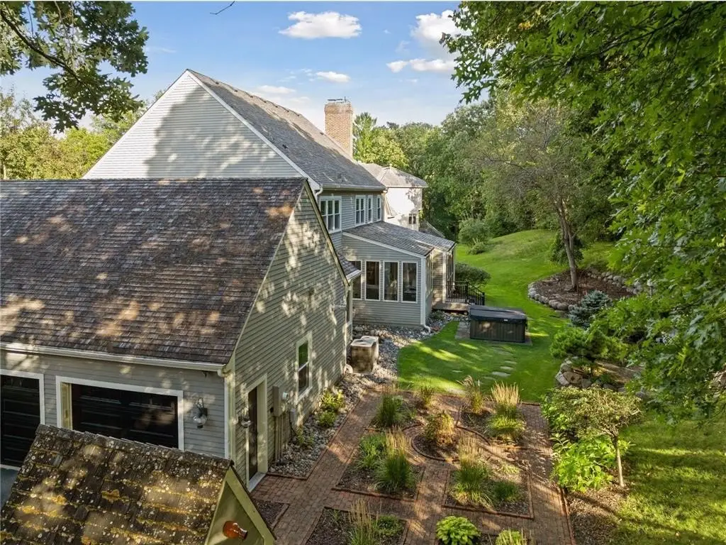 Welcome to this exceptional custom-built New England style masterpiece, tucked within the coveted Olympic Hills Golf Course community. Perfectly situated on a premier lot, this home offers breathtaking panoramic views of Purgatory Creek and an unparalleled blend of elegance, comfort, and timeless charm. From the moment you step inside, you’ll be captivated by the architectural detail, sun-drenched spaces, and warm yet sophisticated design. The gourmet chef's kitchen showcases high-end appliances, including a six-burner Viking cooktop, dual Thermador oven, and a Sub-Zero refrigerator/freezer, offering professional-grade performance with refined, elegant design. Custom white enameled cabinetry, and a large center island, perfect for gatherings and culinary creativity. Adjacent to the gourmet kitchen, this space features a thoughtfully designed butler’s pantry and a planning center—perfect for entertaining, organizing, and everyday convenience. Step inside and feel the inviting coziness and charm throughout this lovely home. Features include: ALL NEW WINDOWS throughout (July 2025 w/ a lifetime warranty). Formal living room highlighted by custom built-ins and a beautifully detailed decorative ceiling, creating an elegant space for both relaxation and entertaining. Spacious main floor family room with rich millwork and custom built-ins accenting the classic brick wood-burning fireplace, offering warmth and character to the heart of the home. Formal dining room boasts gleaming hardwood floors and striking reclaimed wooden beams on the ceiling, combining timeless elegance with a warm, inviting atmosphere—perfect for entertaining and special gatherings. A bright and inviting sunroom, bathed in natural light from an array of windows, featuring a custom planning desk and a decorative see-through gas fireplace, bringing both warmth and charm to this welcoming space. The room you’ll never want to leave, a beautifully appointed 3-season porch featuring low-maintenance decking, a decorative see-through gas fireplace, stylish shiplap on walls and ceiling, and framed views of nature, creating the perfect harmony of comfort, charm, and tranquility. Spacious mudroom featuring a custom-built coat center complete with bench seating—designed for both organization and everyday functionality. Generous main-floor home office boasting custom-built cabinetry and serene views of the surrounding woods, offering a peaceful workspace immersed in nature. The main floor features a generous laundry room complete with custom cabinetry, a utility sink, and a dedicated folding area... The upper level showcases a spa-inspired primary ensuite, complete with a separate soaking tub and walk-in shower, dual-sink vanity, spacious walk-in closet, trayed ceiling, and a classic decorative brick W/B fireplace, elegance and comfort seamlessly combined. The upper level is completed with three additional generously sized bedrooms, a full bathroom featuring a dual-sink vanity, and a loft area equipped with a custom built-in study desk. The lower level features a spacious media room and game area, a wet bar, a fifth bedroom with an adjoining 3/4 bath, and abundant storage, thoughtfully crafted to combine entertainment, comfort, and everyday practicality. Updates include: NEW CARPET throughout the home(June 2025), 3 NEW garage doors(Dec 2024), NEW washer/dryer(2022), NEW dishwasher(2021), additional Features: oversized heated/insulated garage, garden shed, zoned heat/air, garden shed, outdoor jacuzzi/hot tub, Radon mitigation system, lawn irrigation. Located in one of the Twin Cities’ most sought-after communities, this residence combines classic architecture with modern luxury, All of this, just minutes from award-winning schools, abundant shopping, fine dining, and countless parks, trails, and recreational opportunities, everything you need right at your doorstep... Truly a standout property!