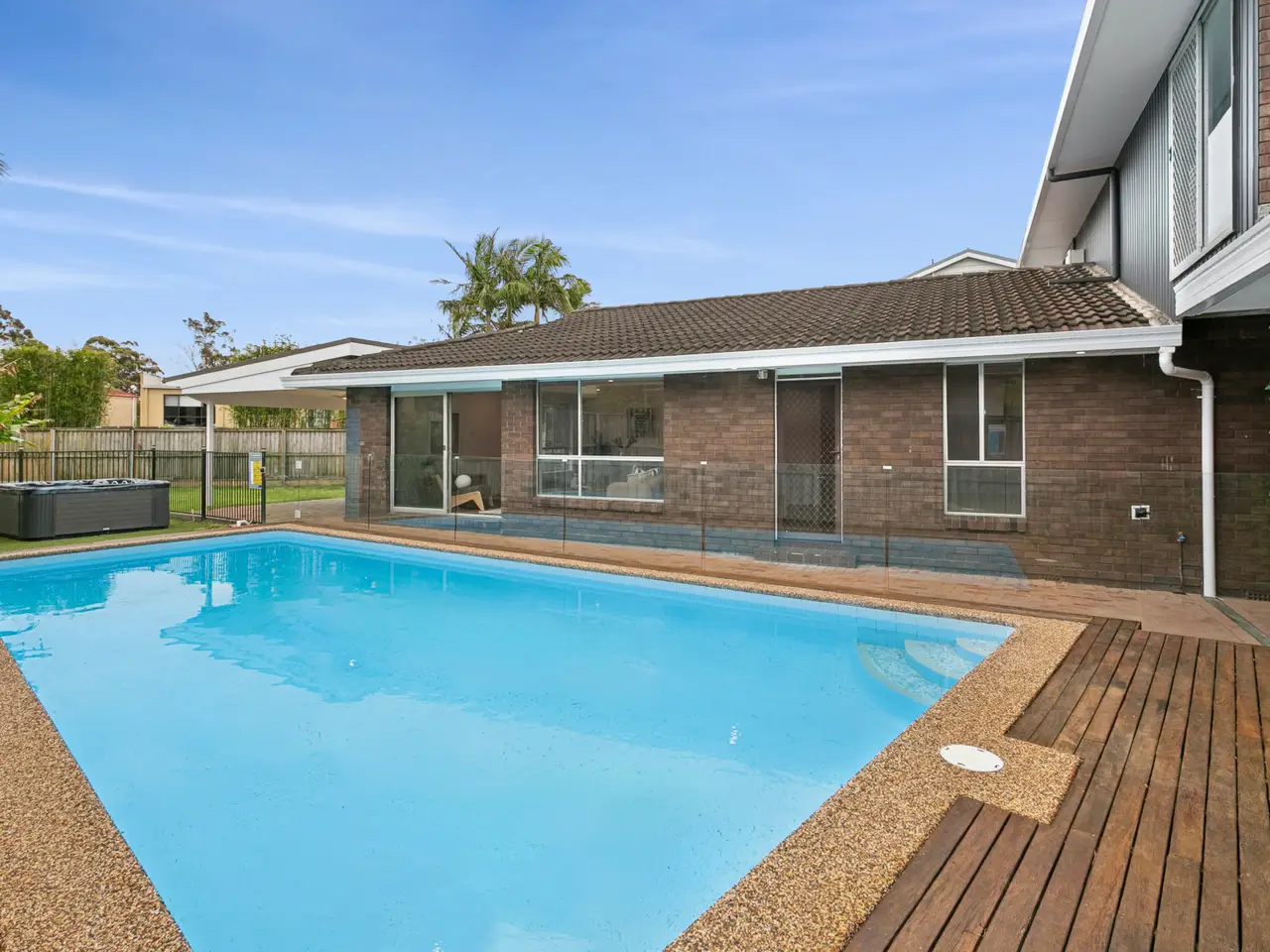 Moments from Killarney Heights High and Primary schools, this beautifully updated home combines family functionality with effortless style across a generous 793 sqm parcel. The dual-level layout provides a perfect balance of space, light, and privacy, with multiple living areas and a seamless connection to outdoor entertaining.The heart of the home features an open-plan kitchen, dining, and living zone spilling out to a sun-soaked terrace, swimming pool, and spa - ideal for summer gatherings and relaxed family life. Upstairs, the private master retreat enjoys its own lounge, study nook, and ensuite, creating a peaceful parents' haven. Downstairs, four additional bedrooms offer flexibility for growing families or guests, all serviced by a stylish renovated bathroom. With a double lock-up garage, ducted air conditioning, and beautifully finished interiors, this is a home that feels immediately welcoming. - Upper-level master retreat with walk-in robe, ensuite, and adjoining lounge - Open-plan living/dining area framed by large windows and timber floors - Renovated kitchen with stone benchtops, quality appliances, breakfast bar - Sparkling inground pool and spa with decking and glass fencing - Covered outdoor terrace for year-round entertaining - Double lock-up garage with internal access - Level lawn ideal for children and pets, plus landscaped gardens - Walk to Killarney Heights schools, shops, buses, and bushwalking tracks