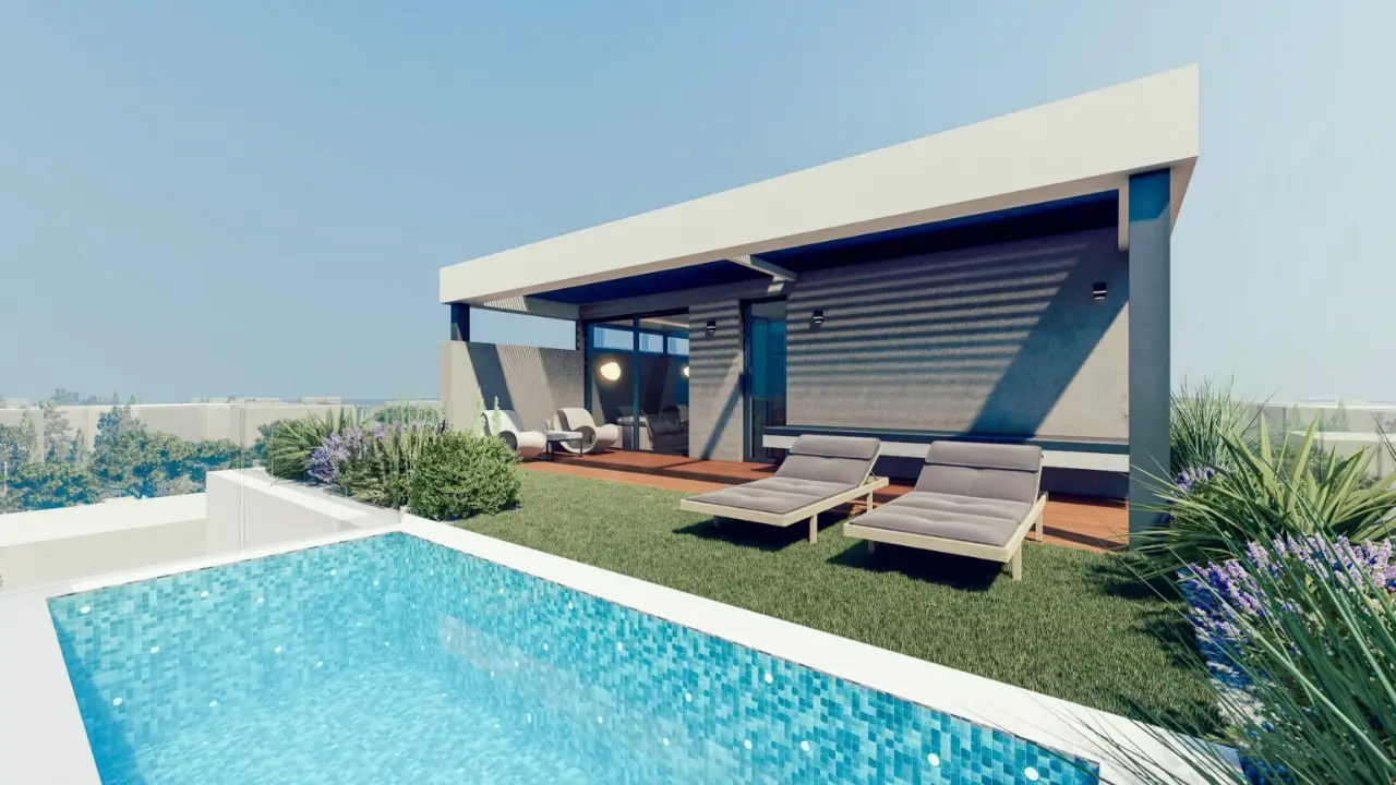 The fourth & fifth floor maisonette/penthouse is a state-of-the-art two-story residence with a vast and unobstructed view of the sea. Its characteristic feature is the garden at the level of the fifth floor with the swimming pool. The view of the Attic sky, the greenery that surrounds the property and the sea through the open private garden completes the design vision that inspired the construction of the building. The separation between the home and the natural environment is removed. Residents gain full access to nature which aesthetically defines the construction of the maisonette. To achieve this goal, all common areas on the fourth floor level are placed facing the street in order to ensure a view to the sea. The residence has a large master bedroom, two additional bedrooms with bathroom, while on the fifth floor level there is an additional room with bathroom & cloakroom which has access to the top floor garden. Features: • Area 141 square meters • Three baths • Two Parking Spaces • Garden on the roof 140 square meters • Three bedrooms • 32 square meter attics • 10 square meter swimming pool • Additional benefits: • Minimum energy consumption (A++) • Thermal facade 12 cm. • Floor heating • Heat pump • Cooling with VRV air conditioning system • Bioethanol fireplace • Storage in the basement • Parking space with the possibility of charging an electric car