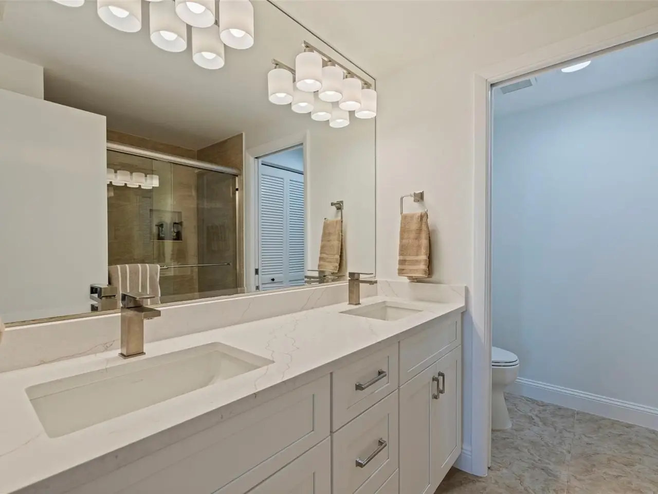 COMPLETELY UPDATED COASTAL CHIC 3 BEDROOM, 2.5 BATH DIRECT GULF FRONT CONDO!! Designer furnishings included & compliment the high end finishes in this elegant condo. Feel like you are on a cruise ship when you walk in with sweeping water views from every room of this 15th floor unit. See all the way to Honey Moon Island & beyond. Wrap around balconies off Liv/Din rooms and private balcony off Master Bedroom & Guestroom. Breathtaking Sunsets everyday! Porcelain tile floors throughout make for easy maintenance. Updated molding & baseboards. Kitchen completely opened up with painted wood cabinets, granite tops & subway tile backsplash. Cabinetry extends into dining area for great storage & serving space. Stainless steel appliances include an LG double oven range, microwave & refrigerator. Bosch dishwasher. A Gourmets delight!! All baths updated with custom vanities, granite & quartz tops. Guest bath has large walk-in shower & dual sink vanity with private water closet. Primary bath is like being at a spa. Huge walk-in shower with multiple shower heads & shower bench. Dual sink vanity with storage towers on each end. Huge walk-in closet with organizers. Large master bedroom with fantastic views. Sit in your master bed, drinking coffee while reading the paper, enjoying the gorgeous water views & watching the dolphin at play! Updated lighting throughout condo! Remote light filtering sun shades at all windows & sliders. Private Foyer with Semi-Private Elevator. PRIVATE GARAGE#28 within the parking garage. HURRICANE SHUTTERS are paid & will be installed in next couple weeks. The Ultimar is a world class condo complex on Sand Key of famous Clearwater Beach. Miles of pure white sand. Lush tropical landscaped grounds are expertly maintained. 24 hr guard gated. True Resort Style complex has 3 pools w/spas, 3 tennis courts, pickle ball, basketball ct, putting green, croquet lawn, grill area, firepit area, shuffleboard, corn hole, gym, steam & sauna, billiards rm, media rm, social rm with catering kitchen and baby grand piano. Walk to great restaurants & shops or catch the Beach Trolley right out in front of the building. A short drive to Tampa & the airport plus all of the sports venues of our championship teams & cultural centers. Call for your private tour today & START LIVING THE FLORIDA BEACH LIFESTYLE!! See video!