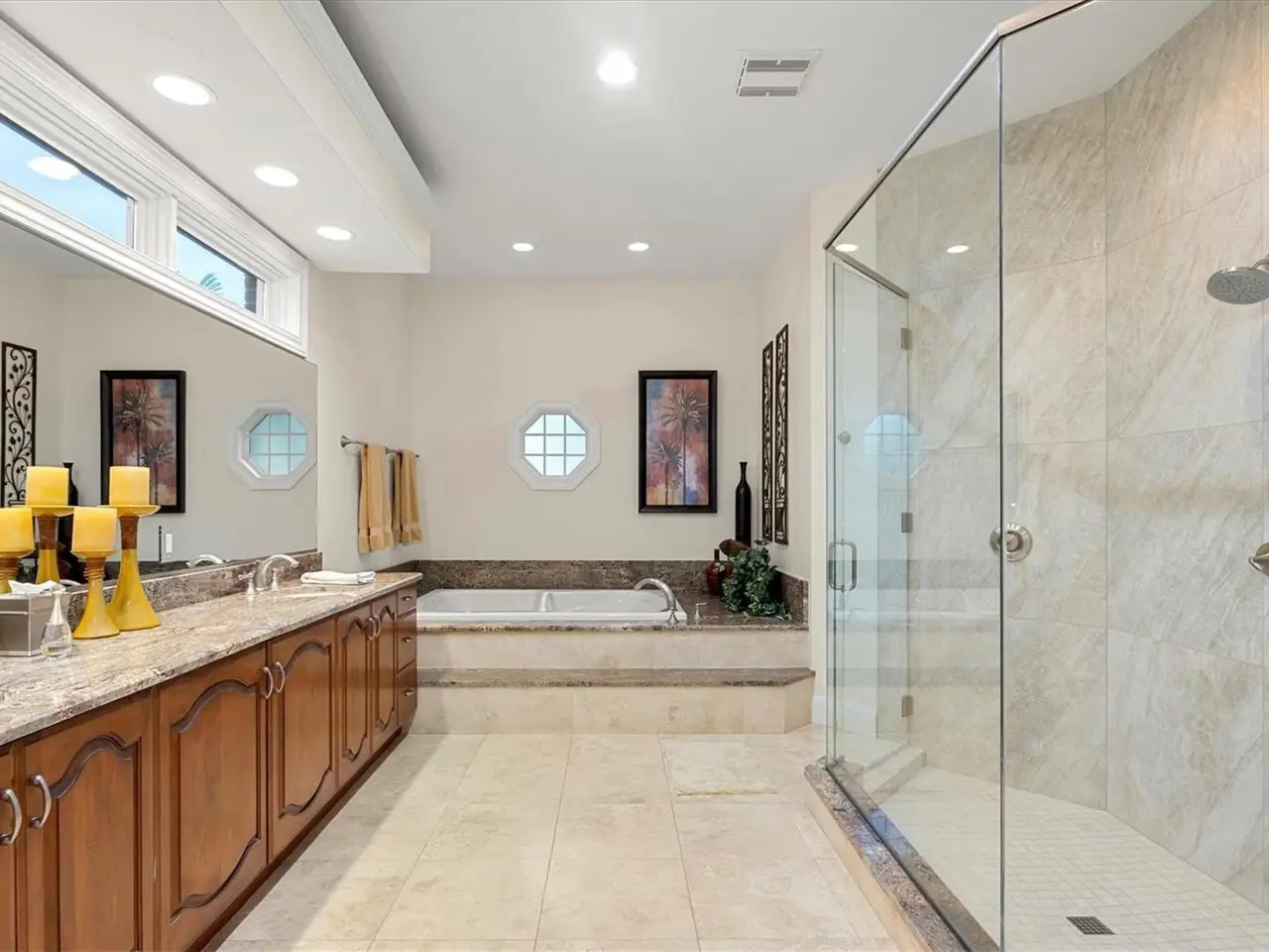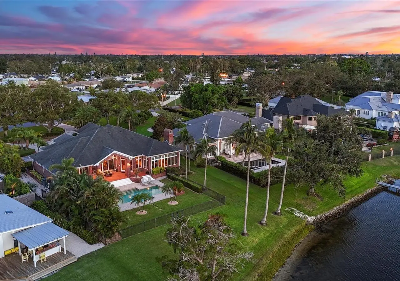 A boater's tropical paradise awaits you in this custom-built home located on Warner's West Bayou in desirable NW Bradenton. Imagine living the FL boating lifestyle where you can be out in your boat fishing or sightseeing in the beautiful Tampa Bay in a matter of minutes. This luxurious estate home features 4025 square feet with 3 bedrooms + den with 2 full baths + 2 half baths plus an oversized saltwater pool on a boatable waterfront lot. This beautiful home sits on an estate sized lot with 100' of water frontage and no HOA. There is a large covered dock that includes two boat lifts, one that is covered and fits a 50-foot yacht, 25,000lb lift, with water & electric & a fish cleaning station. Coming into the home are beautiful mahogany double doors with glass inserts that welcome you and set the scene for elegant living. Upon entering the home, you will love the open floor plan with its high ceilings and beautiful water views. The living and dining rooms are inviting, spacious, and feature wood floors, elegant crown moldings, chair rails and custom built-ins. To enjoy large gatherings and family fun there is an impressive, oversized family room/game room with wood-burning fireplace and large windows that let in the sunshine, pool, and water views. The spacious kitchen which opens to the family room is a chef's dream with wood cabinetry, granite countertops, tile backsplash, newer stainless-steel appliances, a large center island with prep sink, and a built-in desk. Rest and relax in the master bedroom suite overlooking the lovely backyard with sliding doors opening to the pool area and water views. The master bath features travertine floors, a large walk-in shower and large tub made for two. Separated from the master bedroom are two spacious bedrooms and a hall bathroom with tub and walk-in shower. Next is the laundry room that is oversized featuring a newer washer & dryer, laundry sink, plenty of cabinets and a large closet. Out back everyone will love the oversized covered lanai that is a dream come true and keeps you shaded during the day while your family is enjoying the sunshine in the pool and spa. There is a pool bath and an outside shower plus a storage closet for all your boating gear. Watching the sunsets views while sitting on the lanai with your favorite beverage is a lovely way to end the evening. The backyard is fenced for your family and pets to run and play and there is an open beach for kayaking or canoeing. Another great feature is the oversized 40-foot three-car insulated A/C'd garage with large semi-circular driveway with parking area. Plenty of room to park, store your possessions, and work on your cars. All this is conveniently located to Sarasota/Bradenton airport, IMG Academy, restaurants, shopping, and the beautiful AMI Gulf beaches.
