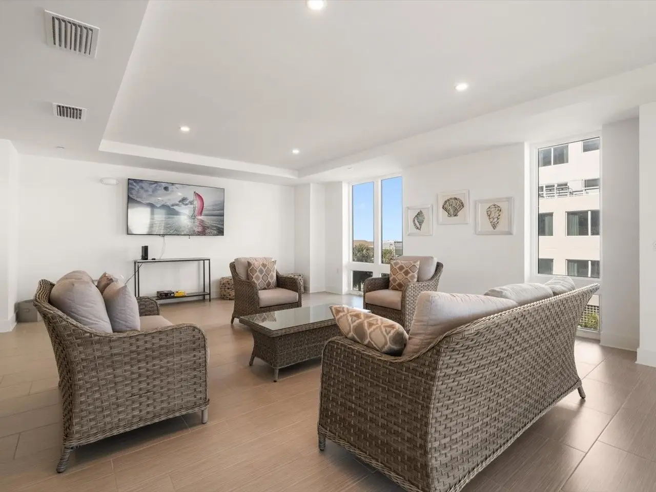 Experience the perfect fusion of luxury, coastal serenity and area vibrancy at Pura Vida Residences. Built in 2020, this exclusive community of just 22 private residences stands as one of the most recent additions to the tranquil, North end of award-winning Clearwater Beach yet is conveniently close to boutique shops, marine adventures, and a diverse array of dining options, from fine dining for special occasions to laid-back beachfront eateries…this is coastal living at its finest. Offering the largest floor plan in the building with 3,111sf, 4 bedrooms, 3.5 bathrooms, 10’ ceilings plus open concept living space, unit 303 is an exquisite and spacious NW corner residence offering comfort, style and refined living. Direct West facing floor-to-ceiling impact windows, sliders, and glass paneled balconies allow an abundance of natural light and seamlessly blend beach and Gulf views from the entire kitchen, living and dining areas, offering a front row seat to possibly some of the most spectacular sunsets you will ever see. Secure, direct elevator access opens to a dedicated foyer, where double doors lead you into this elegant coastal retreat. Art enthusiasts will appreciate the expansive hallways, ideal for showcasing personal collections. Premium features include Miele appliances, a 5-burner gas stove, sleek European-style cabinetry, oversized kitchen island with quartz countertops, tile flooring throughout, designer finishes, custom closets, motorized cellular shades (primary suite) and whole-unit water filtration. Select furniture pieces available, and all 7 wall-mounted flat-screen TVs convey. Conveniently located, private, climate controlled, 8x8 (approx) storage unit. Secure, gated entry to the building, 2 assigned under-building parking spaces (pre-wired for an electric vehicle charging station) located close to the lobby access. Personal beach locker for easy access to fun in the sun at your doorstep. Building amenities include heated pool with flow resistance, spa, club room, fitness center, indoor bike storage, key fob and digital security for doors and elevators, building back-up generator and 24-7 video security. Pro-active and professionally managed Association. Pet friendly building (1 pet under 30lbs). One month minimum rental. Don’t miss this rare opportunity to claim your elegant slice of paradise on Clearwater Beach.