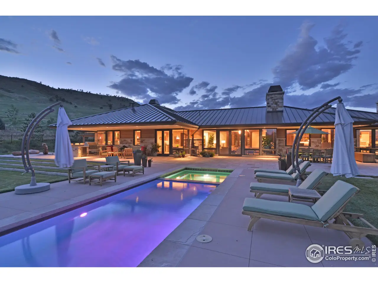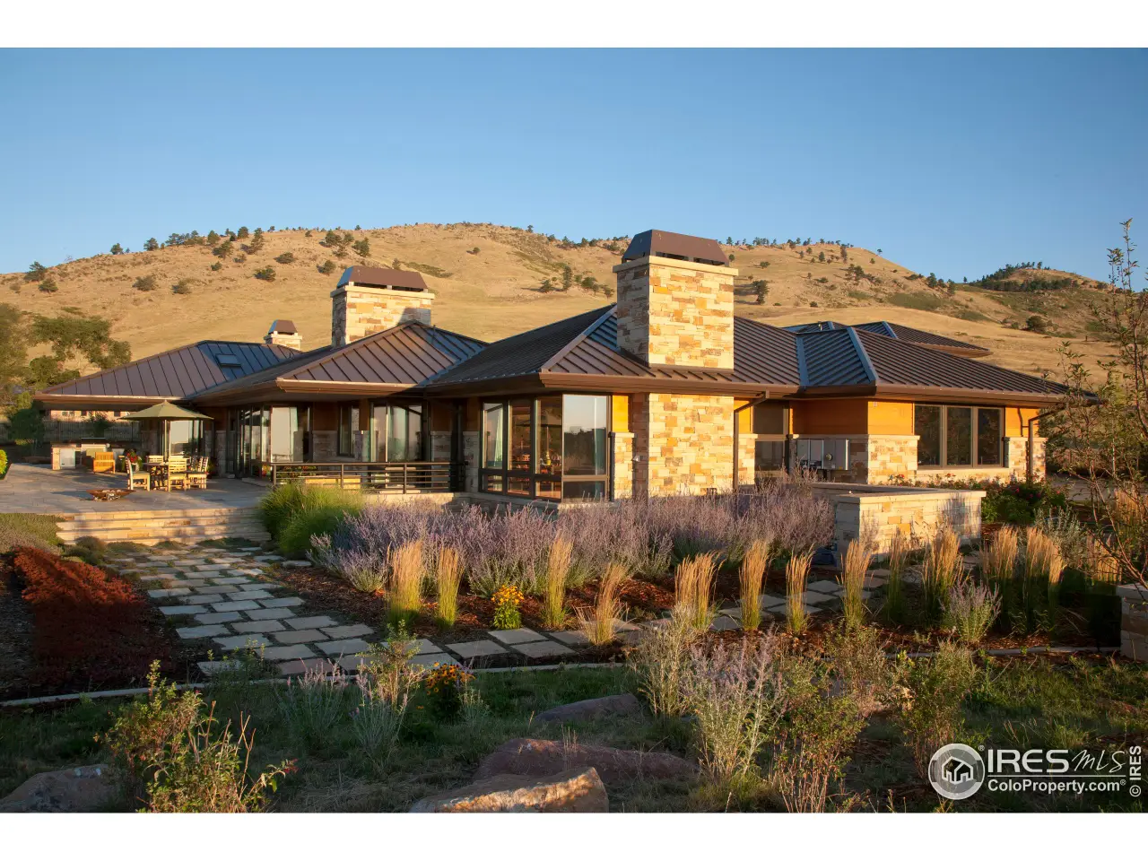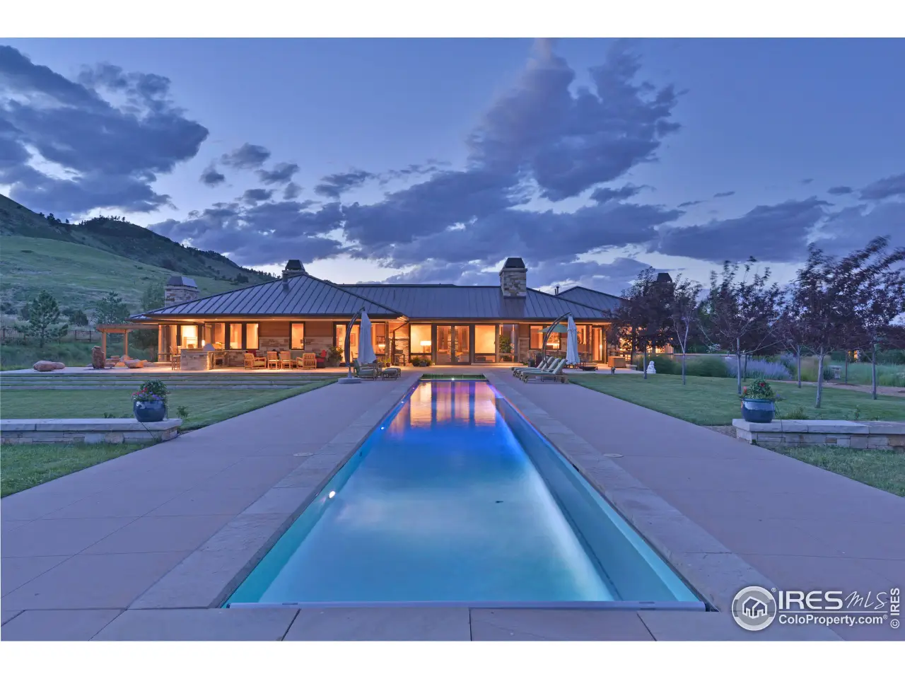 One of the premier residences on Colorado's Front Range. Inspired five-acre setting nestled against the foothills yet just blocks from restaurants, bakery, coffee shops. Sweeping views throughout this dramatic 8,700 square foot home. No expense spared - built by Tim Harrington, arguably the preeminent builder of Boulder's finest homes. Four limestone fireplaces, custom millwork, venetian plaster walls, travertine and walnut floors, and state-of-the-art systems throughout. Chef's kitchen with double islands, walk-in and butler pantries, Wolf and Sub-Zero appliances, Miele coffee. Exquisite primary retreat with postcard views, striking fireplace, onyx and marble bath. Resort-like amenities redefine outdoor luxury - 90-foot lap pool and hot tub surrounded by 100-foot-long stone deck, al fresco Viking kitchen, water features, terraced lawns, fire pit. Three-car garage plus six-car show garage. Blending naturally with the adjacent foothills - gated and private for tranquil seclusion.