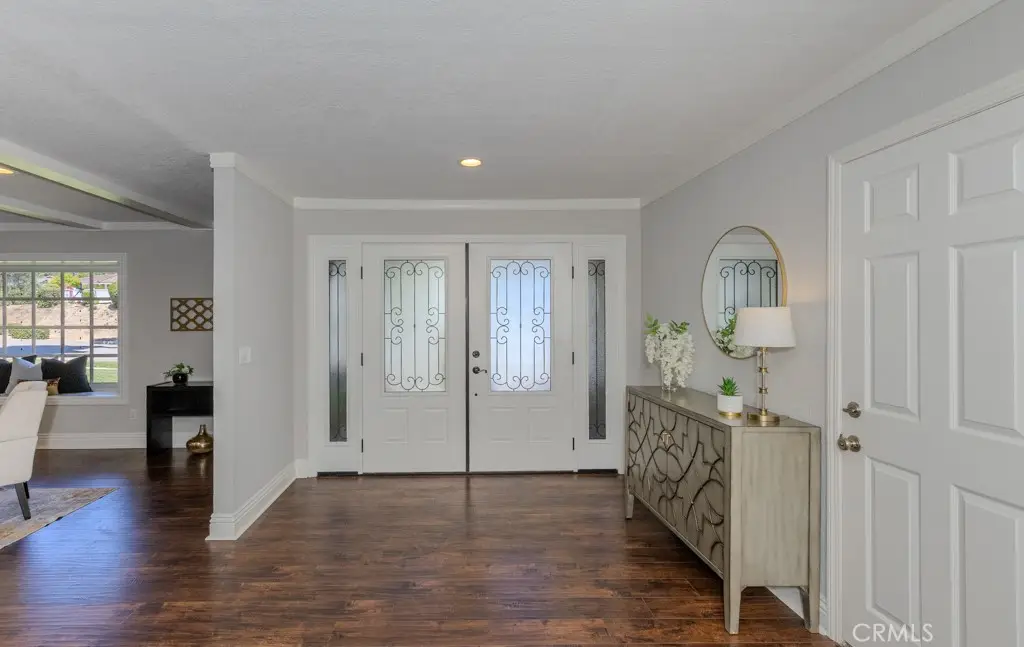 Welcome to 1448 W Domingo Rd in Fullerton, a beautifully upgraded single-story home in the highly desirable Sunny Hills neighborhood. This home sits on a private lot just under half an acre, offering space, comfort, and incredible outdoor living. From the moment you arrive, you're welcomed by paver walkways, a double-door entry, and charming stacked stone accents. Inside is a foyer that opens to a spacious living room with a large bay window providing great natural lighting, wood flooring, and recessed lighting. The kitchen is tastefully updated with granite counters, an island, stainless steel appliances, upgraded cabinetry, recessed lights, a bay window, and a pantry. The dining area has a ceiling fan and French doors with operable side panels opening to the backyard. To the left of the entry, the large family room has a brick fireplace, recessed lighting, and another set of French doors with side windows that open, creating great indoor-outdoor flow. The covered patio is an entertainer's dream. Both ends of the patio feature recessed lights and dual ceiling fans. It's wired for a wall-mounted TV and set up for outdoor entertaining. The stainless steel barbecue can connect to a gas line and sits near the paver-lined entertaining area. The pool and spa include a diving board and multiple waterfalls that flow into the pool. The spacious yard also includes a large grass area and is surrounded by mature trees for enhanced privacy and relaxation. All bedrooms and living spaces have wood flooring, while the kitchen, bathrooms, and dining area feature large tile flooring. The primary bedroom has double-door entry, a walk-in closet, plantation shutters, and a ceiling fan. The remodeled bathroom features granite counters, custom cabinetry, recessed lights, and a walk-in tiled shower. The guest bathroom has dual sinks, custom cabinetry, and a tiled shower combo. Not included in the square footage is an upstairs bonus area with an office nook and open media space. The finished two-car garage has direct access and epoxy flooring. A wide driveway provides room for multiple cars. All windows have been replaced, solar with 33 panels is paid off, the electrical panels have been updated, and the home is in excellent condition. Zoned for some of Fullerton's top-rated schools including Laguna Rd and Sunny Hills, this location is ideal for anyone seeking access to top-tier education. Rare chance to own this beautiful home in one of the best neighborhoods in the city.