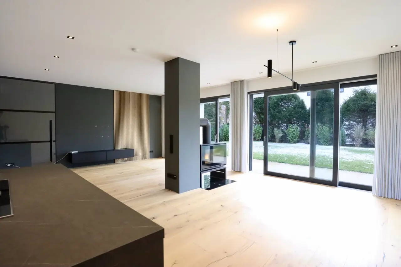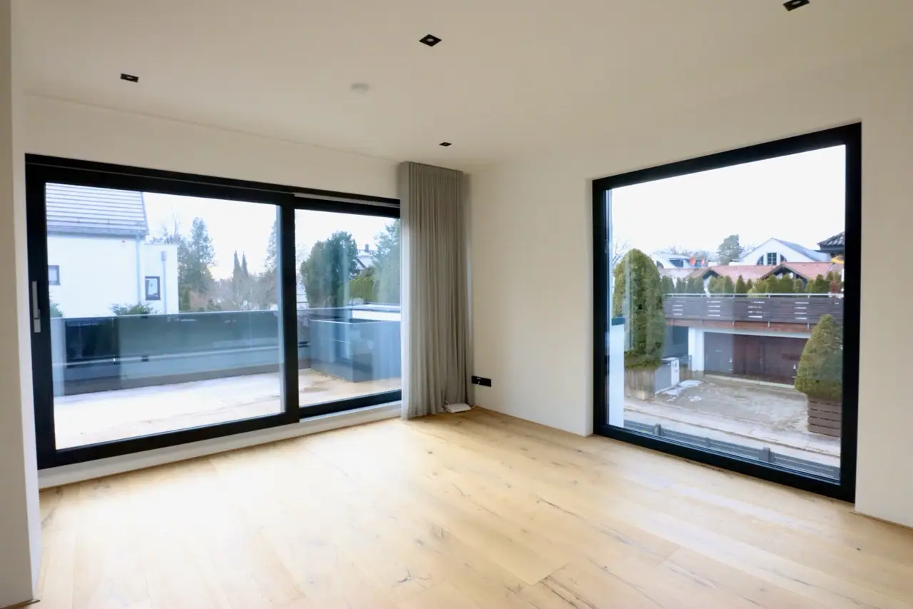 This villa in Grünwald is a home to feel at home in - a successful combination of stylish architecture, high-quality materials and a first-class location. The spacious south-facing terrace is a place of peace and relaxation, perfect for sociable evenings or relaxing moments with a view of the lovingly landscaped garden. Thanks to its ideal south-facing orientation, the sun floods the property throughout the day, creating a pleasant atmosphere. The interior reflects the harmony of the design: warm oak parquet floors, elegant tiles and an open fireplace create a cozy living atmosphere. The custom-made fitted kitchen with state-of-the-art technology leaves nothing to be desired and invites you to enjoy culinary experiences together. The bathrooms, equipped with high-quality fittings from Marina and Gessi, offer a private oasis of well-being with a spacious full bath and separate shower room. A tasteful guest WC on the first floor provides additional comfort. The well thought-out construction with energy-efficient brickwork guarantees a balanced indoor climate at any time of year. Large aluminum windows let in plenty of natural light and give the rooms an open, bright atmosphere. The top floor in particular benefits from the large window areas and creates an inviting feeling of living. The high-quality basement with natural light and separate access offers a variety of uses - whether as a granny apartment, studio or private workspace. These flexible rooms add an individual touch to the living comfort. The technical equipment also meets the highest standards: efficient district heating ensures a reliable heat supply, while the intelligent LED lighting concept adds stylish accents. Electric external blinds on the windows on the ground and upper floors allow flexible light regulation and ensure privacy. For additional security, modern video surveillance can be integrated as an option. This extraordinary villa is more than just a home - it is a place to arrive, enjoy and experience. Nestled in one of the most sought-after locations in Grünwald, it offers an exclusive living experience for people who are looking for something special. Arrange a viewing and let yourself be enchanted by this unique property.