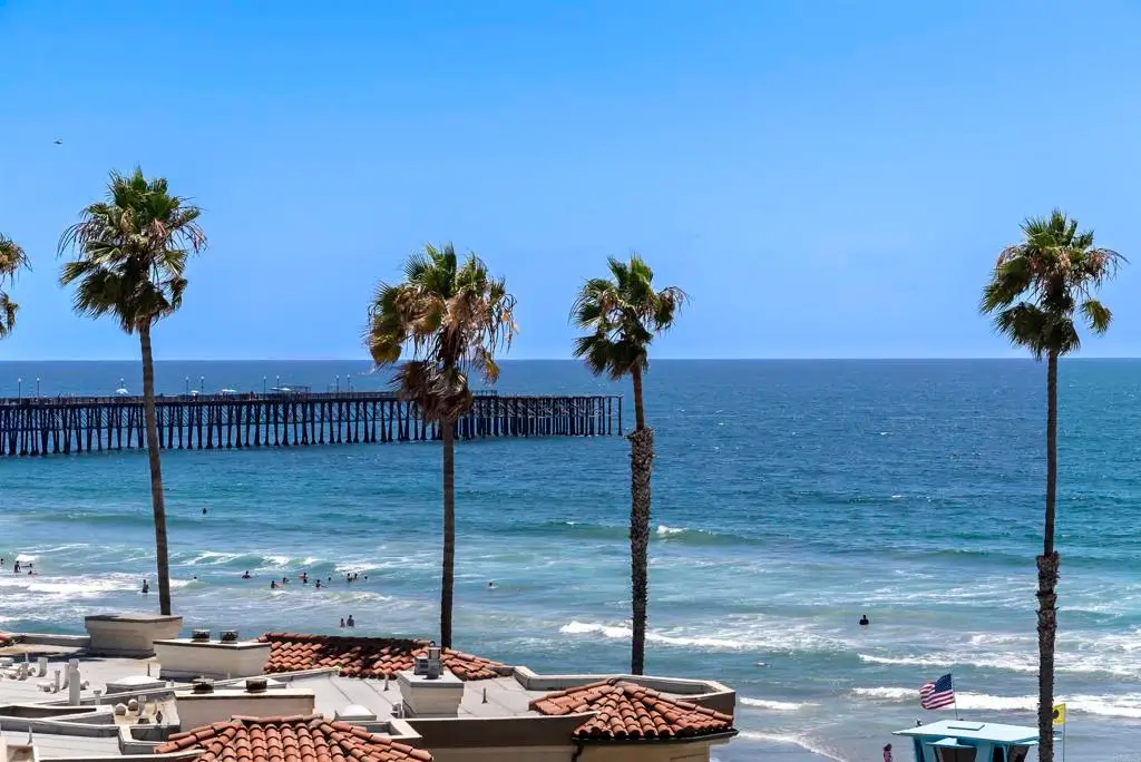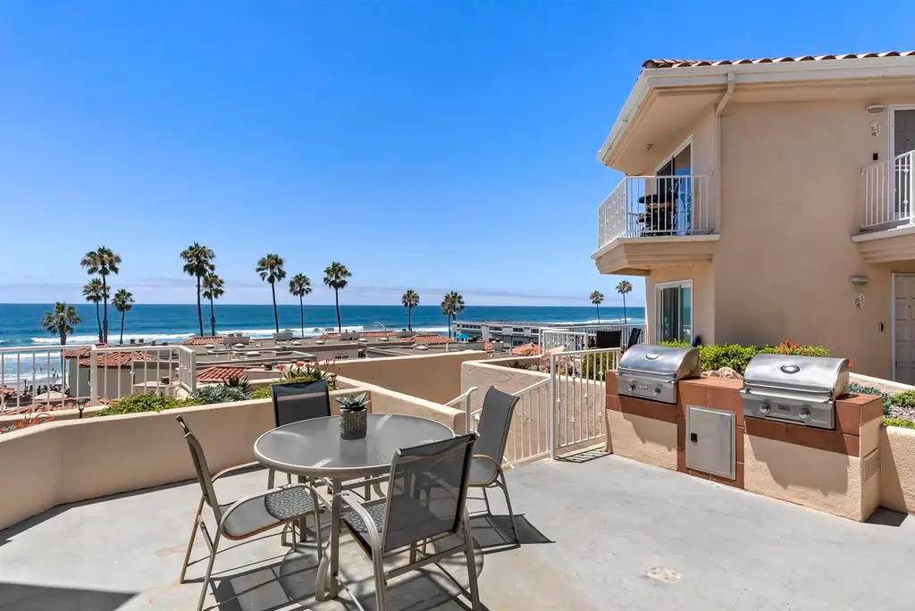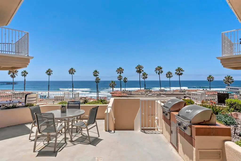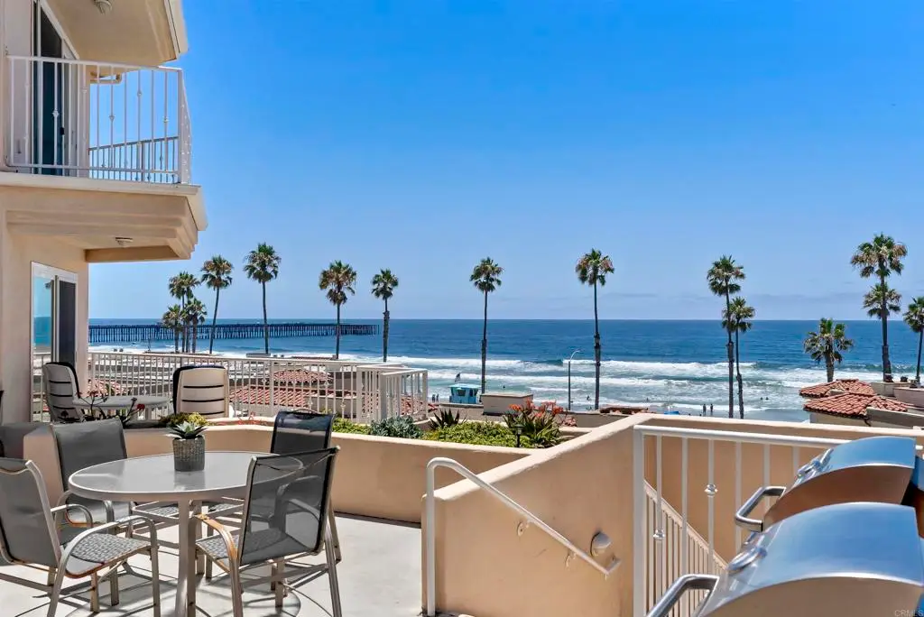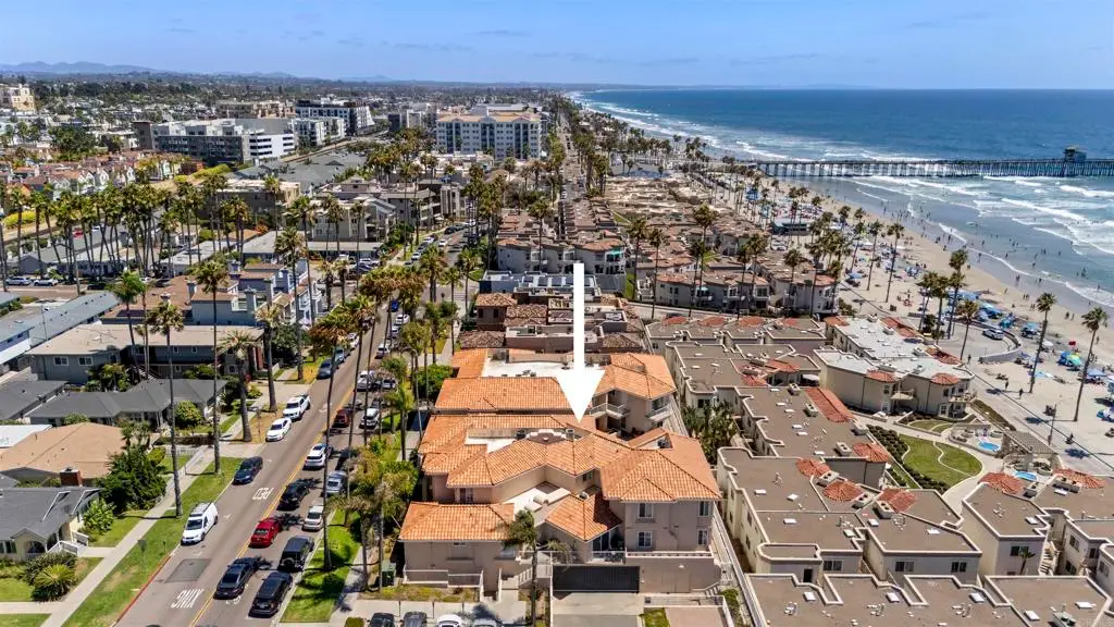 Start your mornings with blue ocean views and end your days with unforgettable sunsets over the Pacific. Perfectly positioned just north of the iconic Oceanside Pier, this stunning beach condo offers sweeping white-water views and effortless close by beach access--your personal front-row seat to coastal living. Step inside to an upgraded and move-in ready home where the Pacific Ocean is your backdrop. Catch ocean views from the open-concept kitchen and living room, or relax on your private balcony as the sun dips into the horizon. The primary bathroom has been tastefully updated with a large walk-in shower, adding to the refined coastal aesthetic. This two-bedroom, two-bath retreat is located in an intimate 15-unit gated community and features central A/C, in-unit laundry, two secure garage parking spaces, storage locker, and community bicycle storage room. Whether you're strolling to the beach, dining at nearby restaurants, sipping a coffee at a local cafe, or browsing boutiques and breweries, everything you love about Oceanside is just steps away. Community amenities include a shared BBQ and dining area perfect for summer evenings. Ideal as your primary residence or your personal getaway, this rare offering invites you to live the dream lifestyle--where every day feels like a vacation.