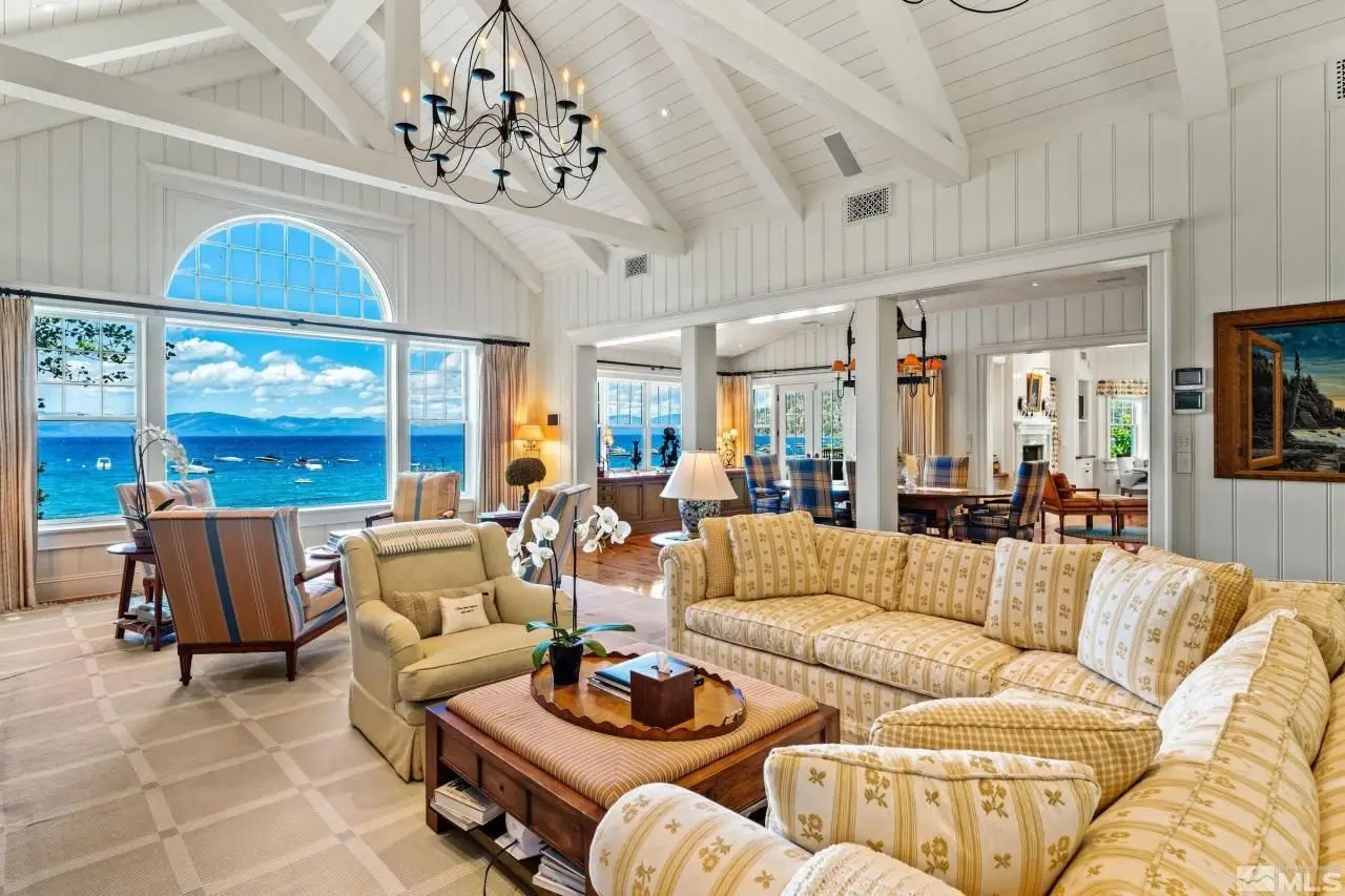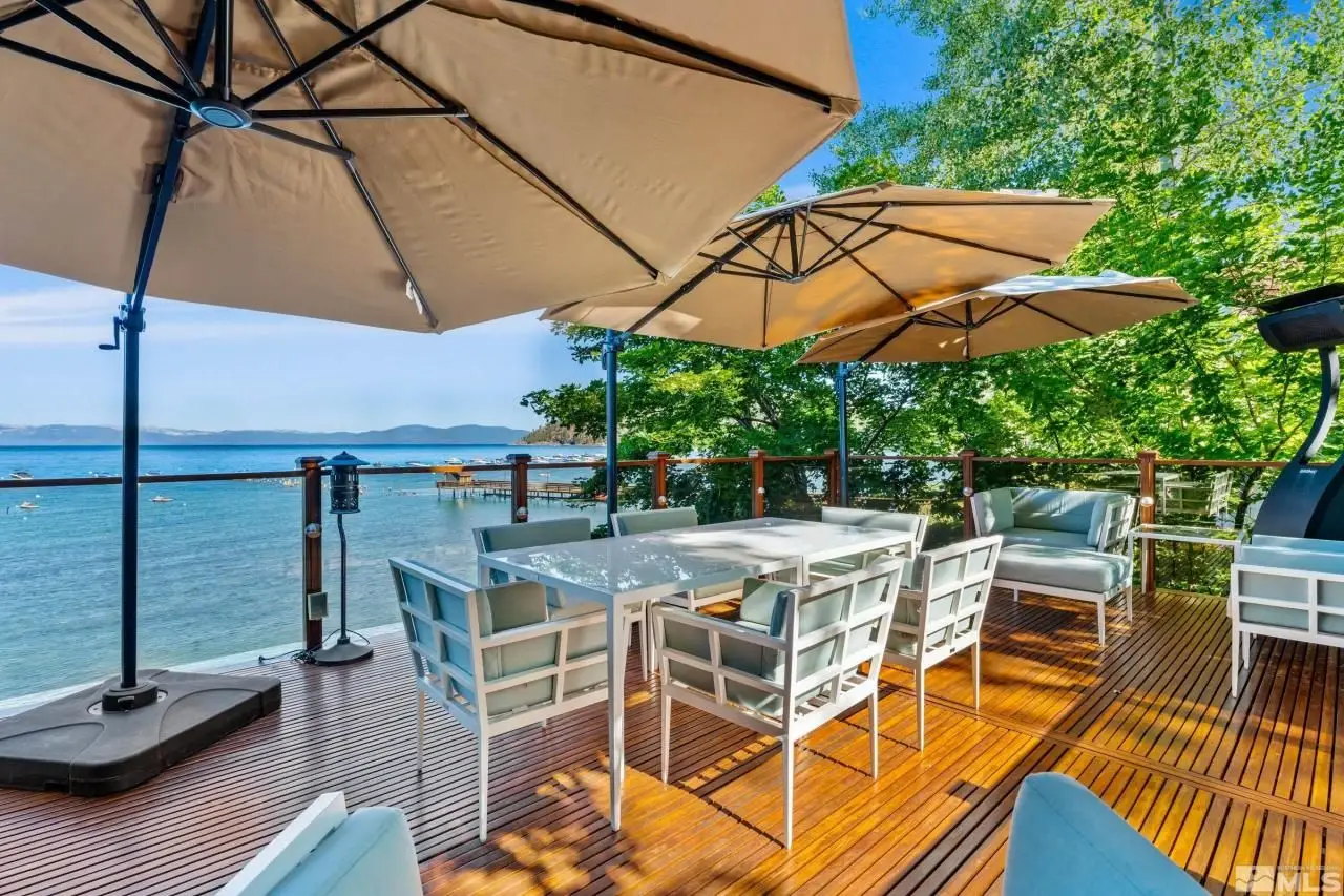 Water's Edge is an extraordinary lakefront retreat nestled within the exclusive gates of the iconic Shakespeare Ranch Properties in historic Glenbrook, Nevada - Lake Tahoe's only gated lakeside golf course community. Designed in a New England style, this beautifully appointed residence with lakeside cabana sits directly on the water's edge with panoramic views of Lake Tahoe and the Sierra. Access to the 465-foot pier, one of the longest in Lake Tahoe, with buoy makes this rare lakefront the ultimate perfection! A luxurious 690 square foot two-story lakeside cabana, seamlessly connects the main house by a wrap-around teak deck. The cabana has a stunning rooftop deck, sitting room, and wet bar - it's the perfect space for entertaining or relaxing while tipping your toes in the water. The 4,150 square foot main residence on .71 acres with 174 linear feet of lake frontage features three private en-suite bedrooms, a media room/office, living room, formal dining, two-car garage and multiple patios, covered and uncovered. The living room, formal dining room, and kitchen flow together within an expanding space featuring exposed beams and trusses. Expansive windows showcase where the crystal-clear waters meet the horizon in a mesmerizing dance of light and tranquility. Adjacent to the cozy breakfast nook, a charming covered porch offers a peaceful spot for morning coffee providing a connection to the serene lakeside surroundings. Water's Edge is not just a home - it's a lifestyle offering a rare opportunity to live in harmony with nature while enjoying the finest comforts of modern living in tax-friendly Nevada. This property is NOT in the Glenbrook Homeowners Association. Residents of the Glenbrook community have the option to join the Glenbrook Golf and Tennis Clubs which includes a 9-hole course, clubhouse and tennis courts.