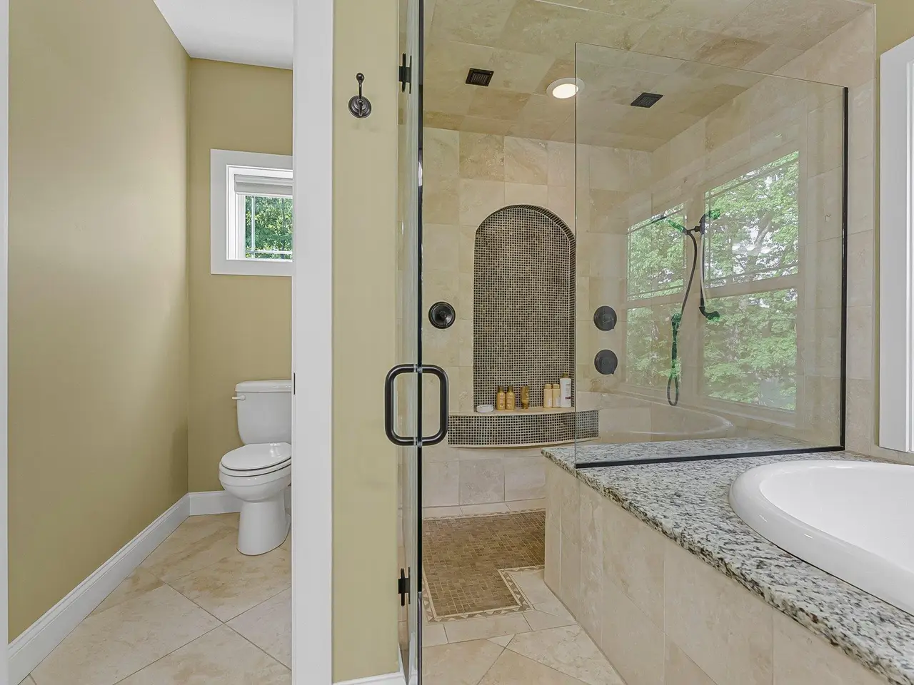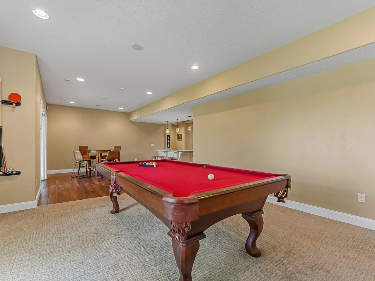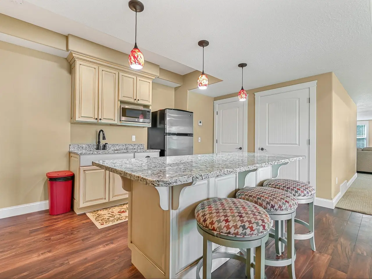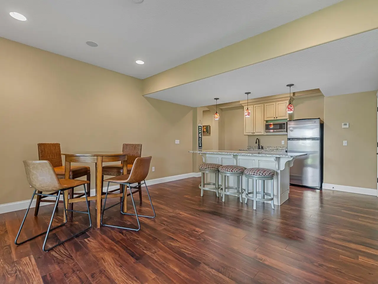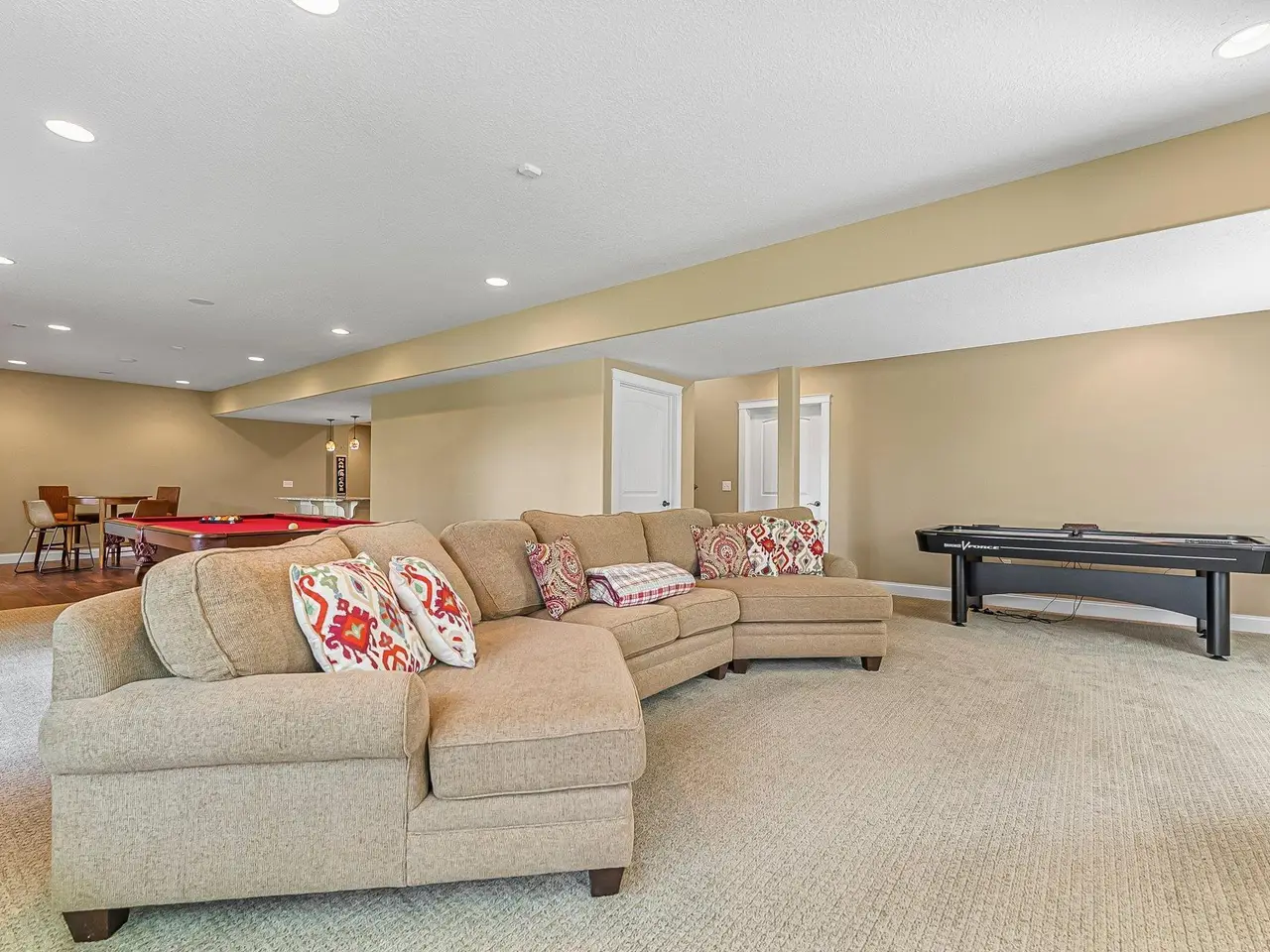 Experience luxury lakefront living in this stunning 5-bedroom, 4.5-bath home on Huellmantel Lake, featuring vaulted ceilings, breathtaking water views, and an open-concept living room. The gourmet kitchen offers top-of-the-line Wooden Hammer cabinetry, granite countertops, and a spacious island, along with an elegant foyer, mudroom, and main floor laundry. Enjoy two private office spaces, a main-level en suite, and a walk-out lower level with a large family room and wet bar. Complete with a 3-car garage and private lake frontage, this home combines comfort, style, and an unbeatable setting.