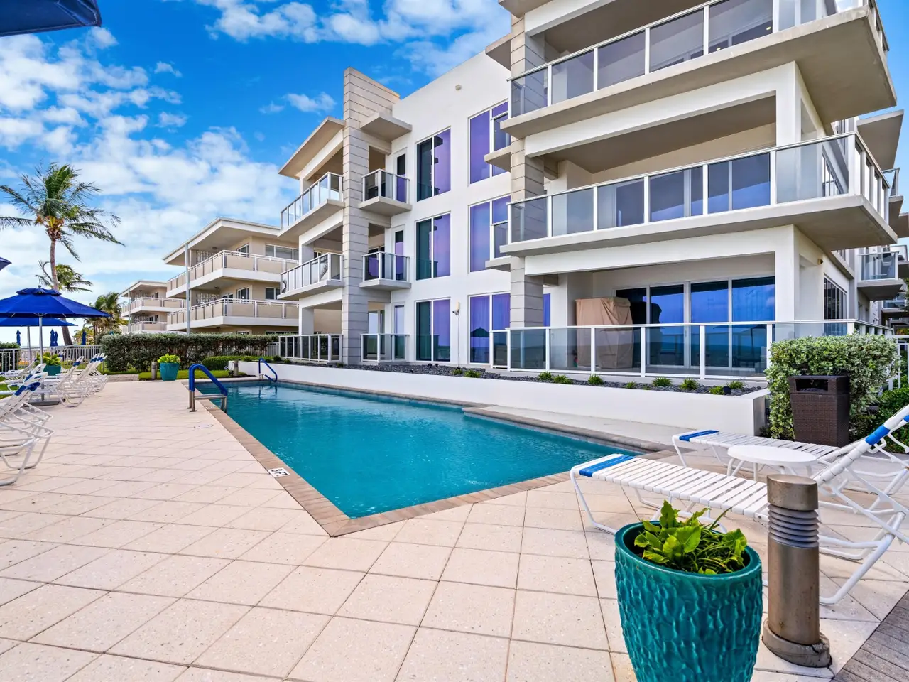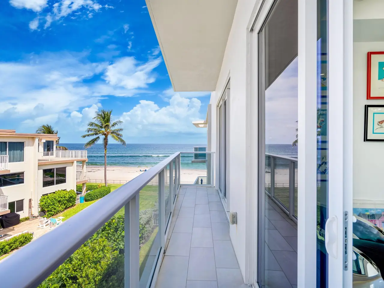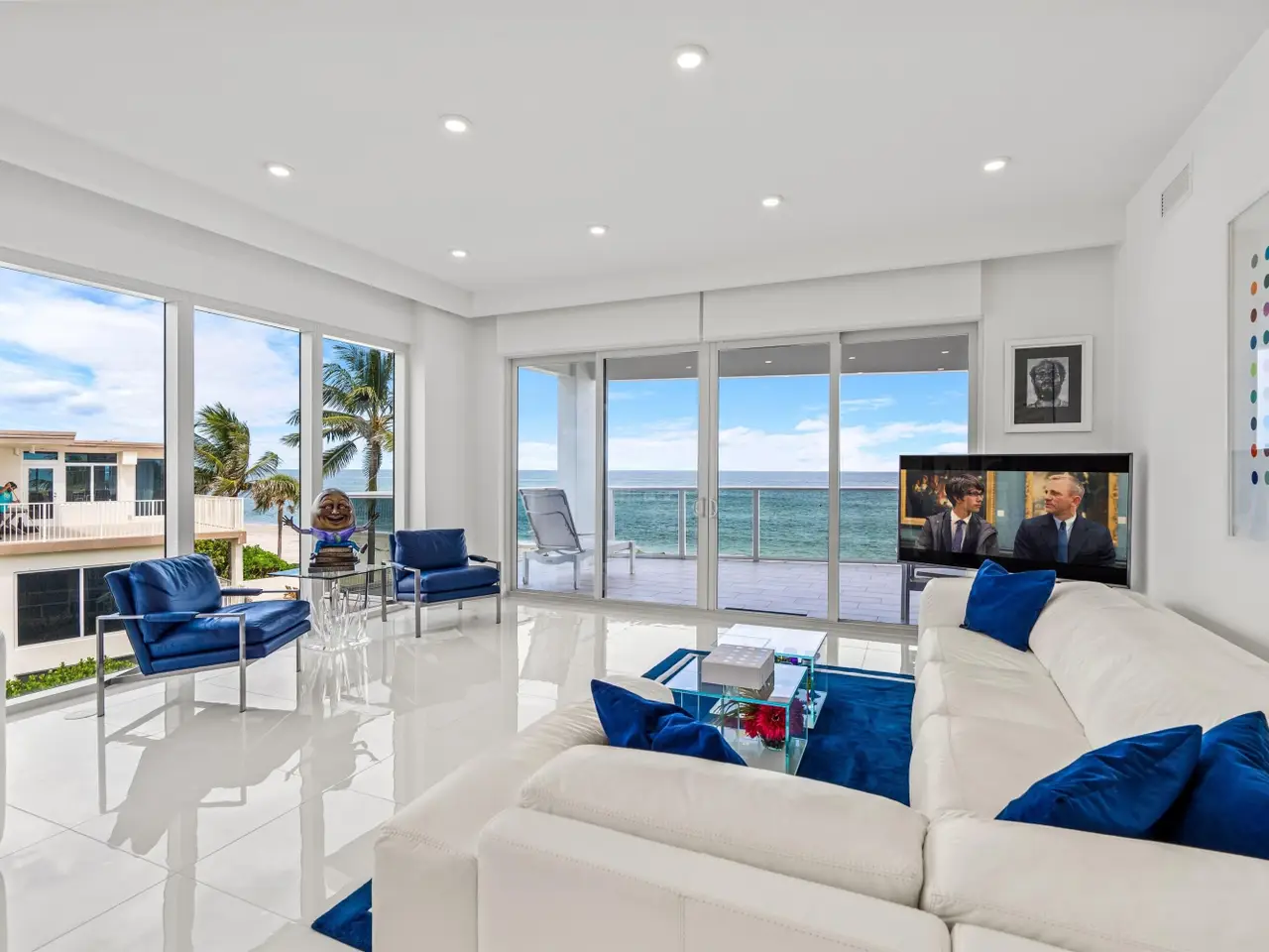 FIRST TIME ON THE MARKET, RARE OCEANFRONT CORNER PENTHOUSE WITH SWEEPING OCEAN VIEWS UP & DOWN THE COAST ON A SERENE STRETCH OF BEACHFRONT. IMPECCABLY MAINTAINED, THIS STUNNING RESIDENCE IMPRESSES WITH SOARING CEILINGS, FLOOR-TO-CEILING IMPACT-RATED GLASS FLOODING THE SPACE WITH NATURAL LIGHT, A CHEF'S KITCHEN WITH CUSTOM EUROPEAN CABINETRY, QUARTZ COUNTERTOPS, AND HIGH-END APPLIANCES (BOSCH, WOLF, SUB-ZERO). THE SPACIOUS PRIMARY SUITE OPENS TO AN OCEANFRONT BALCONY AND OFFERS MESMERIZING VIEWS, SPA-LIKE BATH & DUAL WALK-IN CLOSETS. TWO ADDITIONAL GUEST SUITES PROVIDE GENEROUS STORAGE. CONTROL4 HOME AUTOMATION INCLUDES CUSTOM LIGHTING, ELECTRIC SHADES, & SPEAKERS. 1200 HILLSBORO MILE IS A BOUTIQUE BUILDING WITH PRIVATE BEACH ACCESS, INTRACOASTAL DAY DOCK, TWO POOLS, AND A FITNESS CENTER.