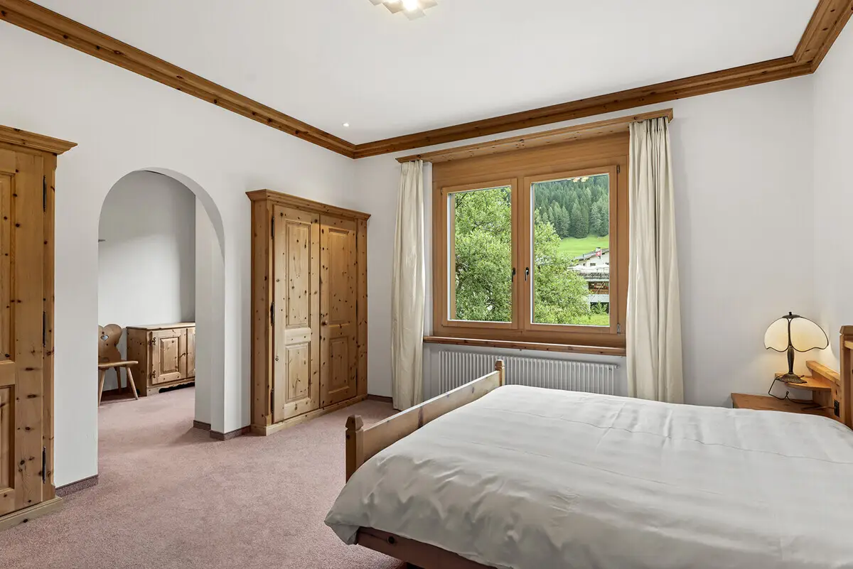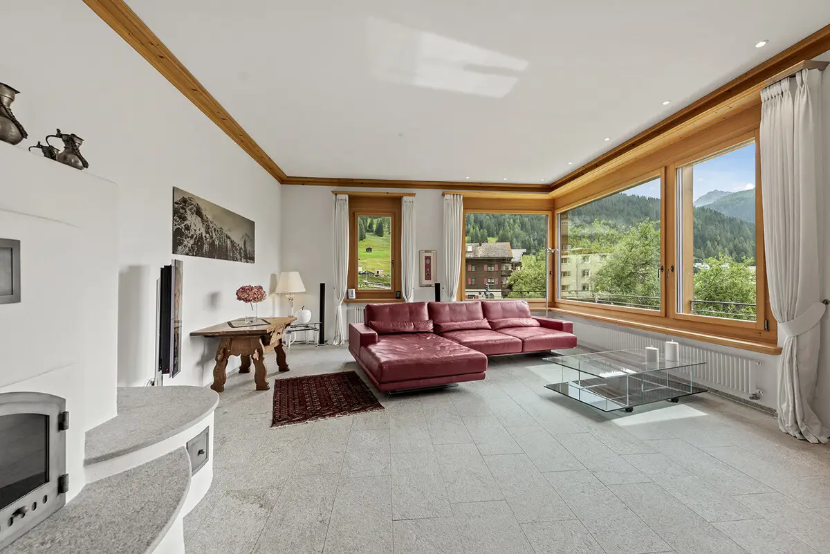 This generously sized holiday home in Davos Platz combines contemporary architecture with the beauty of nature in an impressive way. The property offers bright, spacious living areas that create a uniquely distinctive living ambience by virtue of the high ceilings and large windows. The openly arranged floor plan is ideal for families who enjoy shared activities while also valuing privacy. The living area with a fireplace forms the heart of the house and is an irresistible place for relaxed gatherings. The two loggias extend the living space outdoors and open onto breathtaking views of the surrounding mountains. The exteriors are another highlight: The well-kept garden that surrounds the house provides plenty of space for unwinding in the open air. The sightline-protected views and all-day sunshine make the garden a blissful haven. The holiday residence is located in a quiet area on the perimeter of Davos Platz, just a few minutes from the Jakobshorn ski area, which offers year-round sports activities for the whole family. The property includes a modern 2.5-room self-contained apartment that can be rented out either annually or on a weekly basis. The property: - Approximately 260m² of living space - Well-kept garden and two loggias - Beautiful, unobstructable views - High-quality interior finishes - Modern self-contained flat with separate bedroom - 2 garage spaces, 2-3 outdoor parking spaces - Ground-source heat pump