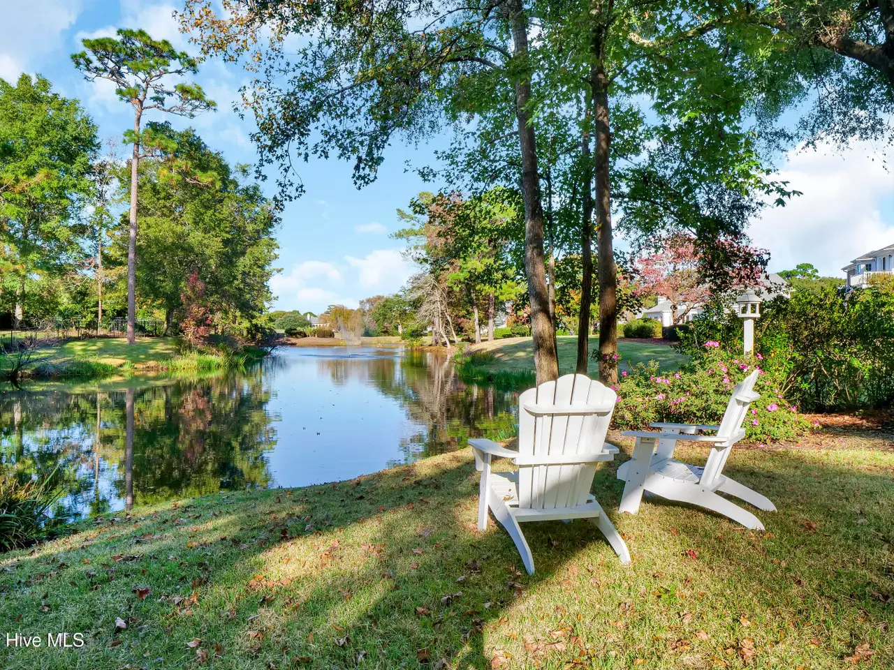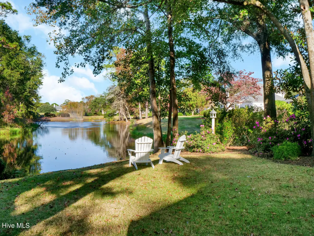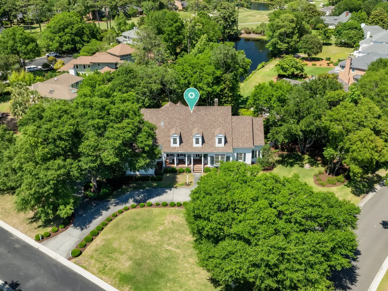 A timeless classic residence offering exceptional craftsmanship and refined modern comfort in the gated community of Landfall. Nestled on Starfix Lake with stunning views of the prestigious Dye golf course, this homes architecture and beautiful landscape create an inviting sense of established charm. The interior offers an attention to detail rarely found today with traditional hardwood floors throughout and custom millwork. The abundance of natural light flows throughout each room, offering the perfect balance between open gathering spaces and quiet areas to retreat. The gourmet kitchen is appointed with a bespoke cabinetry style and modern functionality, featuring Subzero refrigerator, Double electric Wolf ovens with gas cooktop and griddle, commercial hood, Bosch dishwasher, a custom island, elegant stone countertops and walk-in pantry. The kitchen is an entertainer's dream as it opens to the light-filled den and family room overlooking the lake and golf course. A Butler's pantry area is conveniently nestled steps away from the dining room ensuring ease for formal entertaining and large gatherings. The living room is appointed with a traditional fireplace, custom cabinetry, impressive vaulted ceiling and an abundance of windows offering stunning views of the backyard and lake. The primary suite overlooking the serene views is a luxurious private retreat offering a spa-inspired bath, large custom walk-in closet, unique space to accommodate an office or custom dressing room. An additional downstairs bedroom can serve as a private office. Upstairs, a second primary ensuite with bonus room offers unlimited potential for a gym, playroom or guest quarters. Two additional bedrooms share a private bath. Walk-in attic accessed by a separate staircase off the kitchen, provides an abundance of storage or the opportunity for a craft room or second bonus room. The oversized three car garage complete with an extensive Tek System and work bench provides exceptional organization and storage solutions. Conveniently located, the light filled laundry room offers abundant storage, utility sink and additional space to help manage daily household tasks. Experience the luxurious coastal lifestyle, while enjoying this expansive backyard with two patios and stone fireplace all overlooking the water. Designed to stand the test of time, a rare blend of tradition, sophistication and comfort that feels as current today as it will for generations to come.