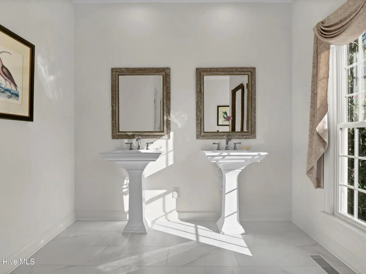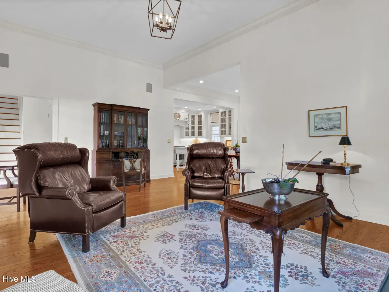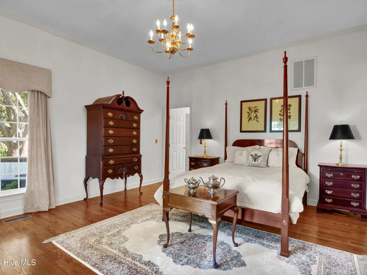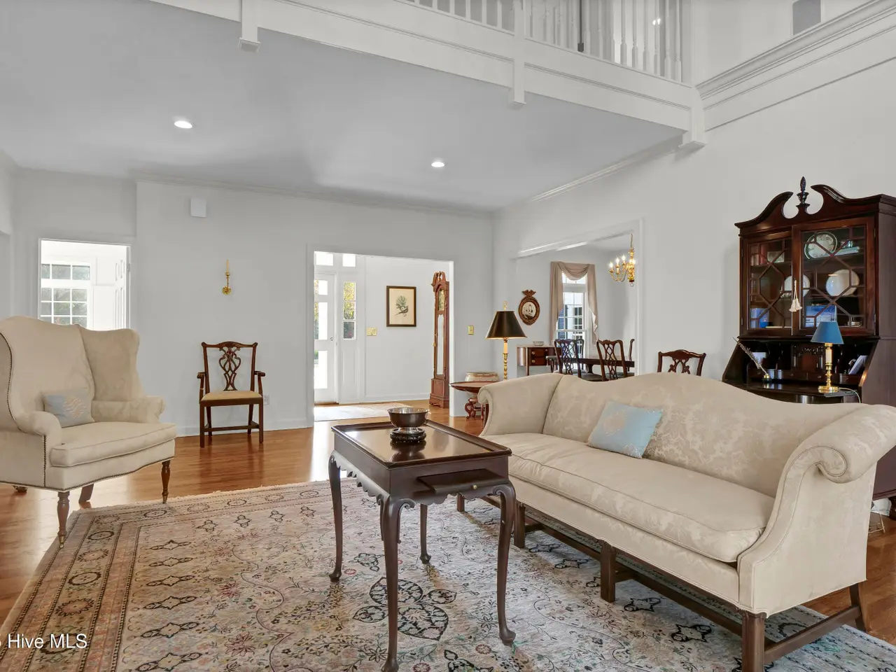 A timeless classic residence offering exceptional craftsmanship and refined modern comfort in the gated community of Landfall. Nestled on Starfix Lake with stunning views of the prestigious Dye golf course, this homes architecture and beautiful landscape create an inviting sense of established charm. The interior offers an attention to detail rarely found today with traditional hardwood floors throughout and custom millwork. The abundance of natural light flows throughout each room, offering the perfect balance between open gathering spaces and quiet areas to retreat. The gourmet kitchen is appointed with a bespoke cabinetry style and modern functionality, featuring Subzero refrigerator, Double electric Wolf ovens with gas cooktop and griddle, commercial hood, Bosch dishwasher, a custom island, elegant stone countertops and walk-in pantry. The kitchen is an entertainer's dream as it opens to the light-filled den and family room overlooking the lake and golf course. A Butler's pantry area is conveniently nestled steps away from the dining room ensuring ease for formal entertaining and large gatherings. The living room is appointed with a traditional fireplace, custom cabinetry, impressive vaulted ceiling and an abundance of windows offering stunning views of the backyard and lake. The primary suite overlooking the serene views is a luxurious private retreat offering a spa-inspired bath, large custom walk-in closet, unique space to accommodate an office or custom dressing room. An additional downstairs bedroom can serve as a private office. Upstairs, a second primary ensuite with bonus room offers unlimited potential for a gym, playroom or guest quarters. Two additional bedrooms share a private bath. Walk-in attic accessed by a separate staircase off the kitchen, provides an abundance of storage or the opportunity for a craft room or second bonus room. The oversized three car garage complete with an extensive Tek System and work bench provides exceptional organization and storage solutions. Conveniently located, the light filled laundry room offers abundant storage, utility sink and additional space to help manage daily household tasks. Experience the luxurious coastal lifestyle, while enjoying this expansive backyard with two patios and stone fireplace all overlooking the water. Designed to stand the test of time, a rare blend of tradition, sophistication and comfort that feels as current today as it will for generations to come.