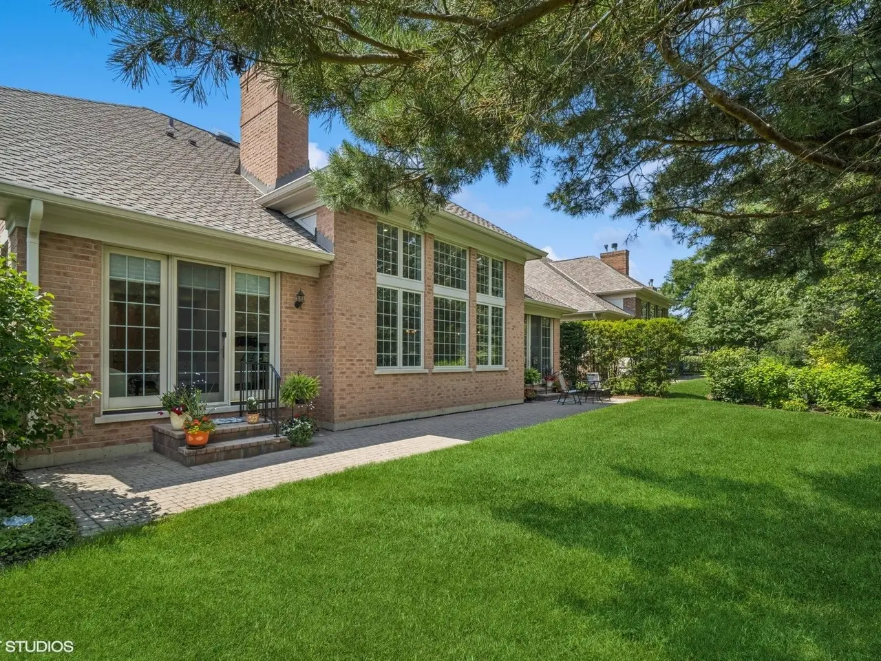ROYAL RIDGE. Premium and I mean premium location in THE North Shore's premier 24 hour maintenance free 24 hour guard gated community. Fifty gorgeous acres in East Northbrook. This beautifully appointed Carlyle Plus model offers a 1st floor primary suite with new hardwood flooring, two walk-in custom closets plus cedar closet. All white new deluxe primary bath. Lovely sliding door to private brick patio overlooking the Sunset Ridge Country Club Golf Course. Dramatic and inviting Great Room/Dining Room with new hardwood flooring, new fireplace surround and built-in's, crown molding, full height windows. Kitchen enjoys new stainless steel appliances and new counter tops and backsplash. Very large remodeled 1st floor laundry/utility room with sink. Gorgeous new staircase. Three bright and sunny 2nd floor bedrooms and bath. This model usually has only two 2nd floor bedrooms, so this is a unique upgrade to this home. Hardwood throughout 2nd floor. Finished lower level, two car attached garage. Alarm system and newer roof. 24 hour guard gate, snow removal and lawn care, on site manager, on site handyman, clubhouse, exercise facility and outdoor swimming pool. Gathering Room and full catering kitchen. Northfield Lower Schools and New Trier High School. Ask about 150 year land lease. November possession preferred.