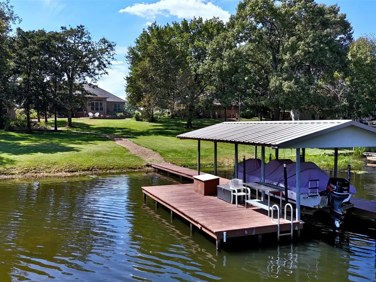 Stunning 4 Bedroom, 2.5 Bath Home on Lake Athens. The home is set just off the main body of Lake Athens, providing an excellent spot for water recreation on the big water. This homes location is in a protected cove making it equally ideal for stand-up paddle boarding, kayaking or a peaceful. morning by the water. The backyard is an oasis, offering an oversized firepit and seating. You will also find a beautiful outdoor stone bar for entertaining and a 2nd flagstone patio closer to the water with access to electric. The covered back porch is so peaceful for enjoying your morning coffee and also offers door access to the primary bedroom, den and kitchen. Inside the home you will find a split bedroom floor plan, as well as an open concept with 2 kitchen bars, convenient for serving, entertaining or enjoying a meal. This home is designed for entertaining, relaxing and enjoying life on the lake, perfect for full time living or a weekend lake getaway. Water depth at the Boat House is 8.5 feet.