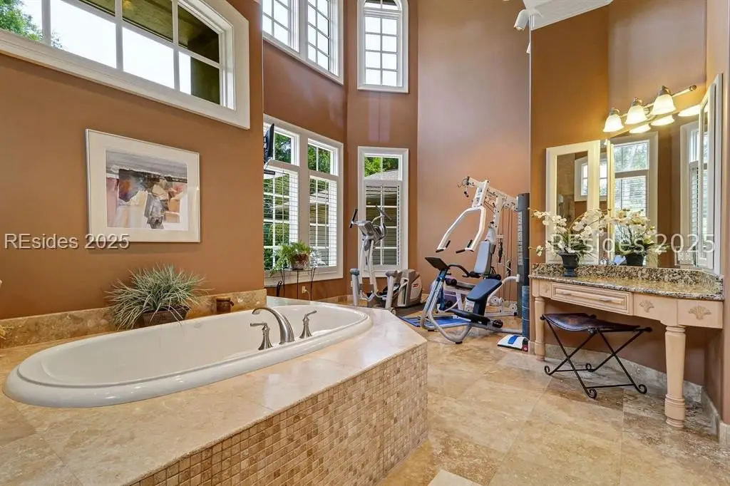 The best deep-water value on Hilton Head Island! Homes with private docks are in limited supply, but the character and charm of this residence place it in a category of its own. Enjoy classic elegance, 24/7 deep-water access, and pure waterfront luxury at 47 River Club Drive, located in the private, gated enclave of The River Club-one of Hilton Head Island's most exclusive deep-water communities. This exceptional home features four spacious ensuite bedrooms, including a first-floor primary suite with an exercise area and large walk-in closets. Additional highlights include two half baths, a gourmet kitchen, dual offices, a bonus room, and a dedicated media room. The oversized three-car garage provides generous storage. Outdoor living shines with a covered lanai, stone fireplace, and stunning saltwater pool and spa-all overlooking panoramic Broad Creek views. The property includes majestic oaks, a new 150-foot seawall, and a private deep-water dock for boating and water activities. Enjoy the best of Lowcountry living-and even summer fireworks-from your own backyard. Optional membership to the Jack Nicklaus Golf Club at Indigo Run enhances the lifestyle. With privacy, security, and breathtaking views, The River Club remains one of Hilton Head's most desirable deep-water communities.