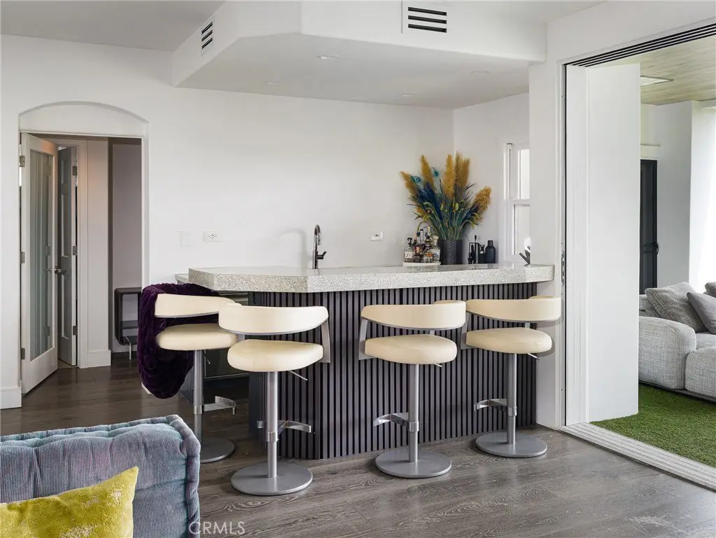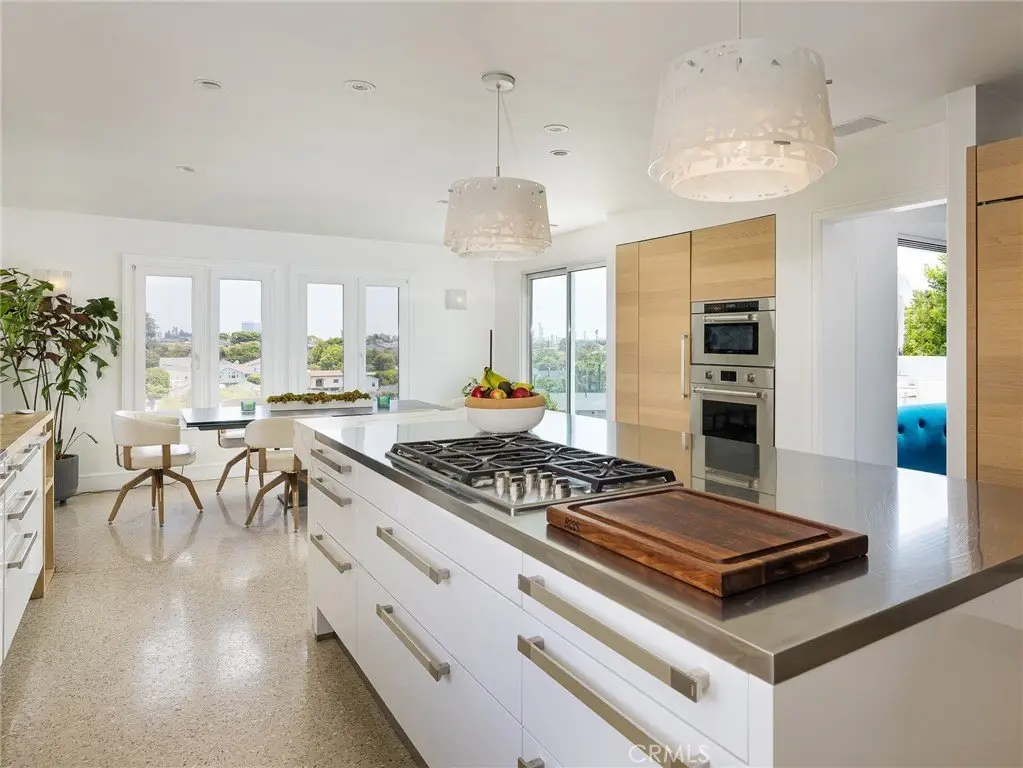Perched on one of El Segundo’s most elevated and sought-after streets, this fully updated Mediterranean luxury estate sits at the end of a quiet cul-de-sac, offering unobstructed, breathtaking views of the city skyline. With over 4,500 square feet of refined living space, this home was thoughtfully designed for both elegant living and effortless entertaining. Upon entry, you're greeted by a seamless blend of indoor and outdoor living. Both levels feature 16-foot stacking glass multi-slide doors, creating a smooth connection between the sunlit interiors and expansive outdoor terraces. The result is a true entertainer’s dream, where panoramic views and sophisticated finishes set the tone. The first floor offers a media and entertainment space unlike any other, complete with a 97” Samsung TV, embedded Bowers & Wilkins speakers, a handcrafted terrazzo glass bar, sleek fireplace, wet bar, and custom feature wall. Slide open the aforementioned doors to reveal a beautifully remodeled backyard perfect for entertaining. This level also includes a large primary suite with a fully updated bath, a second spa-like bathroom with sauna situated between two spacious bedrooms, and a conveniently located laundry room. Upstairs, the gourmet kitchen—crafted by Euroconcepts of Beverly Hills—features Italian Arclinea custom cabinetry, Sub-Zero refrigeration, Wolf appliances, an espresso bar, floating hood, and sweeping neighborhood and park views. The open-concept layout flows into the stylish living room, anchored by a modern fireplace and opening to an expansive deck—ideal for indoor-outdoor gatherings. The second-floor primary suite is a sanctuary of its own, boasting high-end finishes, a huge walk-in closet, a dedicated laundry area, and an updated bathroom with separate tub and shower. Two additional office spaces and another upgraded full bath complete the upper level. Additional highlights include: central air conditioning throughout, a private elevator, an oversized driveway fitting multiple cars, and two separate garages offering a total of three garage spaces A rare offering with commanding views, cutting-edge design, and exceptional functionality—this estate is a must-see for buyers seeking luxury living in El Segundo.