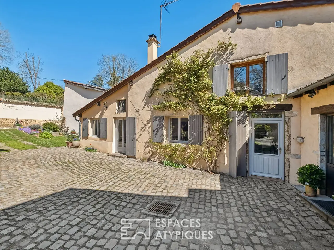 Located just a few minutes' walk from the center of Ecully, this hamlet house combines charm, modern comfort, and serenity. Secluded from view, it spans approximately 160 sqm and opens onto a 1,500 sqm landscaped garden. Upon entering, the eye is drawn to the light-filled kitchen. Its open-air ceiling accentuates the space and naturally extends the view toward the terrace and garden, promising convivial moments. Adjoining it, a spacious dining room precedes a cozy living room, enhanced by a fireplace, terracotta tiles, and beautiful windows overlooking the exterior. A multipurpose space completes this level, offering the possibility of an office, a reading room, or a fourth bedroom. Also on the ground floor, a master suite adds an extra touch of comfort. Built from a modern extension of over 23 sqm, the bedroom offers a dressing room and a practical and functional bathroom. Upstairs, two bedrooms enjoy beautiful light and share a bathroom. The peaceful, tree-lined exteriors are visible from each room and invite contemplation. A separate space of approximately 15 sqm can be used as a workshop, office, or studio. Just a short walk from the center, this light-filled house invites both tranquility and shared moments.A green setting where time seems to stand still, combining charm and convenience. ENERGY CLASS: D / CLIMATE CLASS: B Estimated average annual energy costs for standard use, based on 2021 energy prices: EUR2,050 and EUR2,830. Contact: Amandine - 06 50 86 46 08 REF. 12473 Additional information * 5 rooms * 3 bedrooms * 1 bathroom * 1 bathroom * Outdoor space : 1800 SQM * Property tax : 840 € Energy Performance Certificate Primary energy consumption d : 195 kWh/m2.year High performance housing
