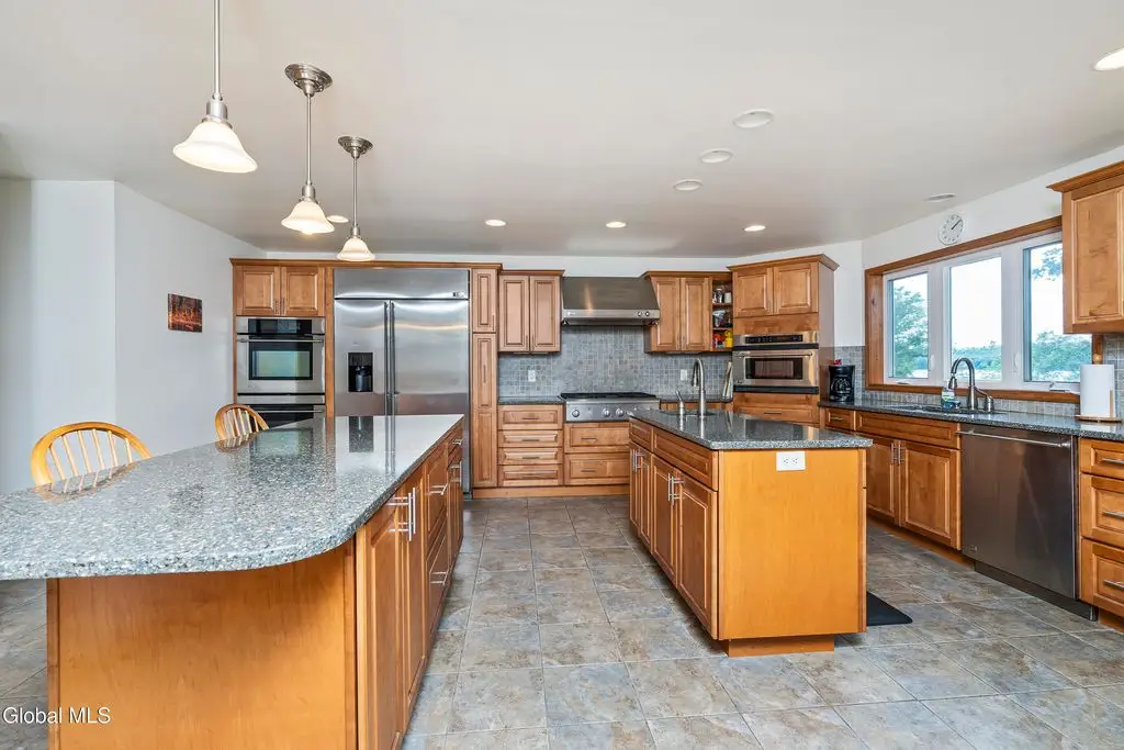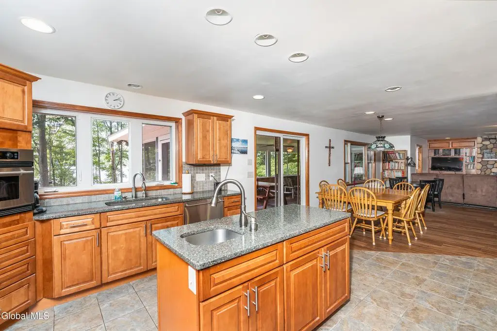 Wow! Lake homes like this are a rare find. Here's your opportunity to own a 10 bed, 4.5 bath property, with 250' of water frontage on the Great Sacandaga! Built in 2010, this home truly has it all. With incredible lake views throughout the house & over 4,000 combined sqft, the home features an open kitchen & living space, granite counters, stainless industrial appliances, large 1st floor primary suite, ADK knotty pine bar/game area in basement, sunroom, screened-in & open porch, both overlooking the water & much more! With a 3-bay detached garage & an extra 4th bay, there is plenty of room to store your boats and other toys. There is a bonus 2 room/1 bath space above the garage, along with a bunk house. With your own lake access right across the street, this is lake living at its finest!