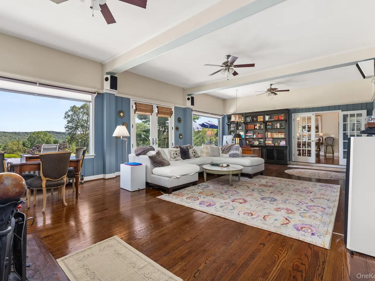 Historic Ridgefield Estate - Where Legacy Meets Modern Luxury. Originally built in 1911 as the Ridgefield School for Boys, this unique estate once anchored a vast 115-acre campus and featured more than 100 rooms, including classrooms, dormitories, and offices. When the school closed, the property was purchased by Francis D. Martin, who gave it a bold architectural overhaul by removing the top three floors, reshaping its silhouette but preserving its timeless character. Today, the lower level still holds remarkable original features: a working walk-in refrigerator and compressor, a functioning coal burner, a vintage dumbwaiter, and the legendary Dungeon Room, all offering a rare, tangible connection to the property's rich and storied past. The home is nestled on an expansive 4.98-acre parcel of picturesque land, located in coveted Ridgefield, Connecticut, this exquisite residence presents an unparalleled blend of grandeur and comfort. Enjoy a one-floor residence that has been preserved and reimagined into a beautifully renovated ranch-style property offering 4,808 square feet of living space. The home offers breathtaking panoramic views in the town of Ridgefield. The landscape is adorned with a lush tapestry of vibrant, clustered trees. As the seasons turn, this ever-changing natural spectacle provides a captivating backdrop year-round, perfectly complementing families who love to entertain. The modern 2019 kitchen renovation boasts 10-foot-tall ceilings, all Thermador appliances including a convection and steam oven, six-burner gas cooktop, and a 3-tier dishwasher. The 10-foot island accommodates a prep sink, a modern drawer microwave, and pull-out drawer fridge and freezer. The home offers spaces to accommodate large gatherings, for those who love to entertain. The kitchen provides abundant storage space while seamlessly blending historic charm with modern comfort. Boasting seven ample bedrooms, this home is designed to accommodate both intimate family living and elegant entertaining with ease. The five full bathrooms and two thoughtfully appointed guest half baths offer both convenience and privacy for residents and guests alike. An inviting, full house cottage adjoins the main residence, offering an ideal private sanctuary for an au pair, in-laws, or extended family. Thoughtfully designed for both comfort and convenience, this charming retreat contains a private entrance, washer/dryer, modern renovated kitchen, two full baths, a dining and living room, and a private deck. The attached cottage ensures independence while maintaining seamless access to the main home, perfectly balancing privacy with togetherness. The home is equipped with three fireplaces, including two wood-burning stoves, solar panels, covered garage spaces to accommodate 10 vehicles and over 2,000 square feet of outdoor deck and living space to enjoy the panoramic views. Mechanical updates feature a full house generator, HVAC system, a steam boiler, an electric hot water heater, and a new Trane air conditioning system. Surrounded by serene natural beauty, this property provides a tranquil retreat while remaining within reach of the vibrant community amenities that Ridgefield is renowned for. Experience the perfect harmony of refined living and rustic charm in this exceptional estate.